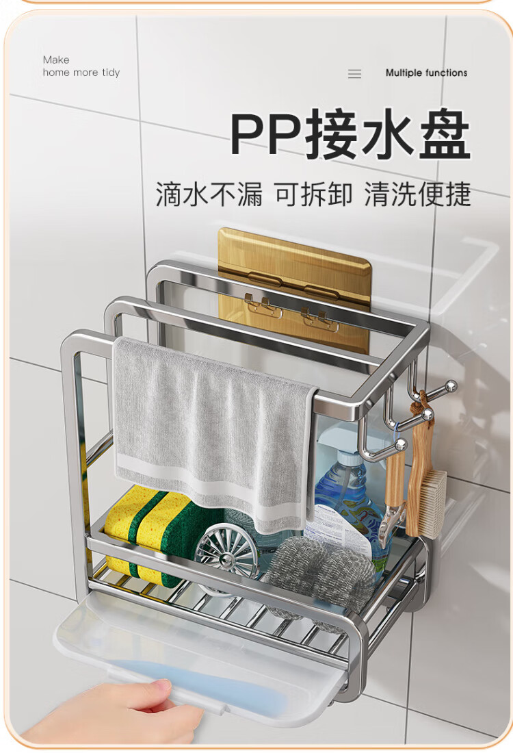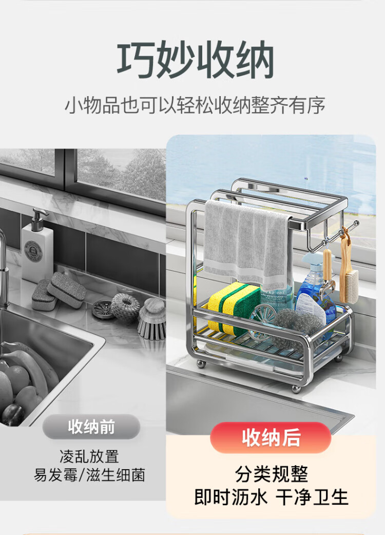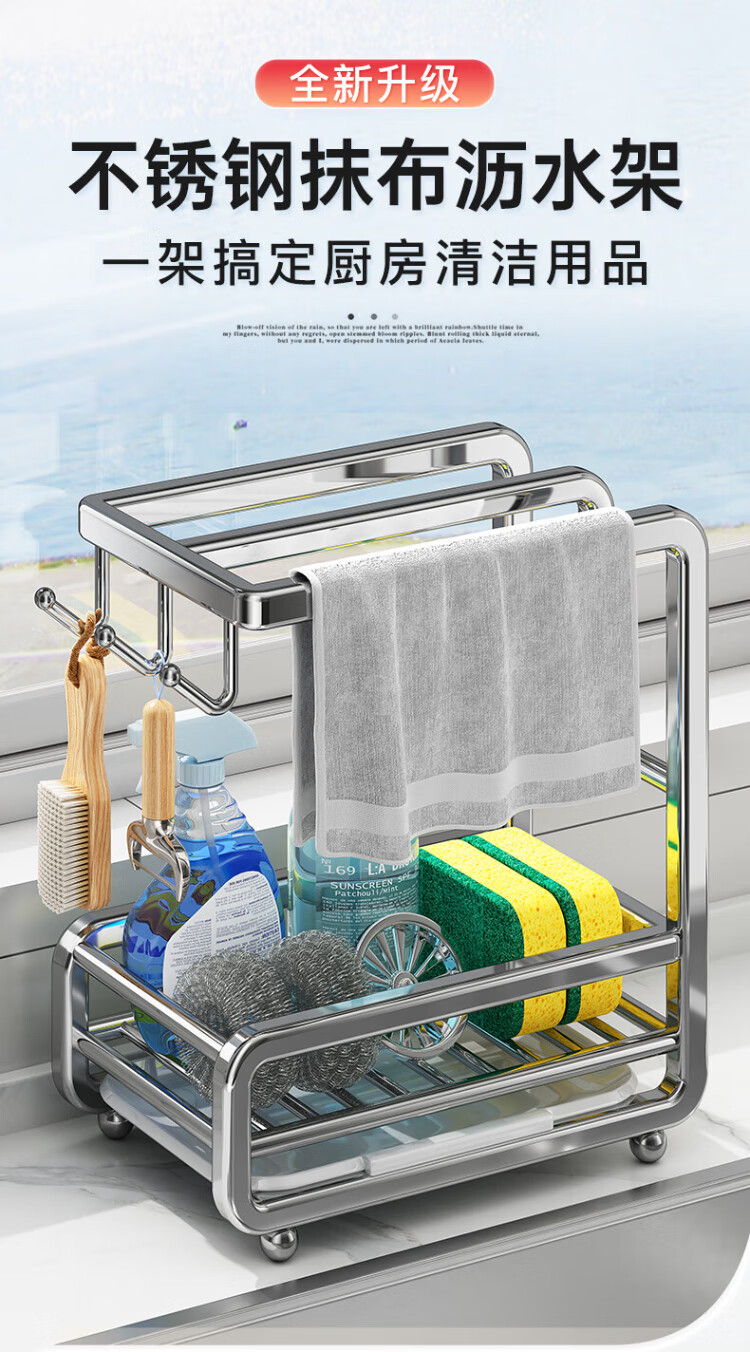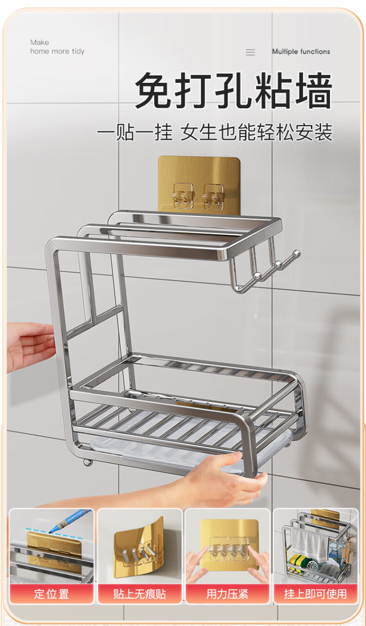 Shuaishi stainless steel kitchen wipe rack drain rack punch-free towel dishcloth sink sponge storage rack