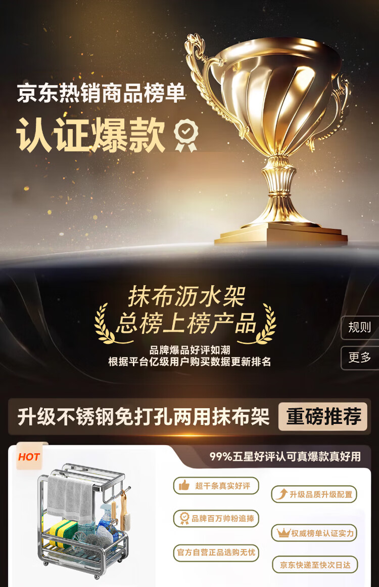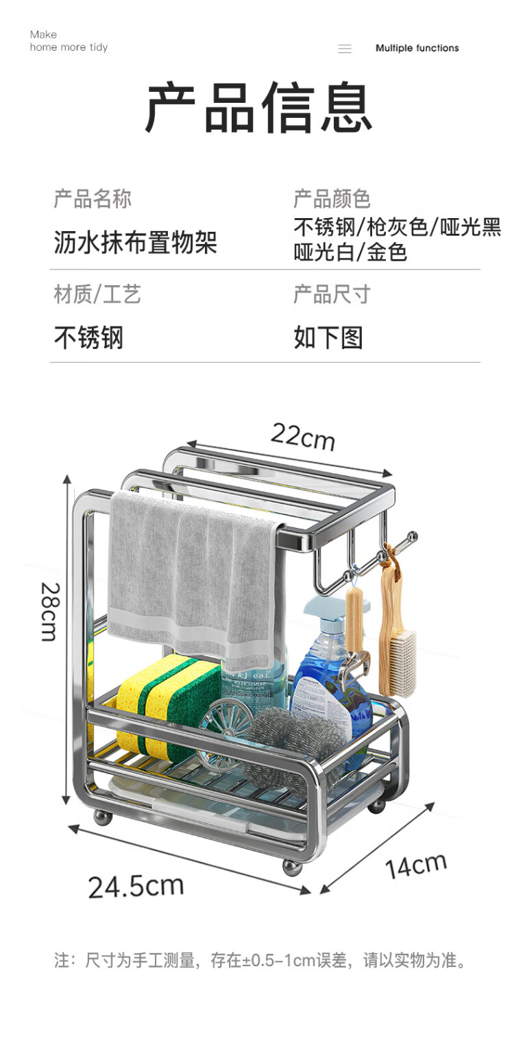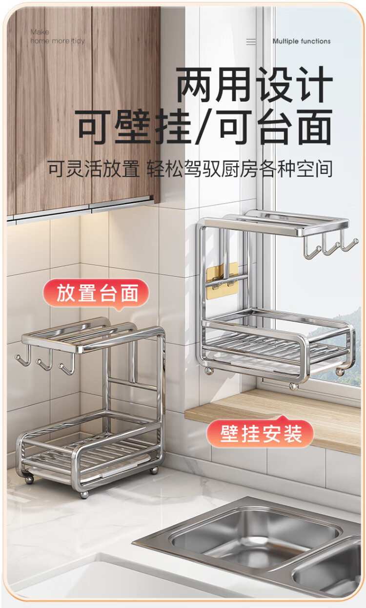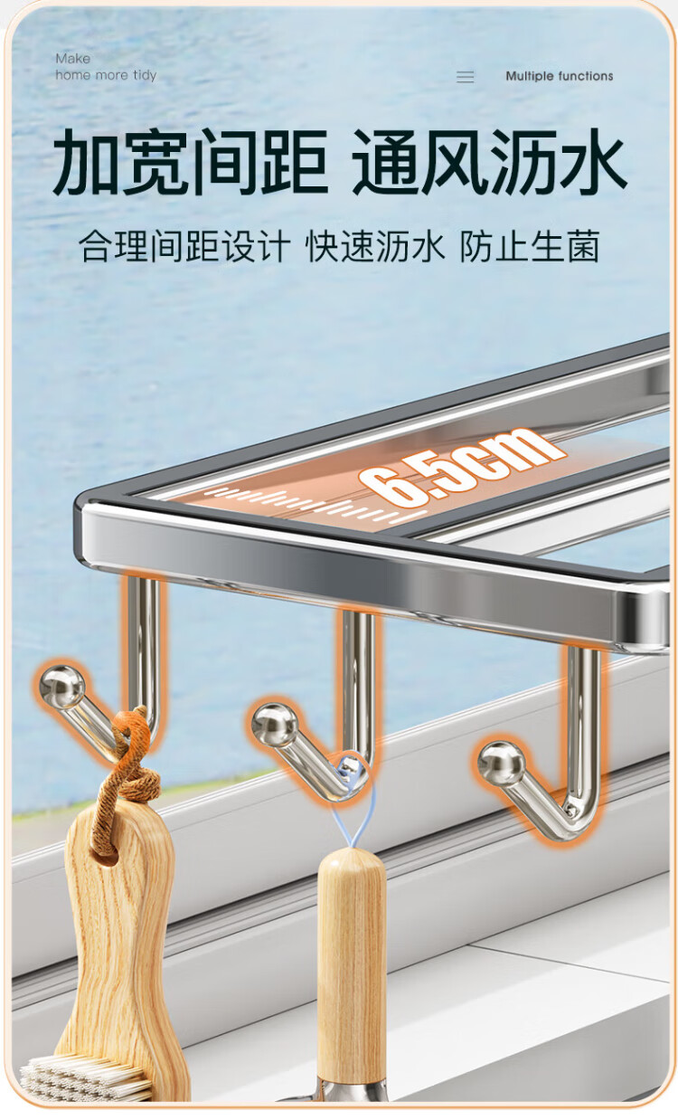 Shuaishi stainless steel kitchen wipe rack drain rack punch-free towel dishcloth sink sponge storage rack