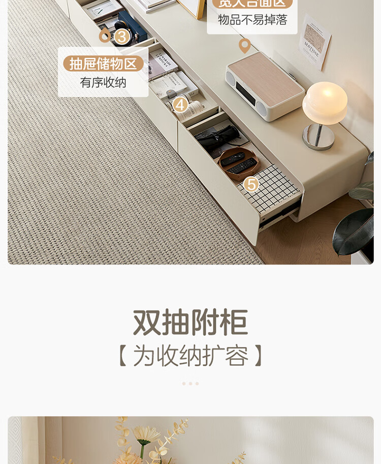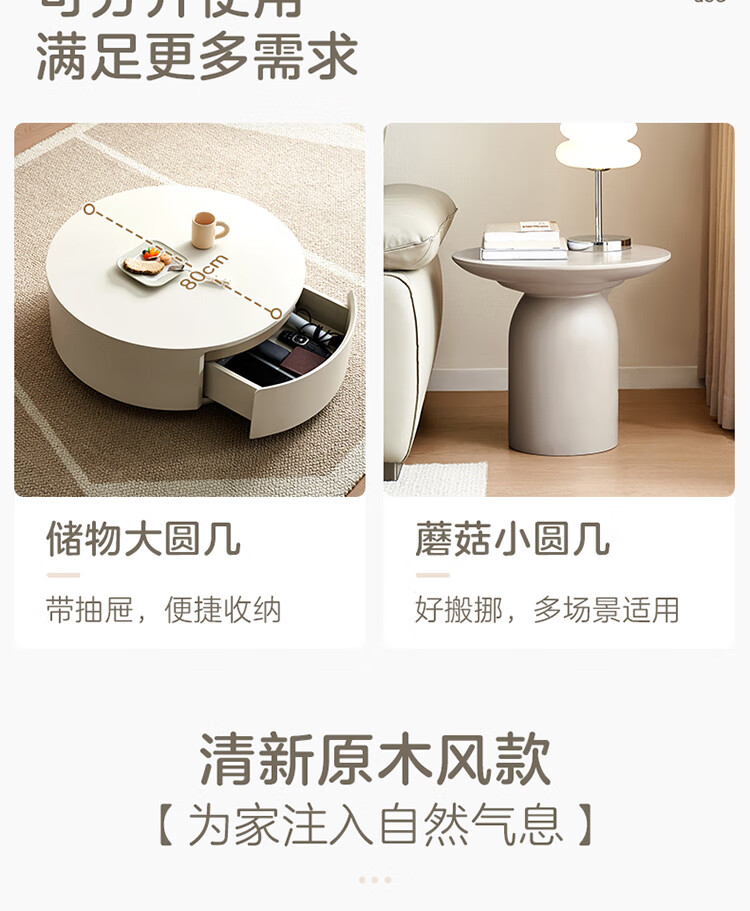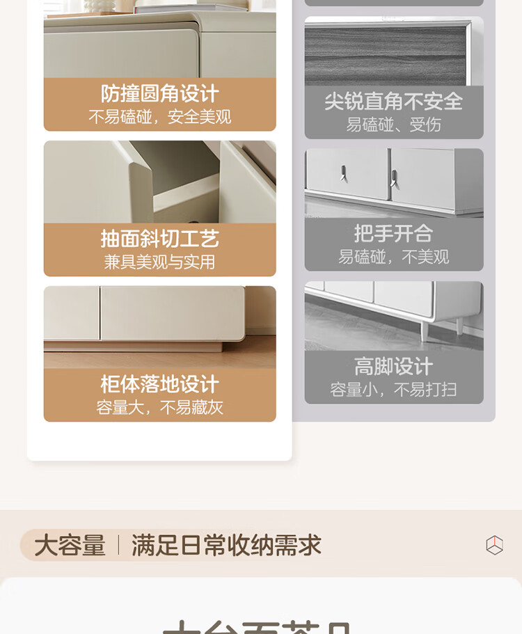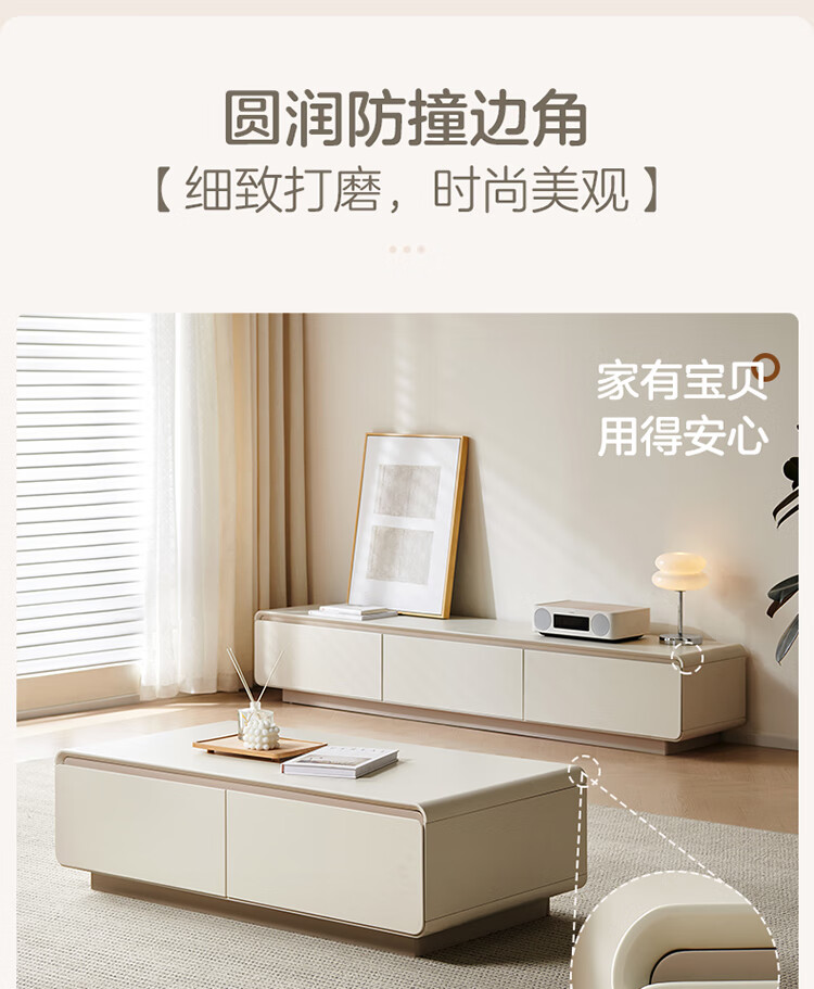 Quanyou Home Modern Simple Cream Style Coffee Table Living Room Small Household Storage Floor Cabinet