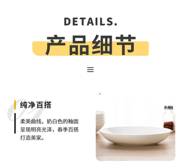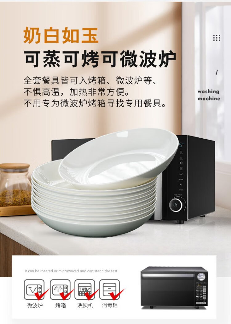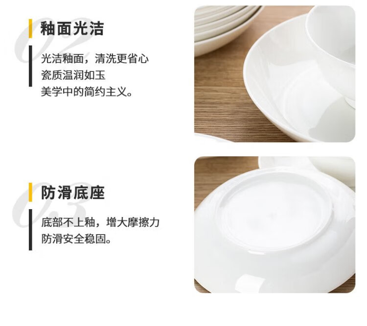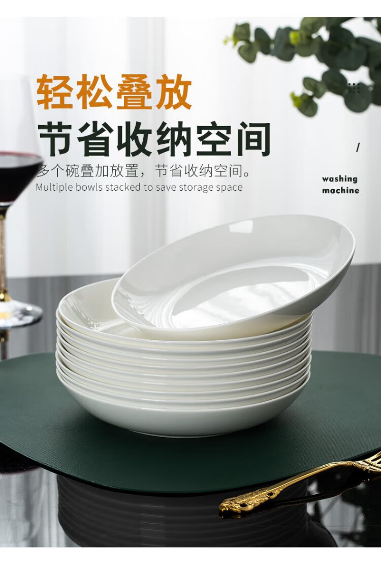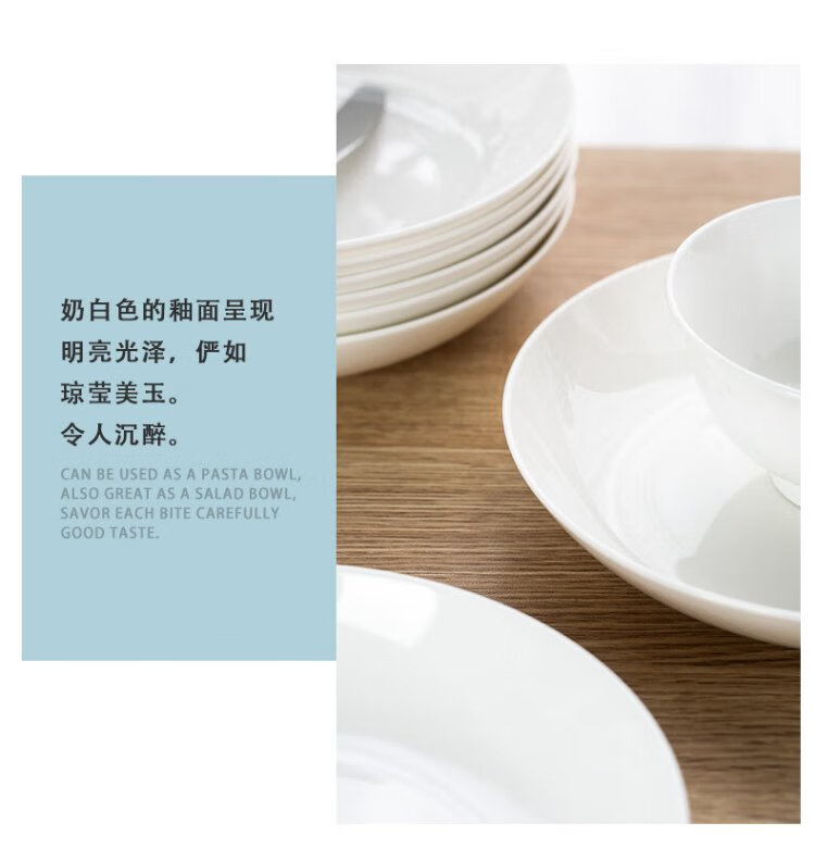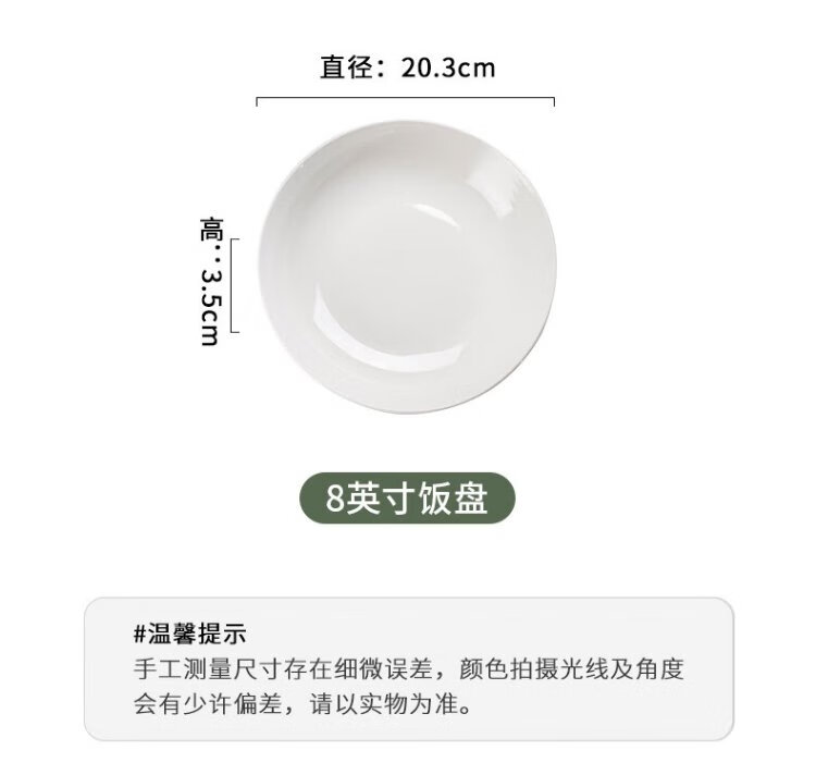 Tao Xianghui ceramic pure white plate underglaze color household deep plate 8-inch 4-pack rice plate dinner plate microwave white porcelain dish plate