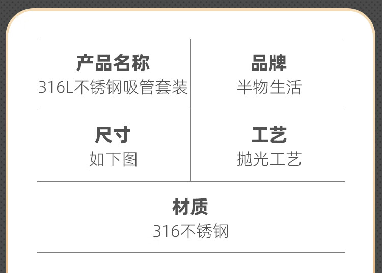 Half Life 316L stainless steel straw set metal extension tube food grade non-disposable coffee milk tea iron straw artifact