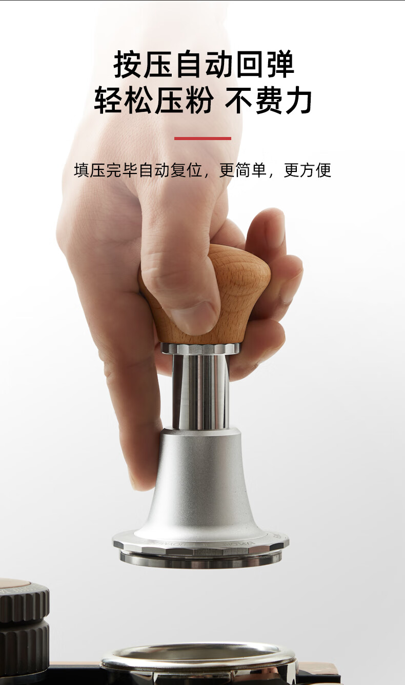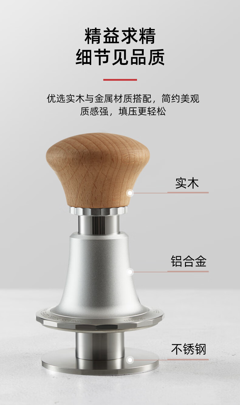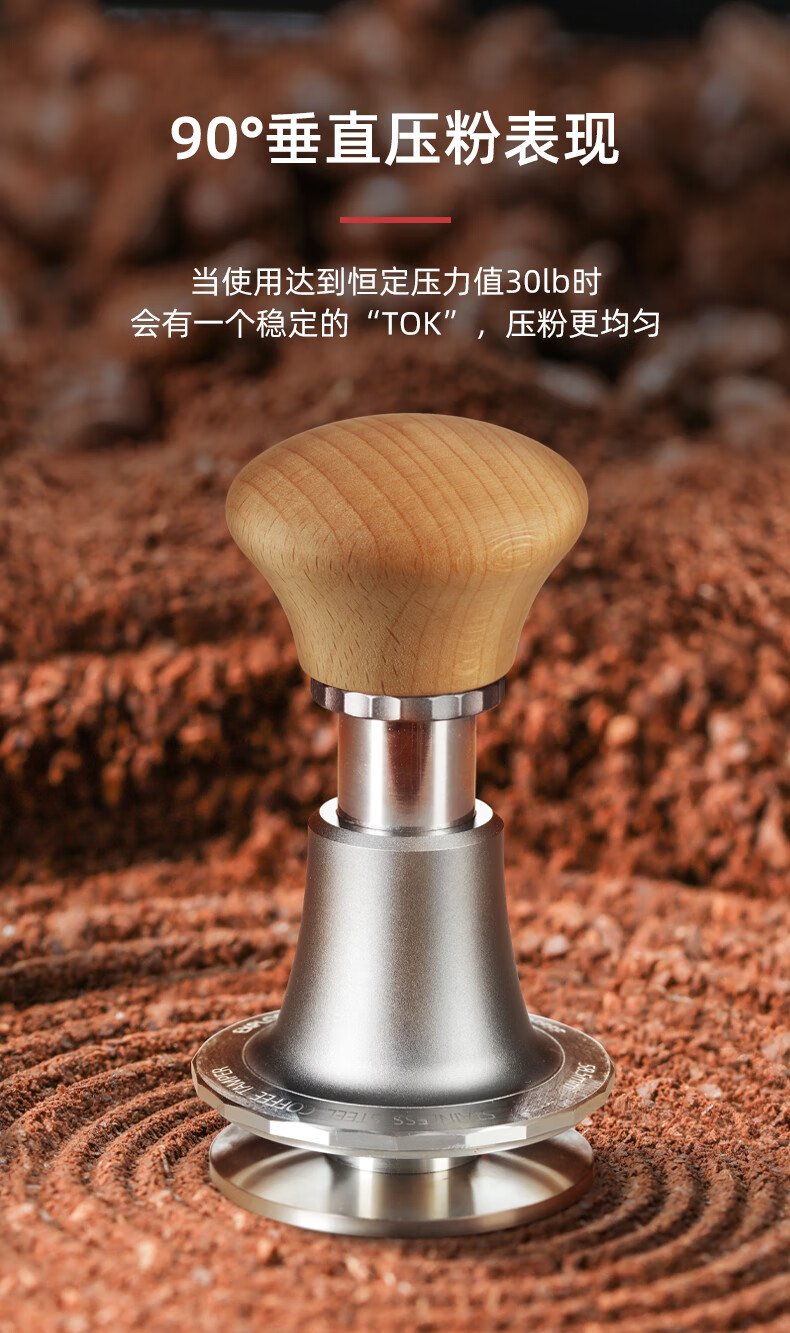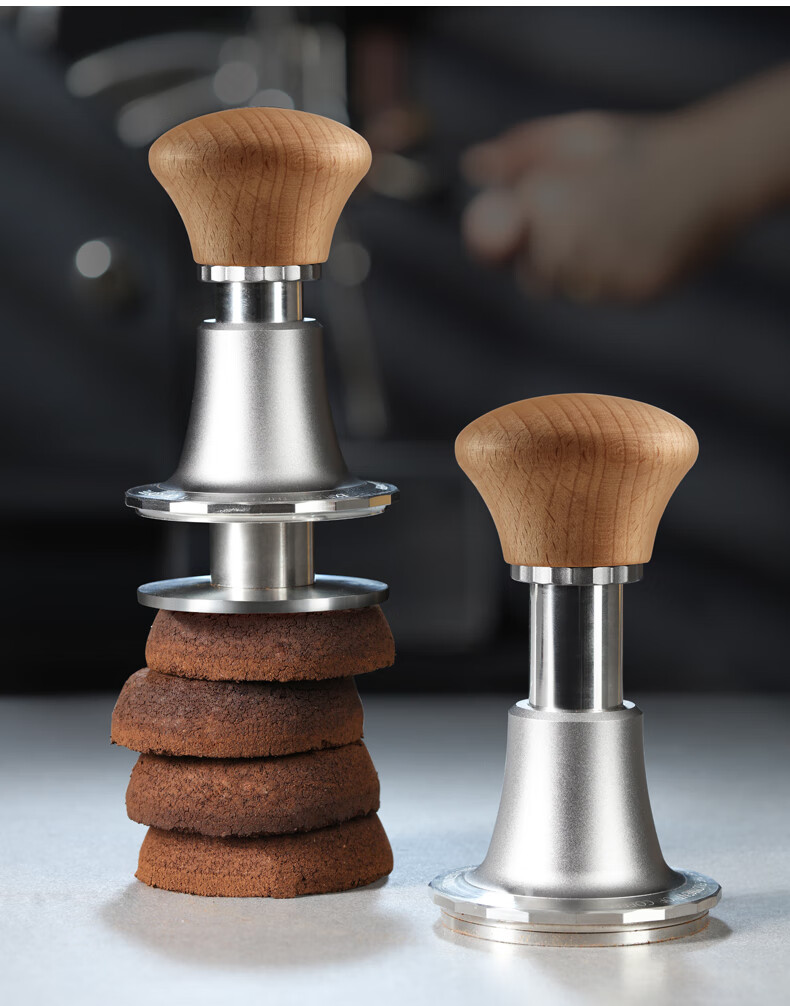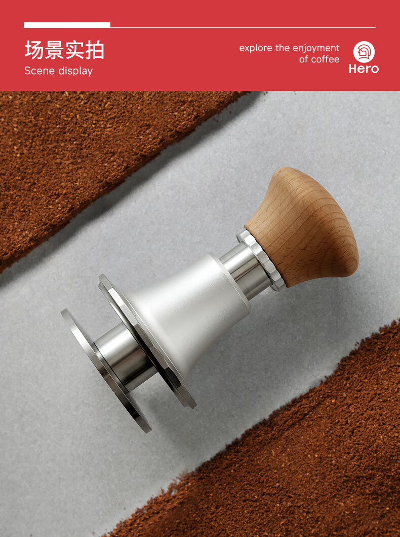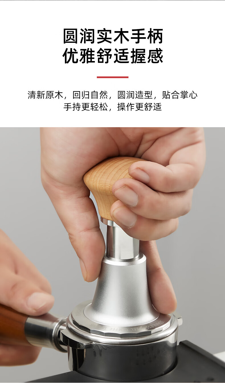 Hero Jianqi Constant Force Pressing Hammer Italian Coffee Cloth Powder Pressing Anti-pressure Offset Pressing Hammer 58mm Wood Color-Threaded Bottom
