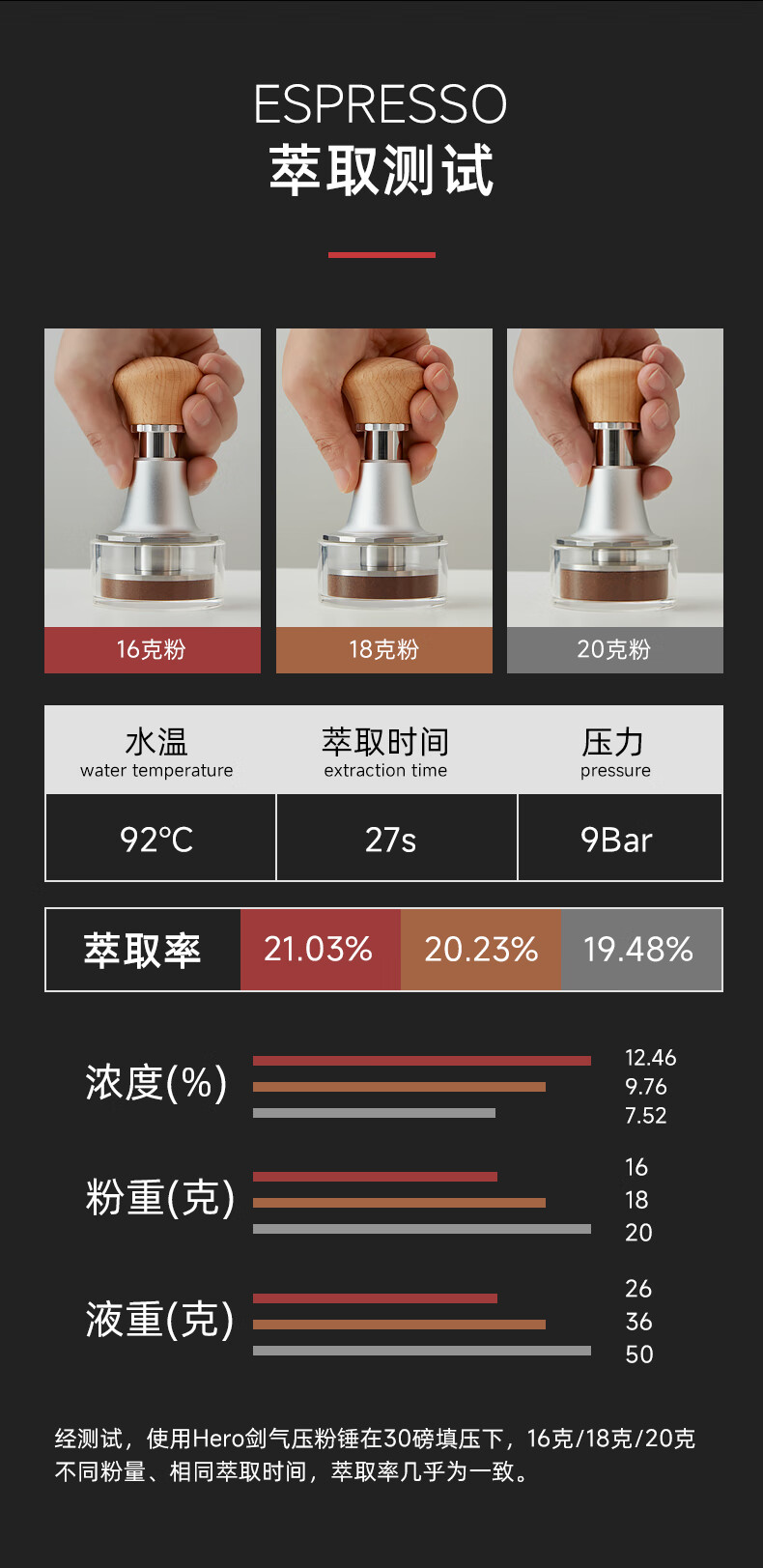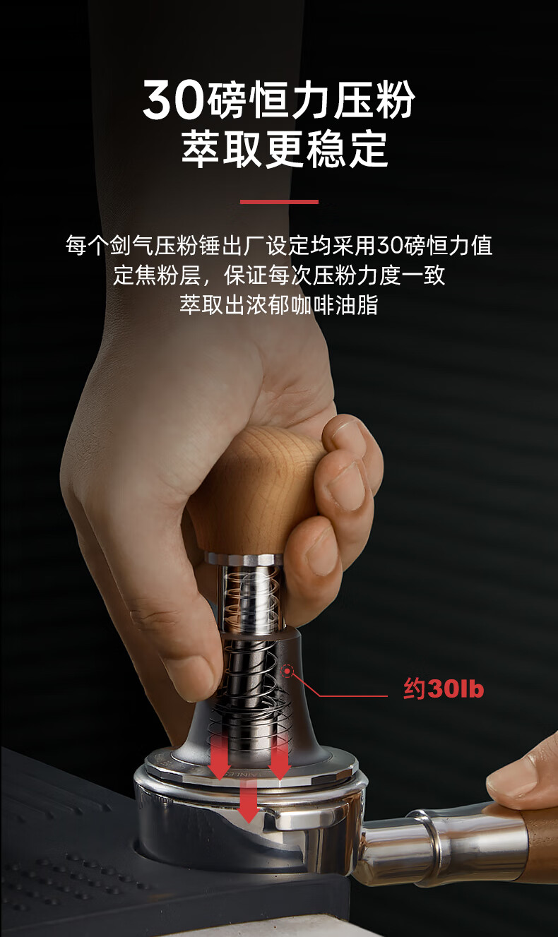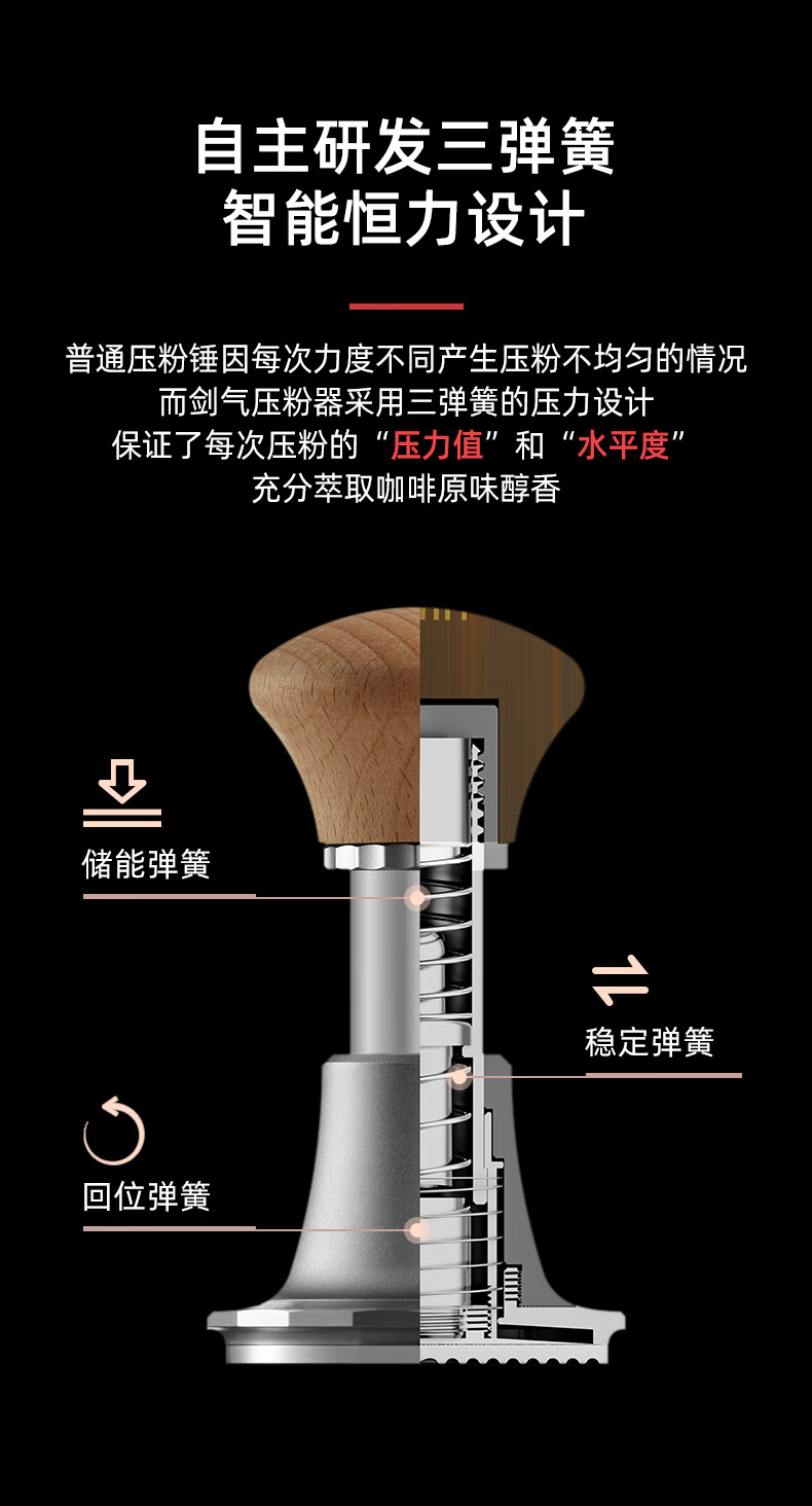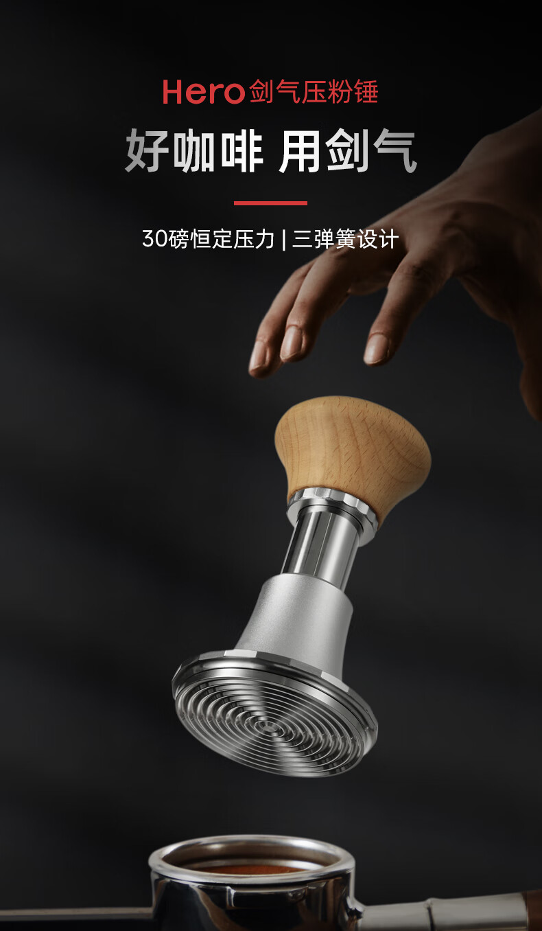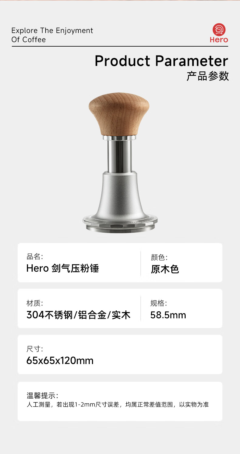 Hero Jianqi Constant Force Pressing Hammer Italian Coffee Cloth Powder Pressing Anti-pressure Offset Pressing Hammer 58mm Wood Color-Threaded Bottom