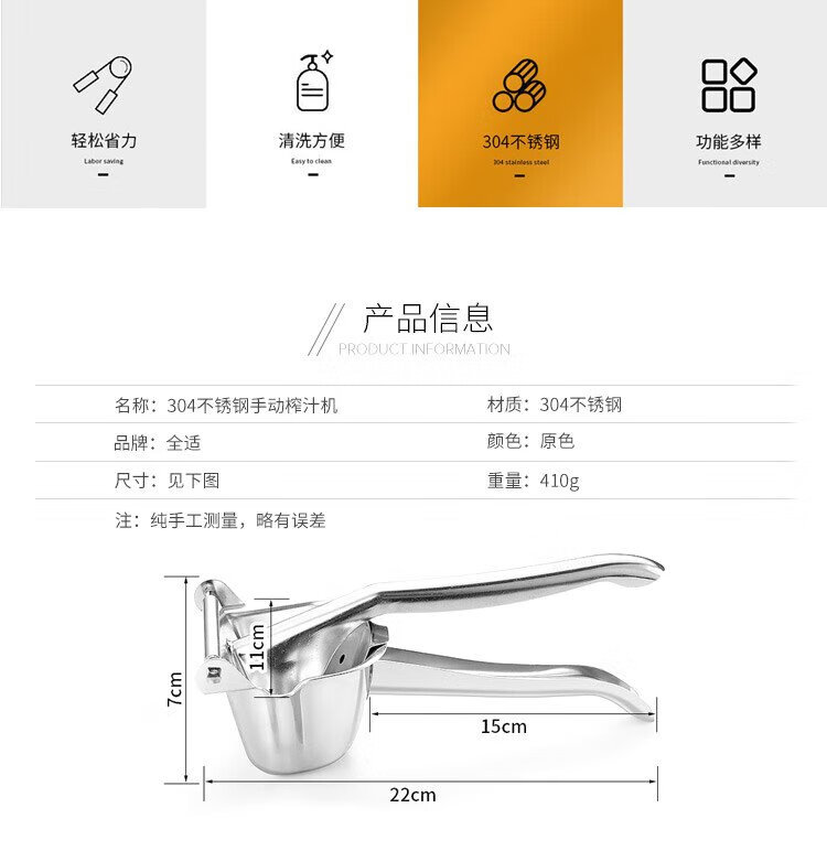 Quanshi 304 stainless steel manual juicer fruit juicer hand pressed lemon clip juicer mud press juicer artifact