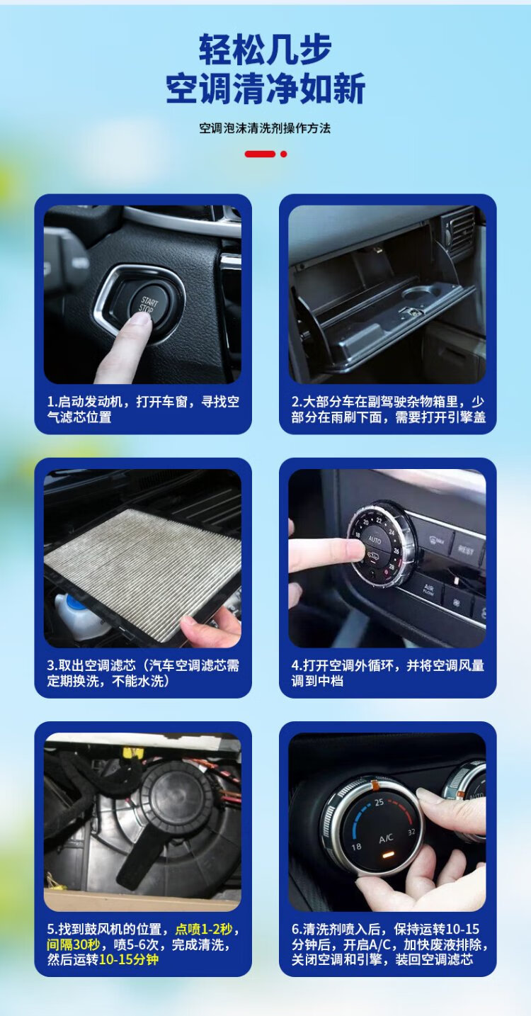 Pute car air conditioning cleaning agent deodorizing sterilization deodorizing interior foam free pipe cleaning agent air freshener