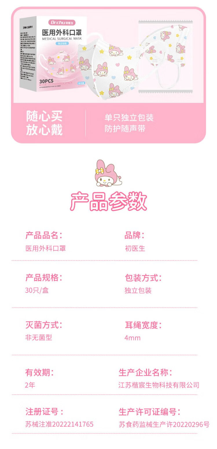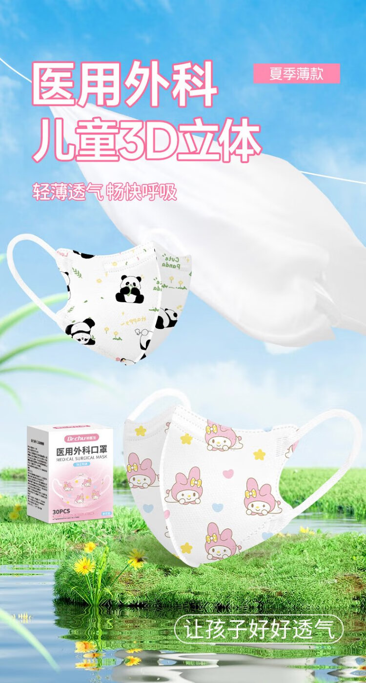 Doctor Chu's medical surgical mask is suitable for children's disposable 3D autumn and winter protective dust-proof independent packaging for older children.