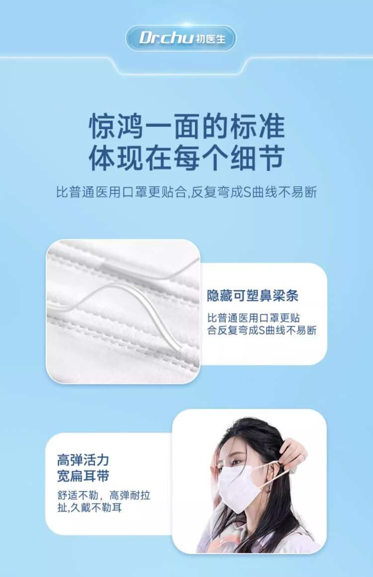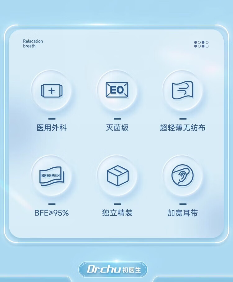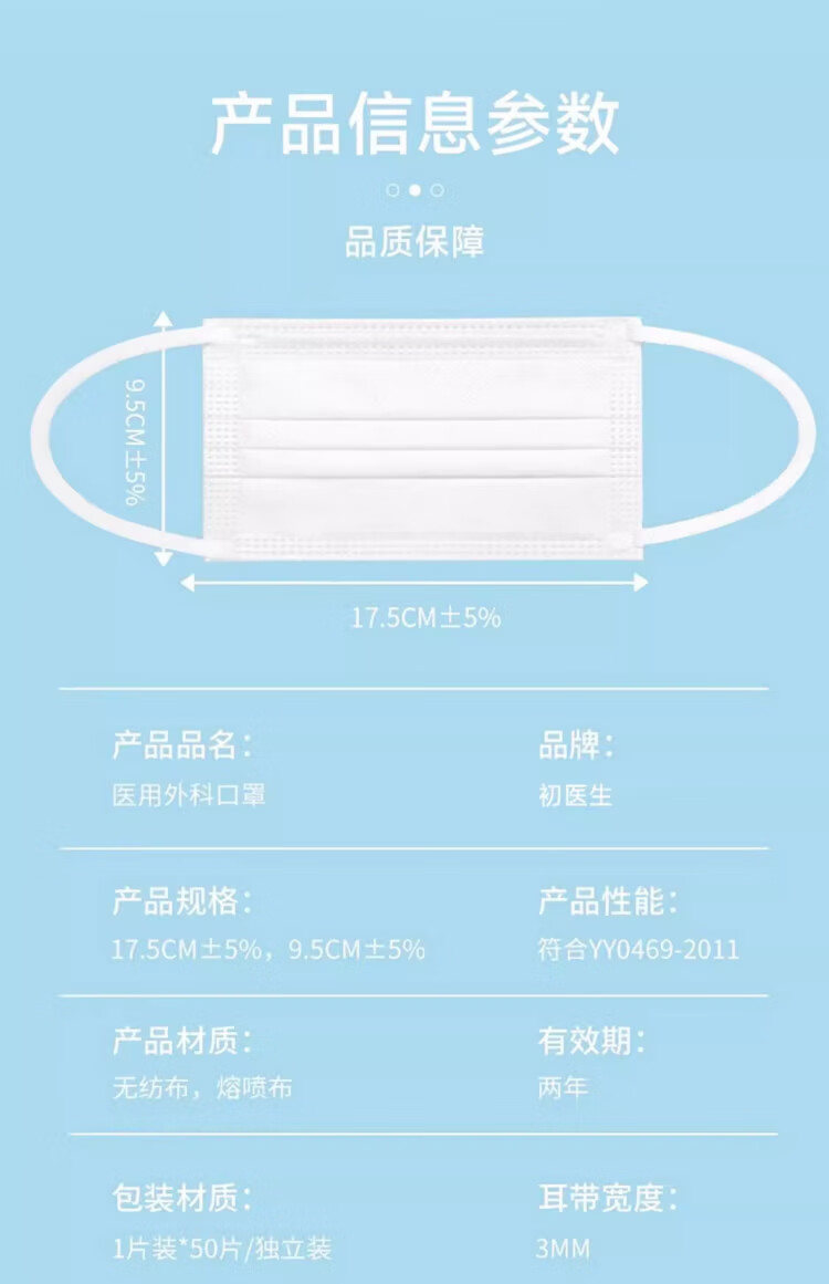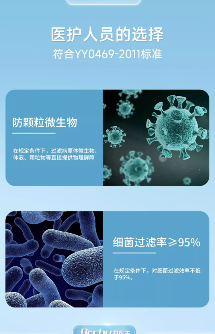 Chu Doctor Medical Surgical Mask Adult Disposable Sterilization Grade Mask Winter Anti-Allergy Protection Blue 50 Pack