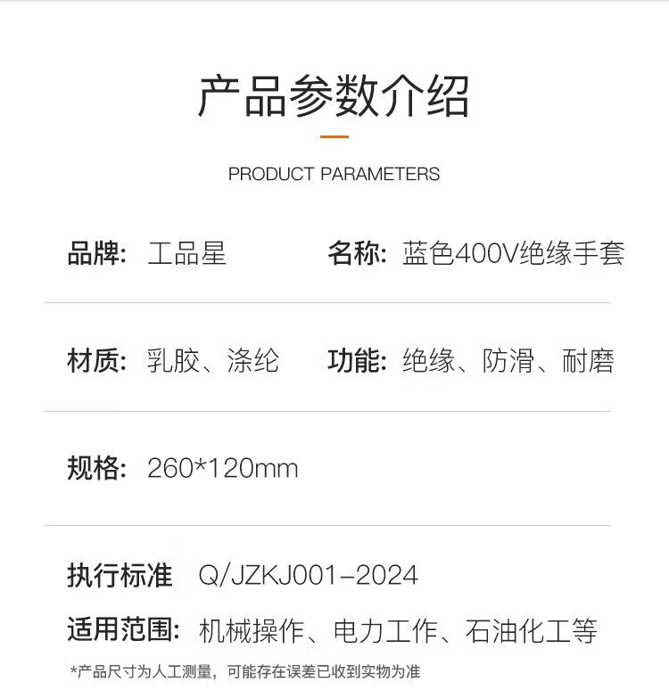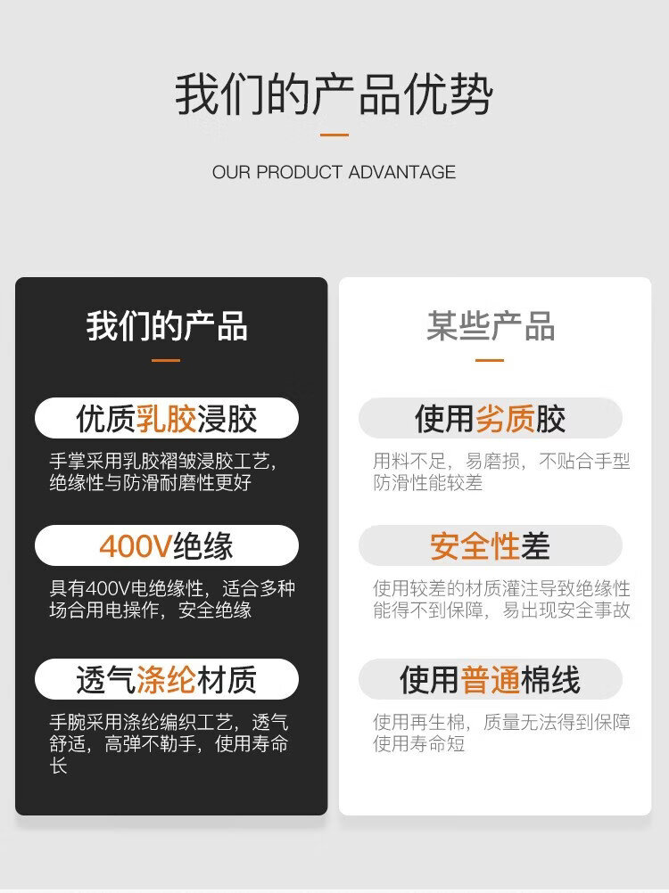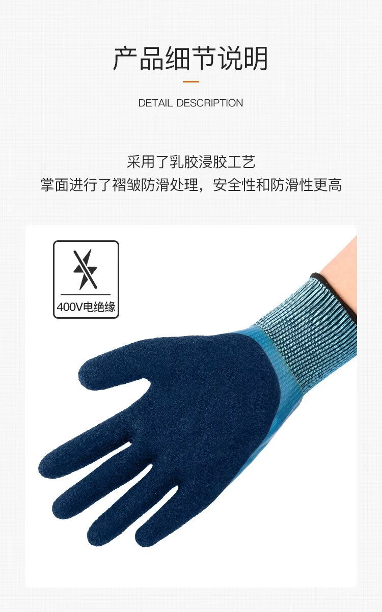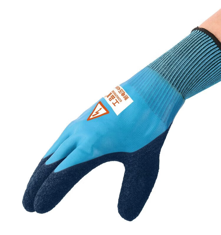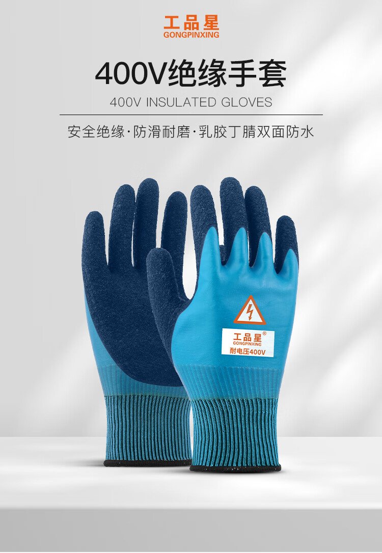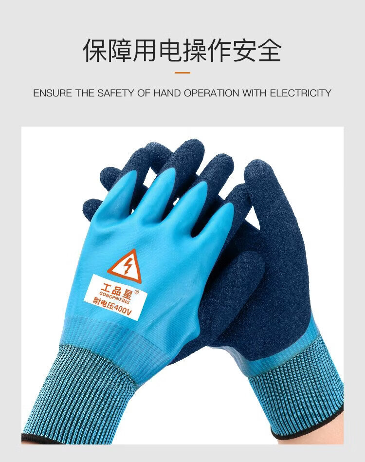 Gongpinxing 400V insulating gloves latex low voltage anti-electric shock, non-slip and wear-resistant electrician power distribution room protective gloves 1 pair blue