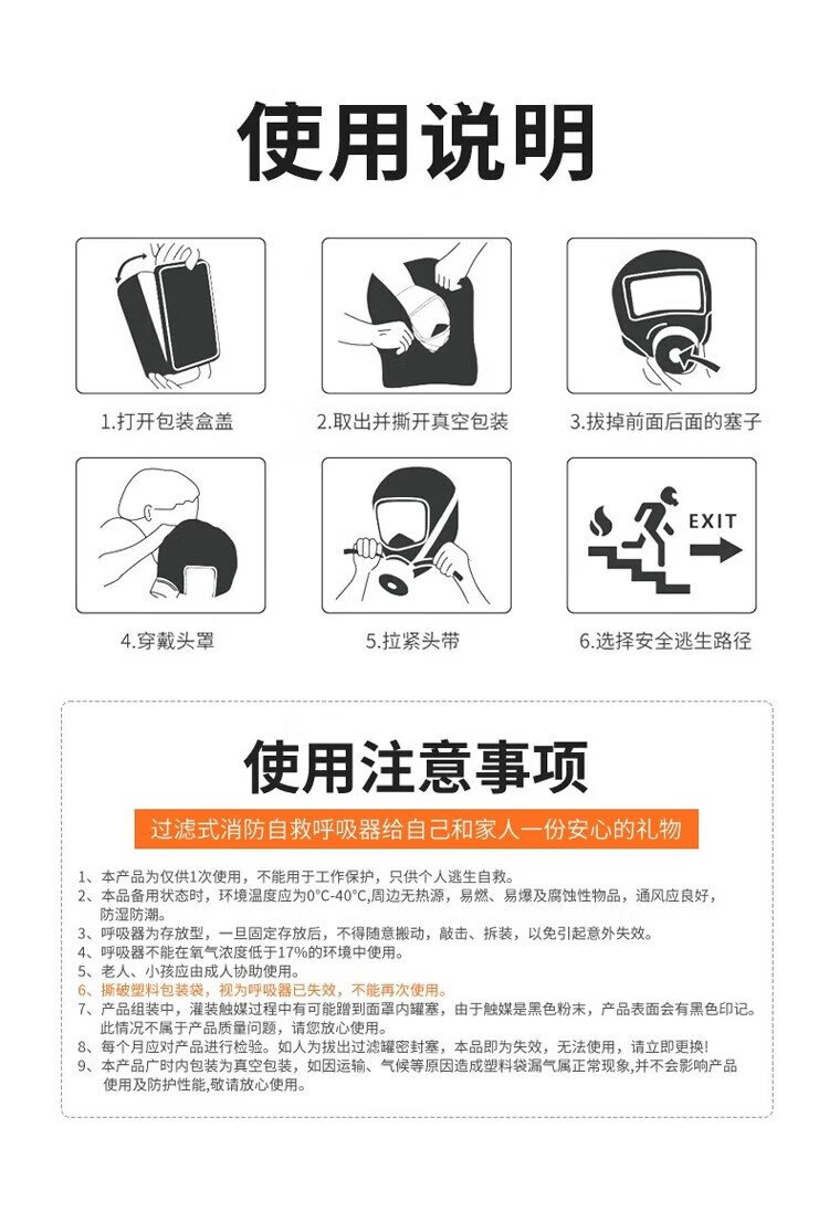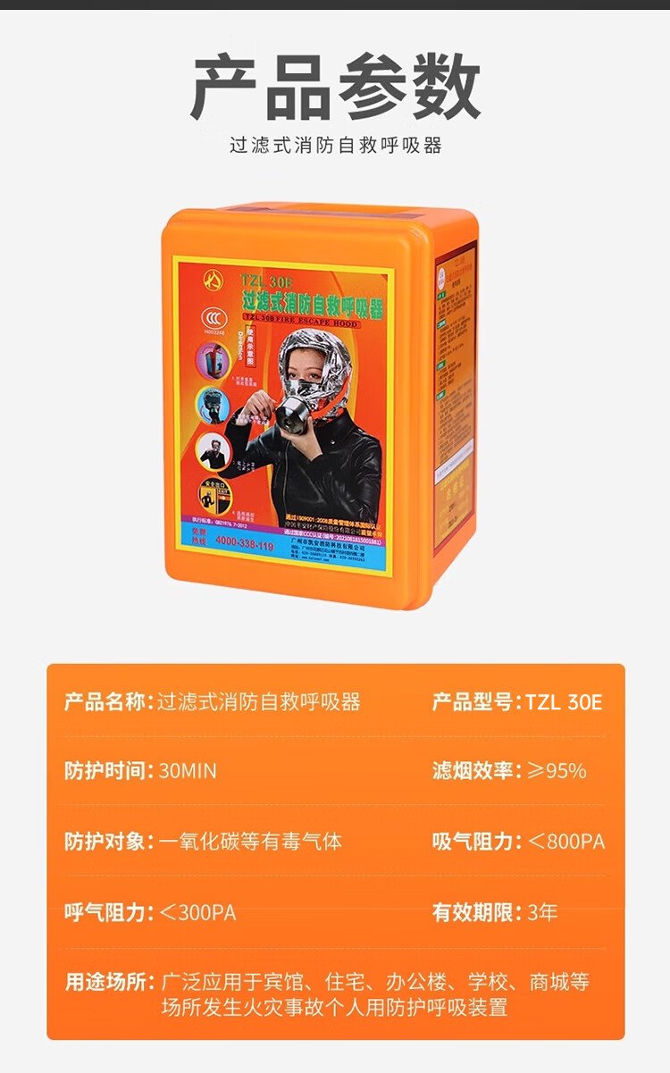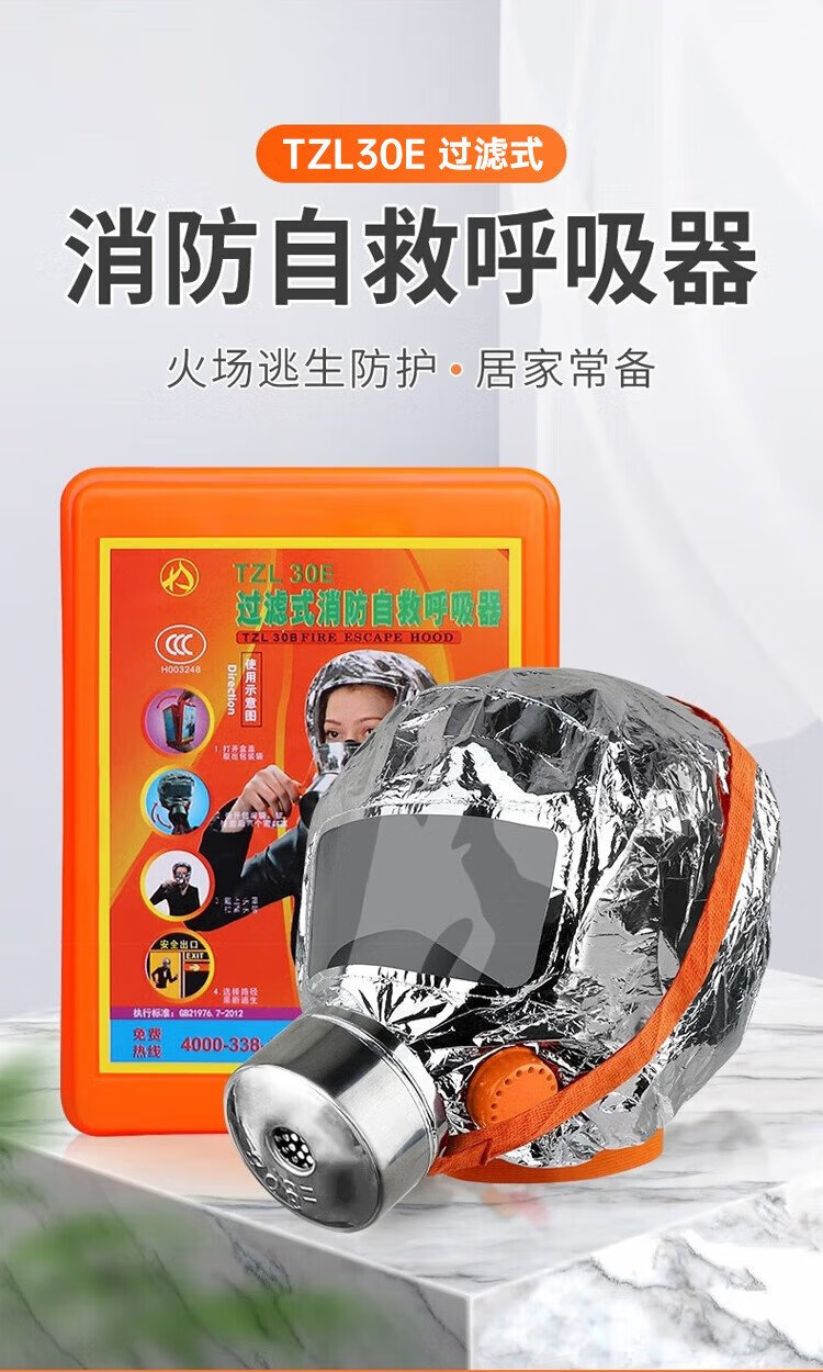Kai'anbao gas mask fire fire escape smoke mask family hotel room filter self-rescuing respirator TZL30E (affordable model)