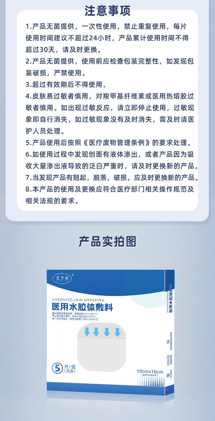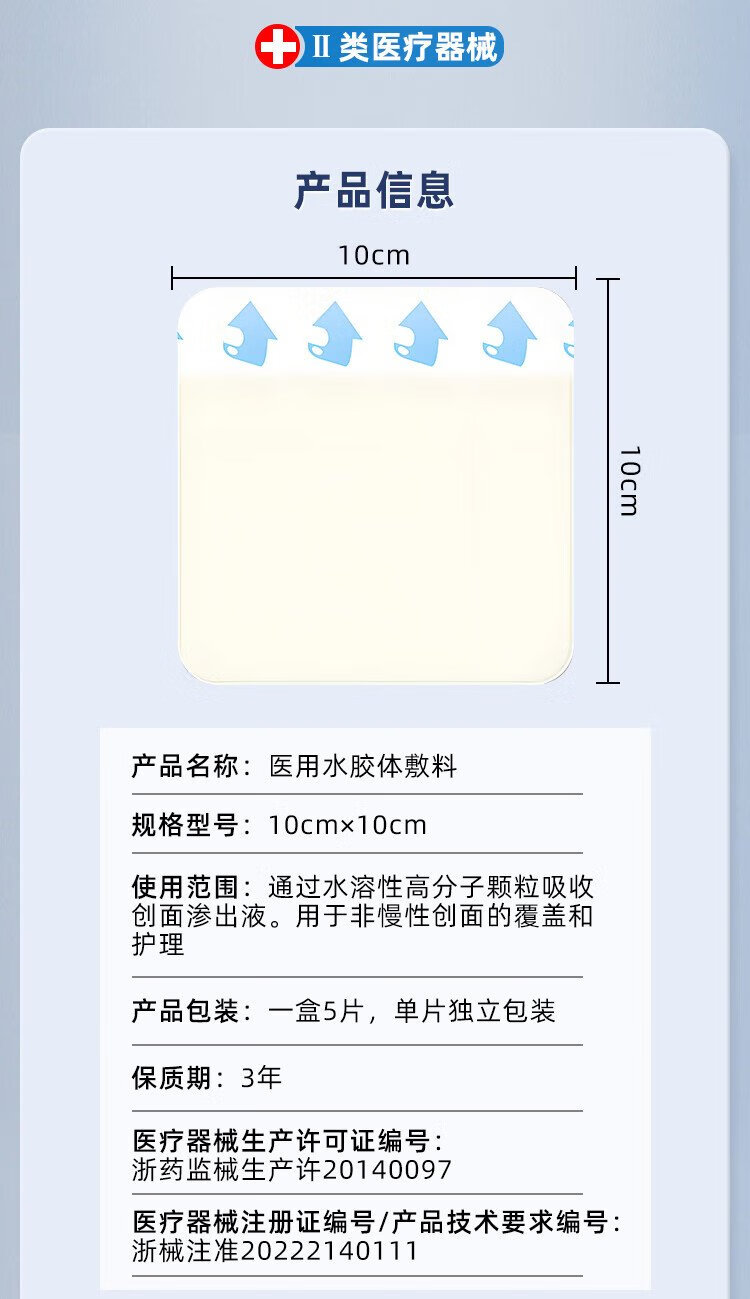 Aikaan Medical Hydrocolloid Dressing Patch Medical Acne Patch Wet Healing Dressing Artificial Skin Hydrogel 10cm*5 Tablets