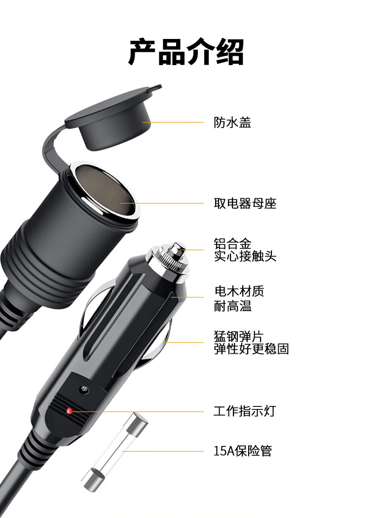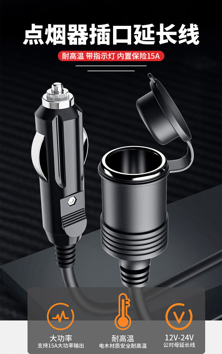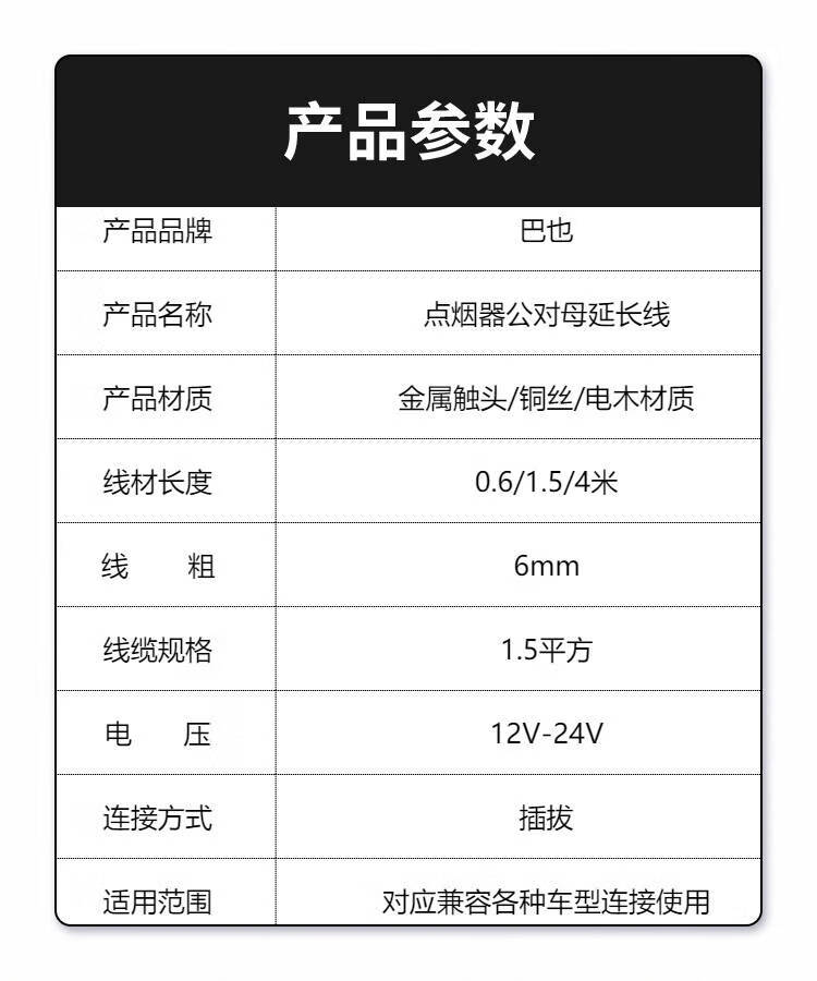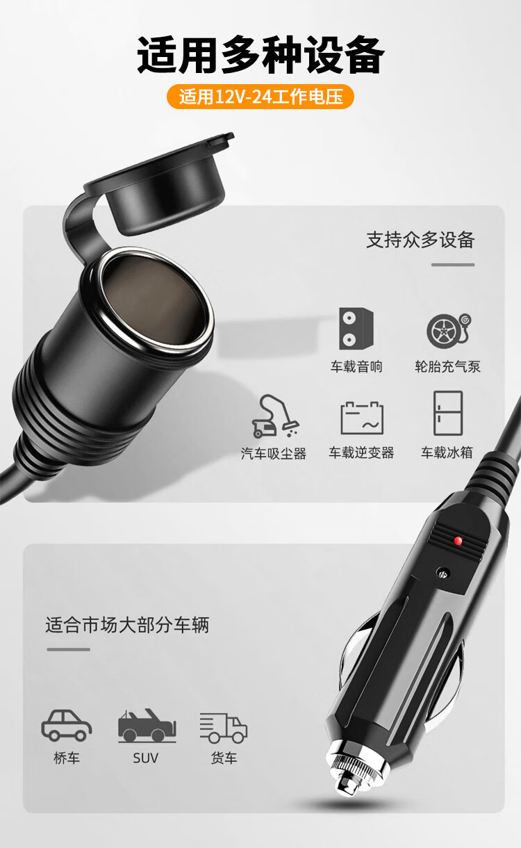 Baye car cigarette lighter socket male to female extension cable 12v24v universal extension cable 4 meters 1 piece BY-DYQM4F