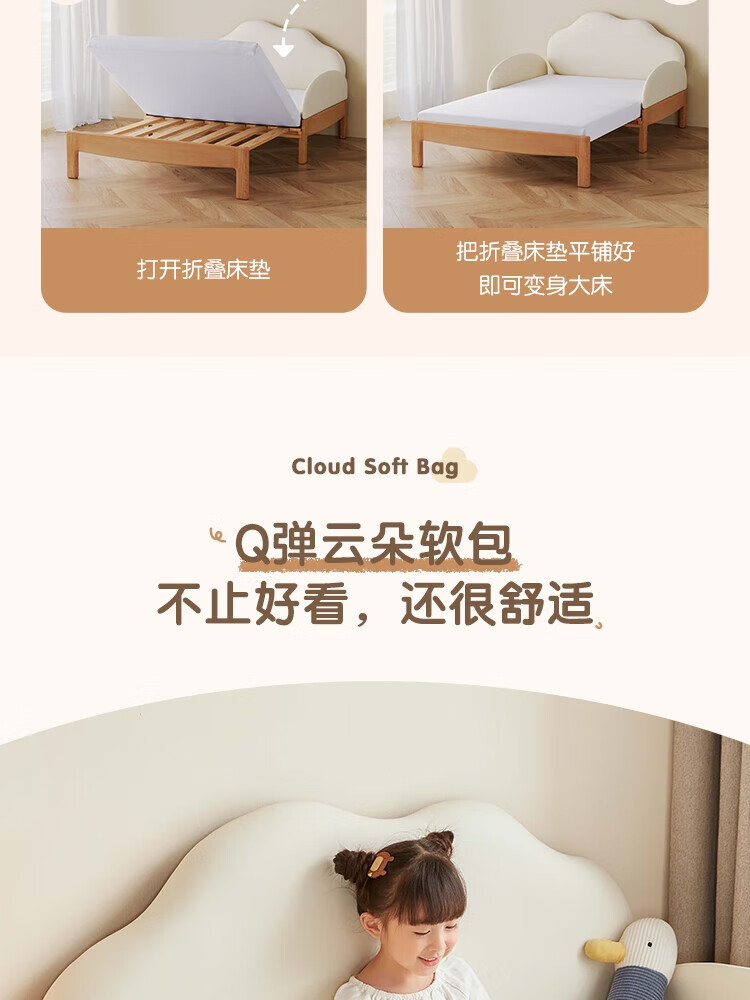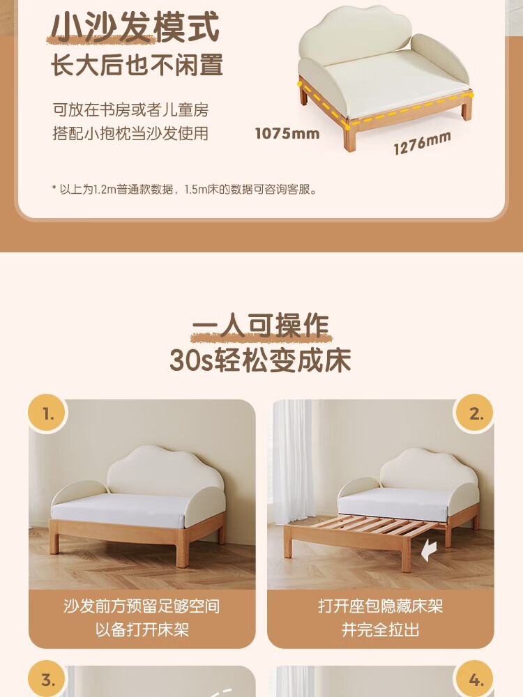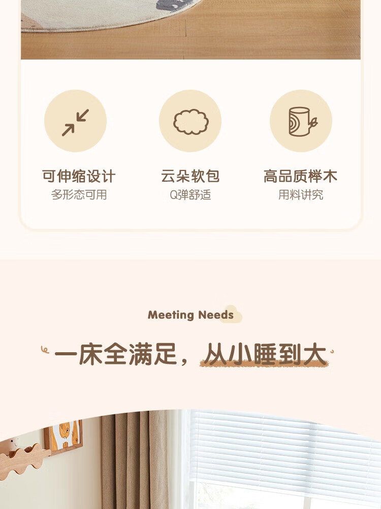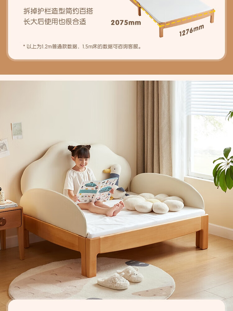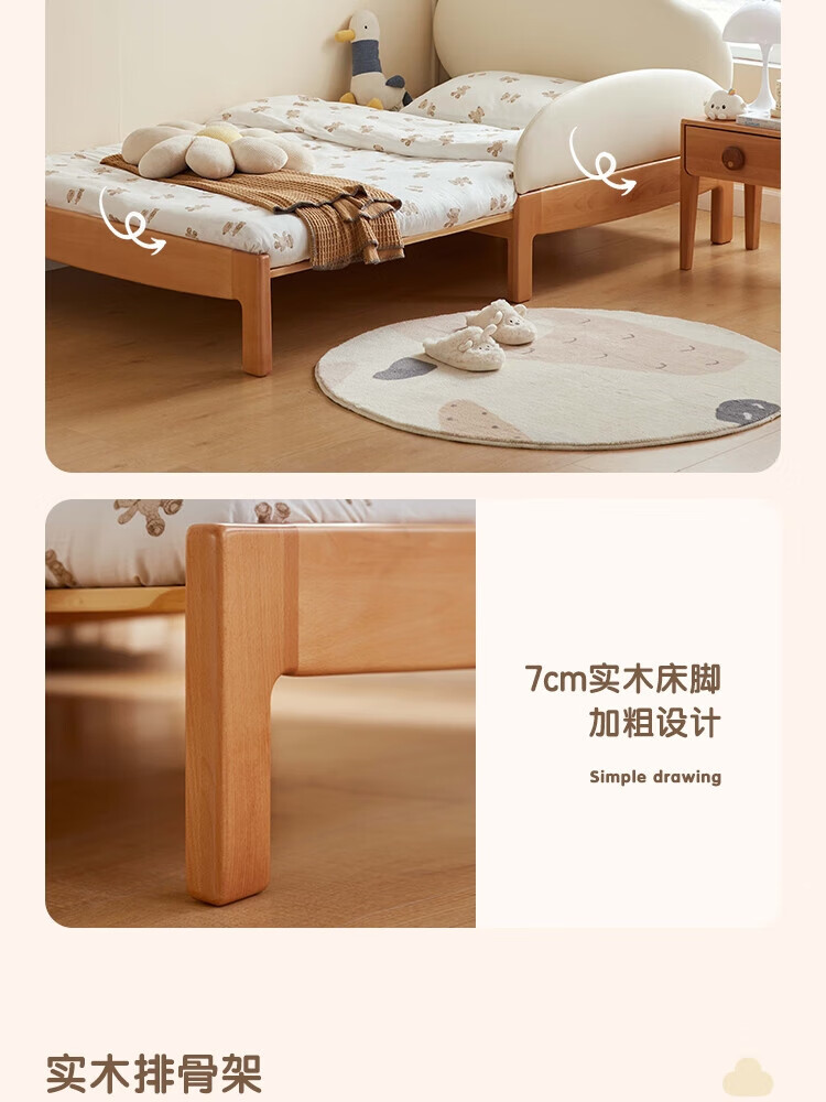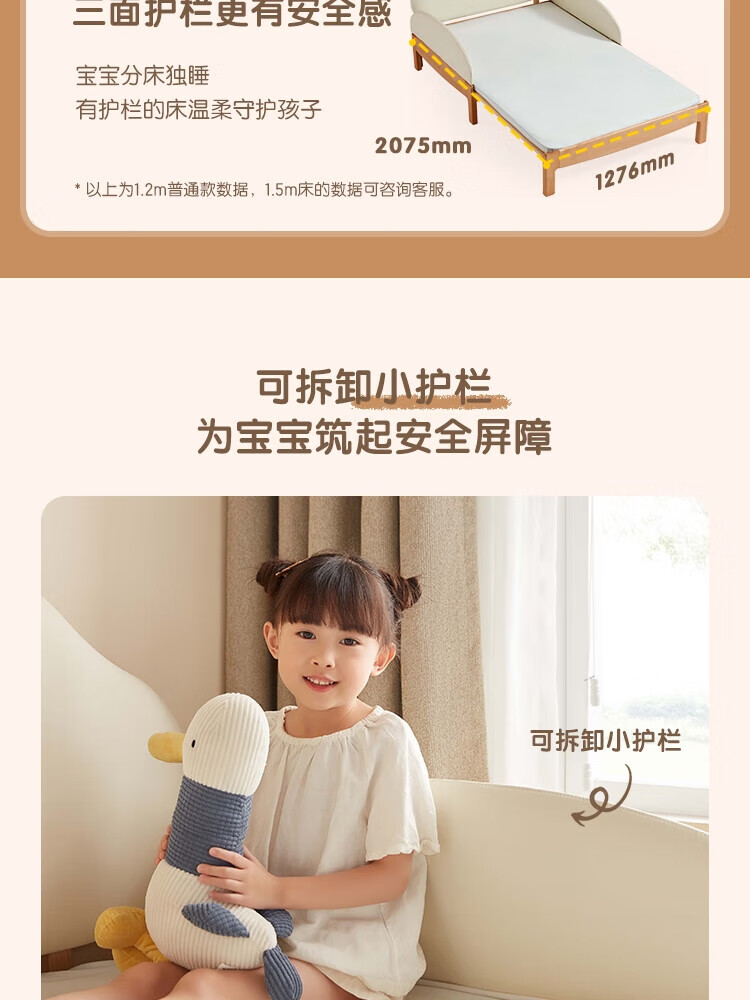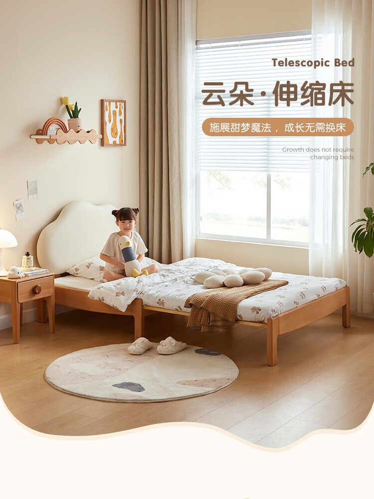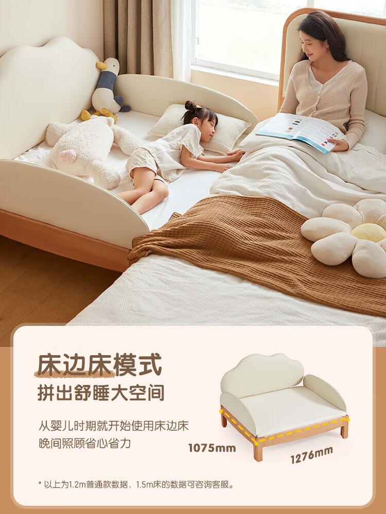 Lin's home solid wood children's bed widened spliced large bed retractable folding single baby crib LH167A3 1.5*2 meters