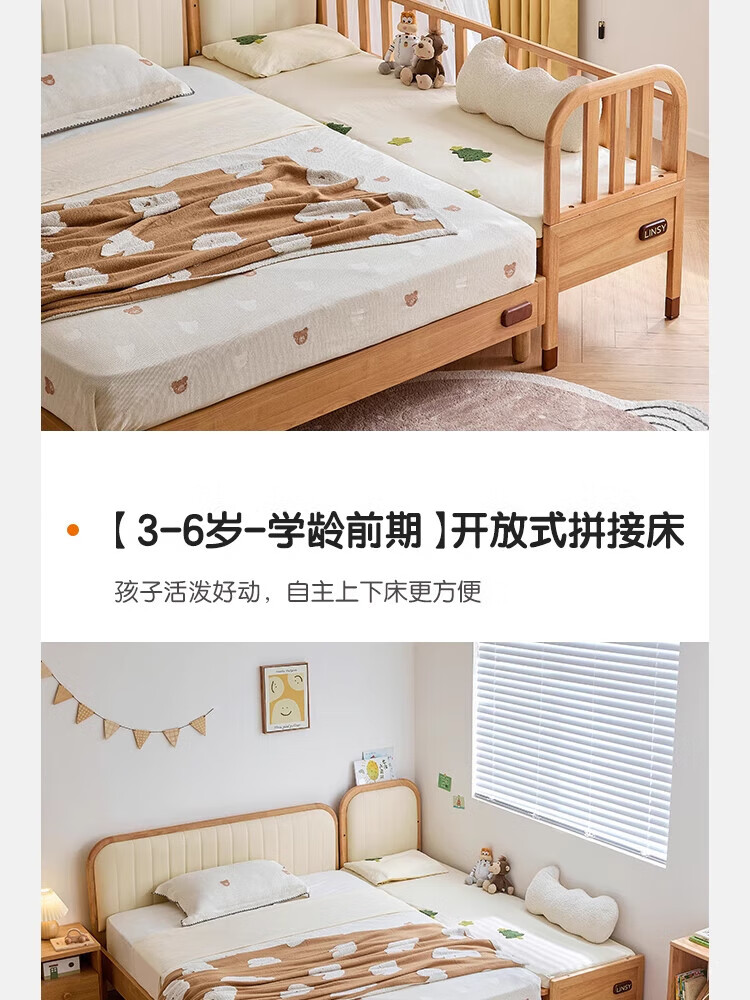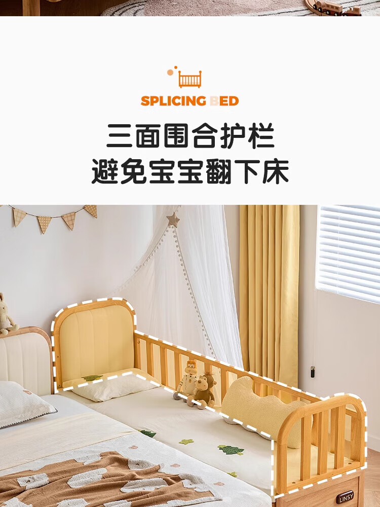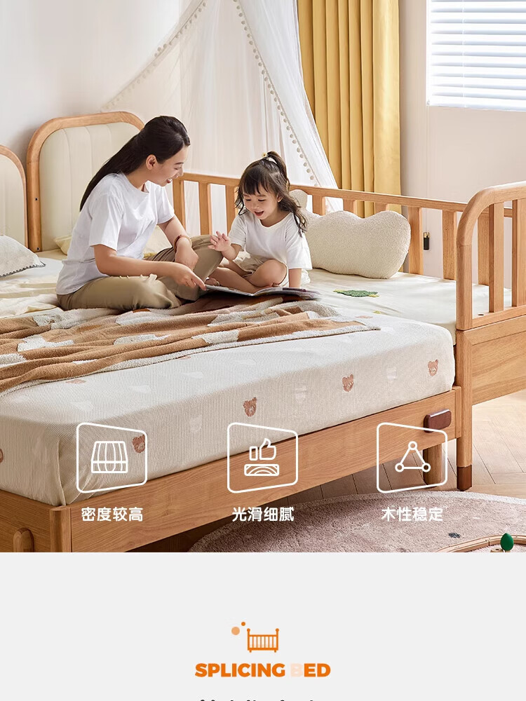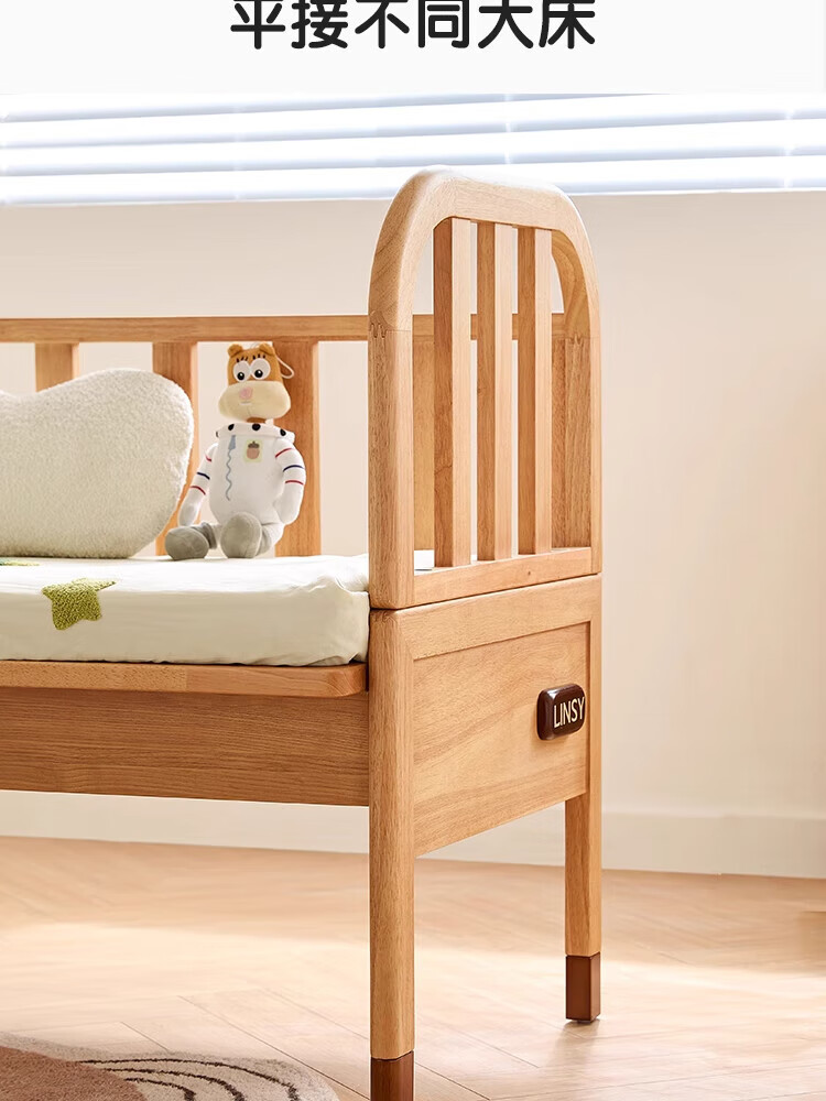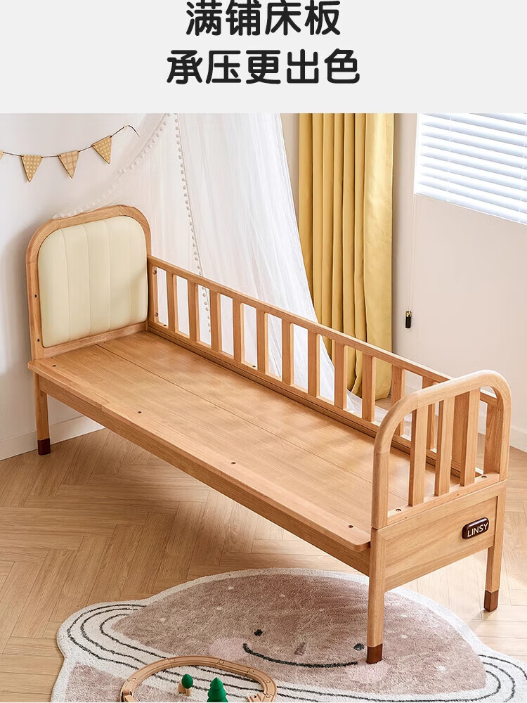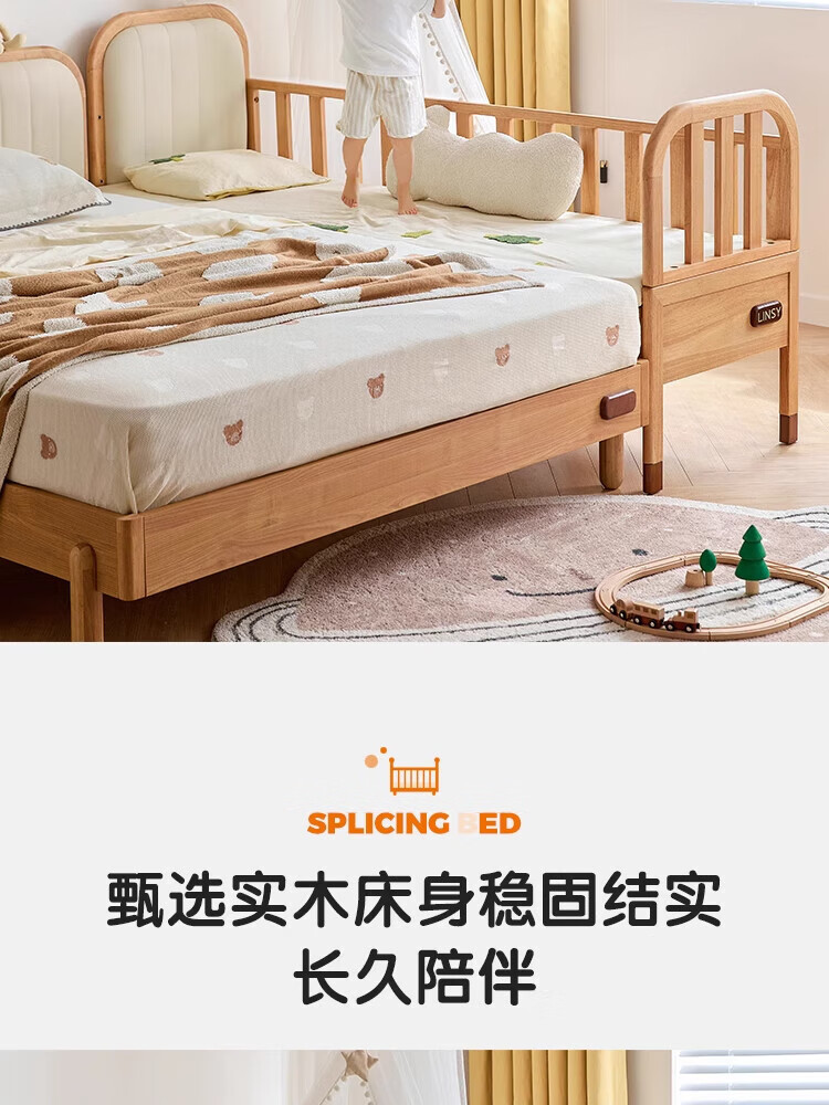 Lin's Home Splicing Bed Baby Crib Crib Side Widen and Height Guardrail Solid Wood Frame Children's Bed KN5B 0.6*2 Meters