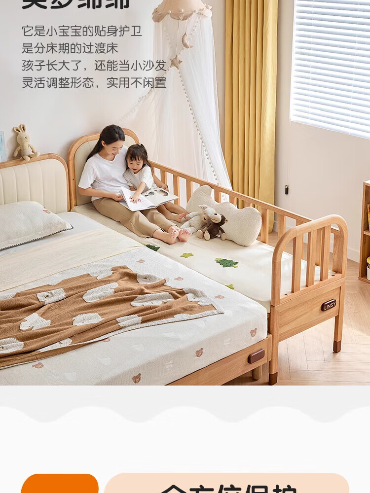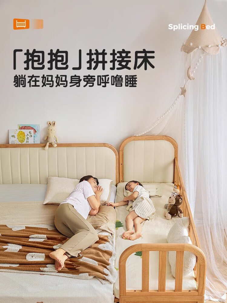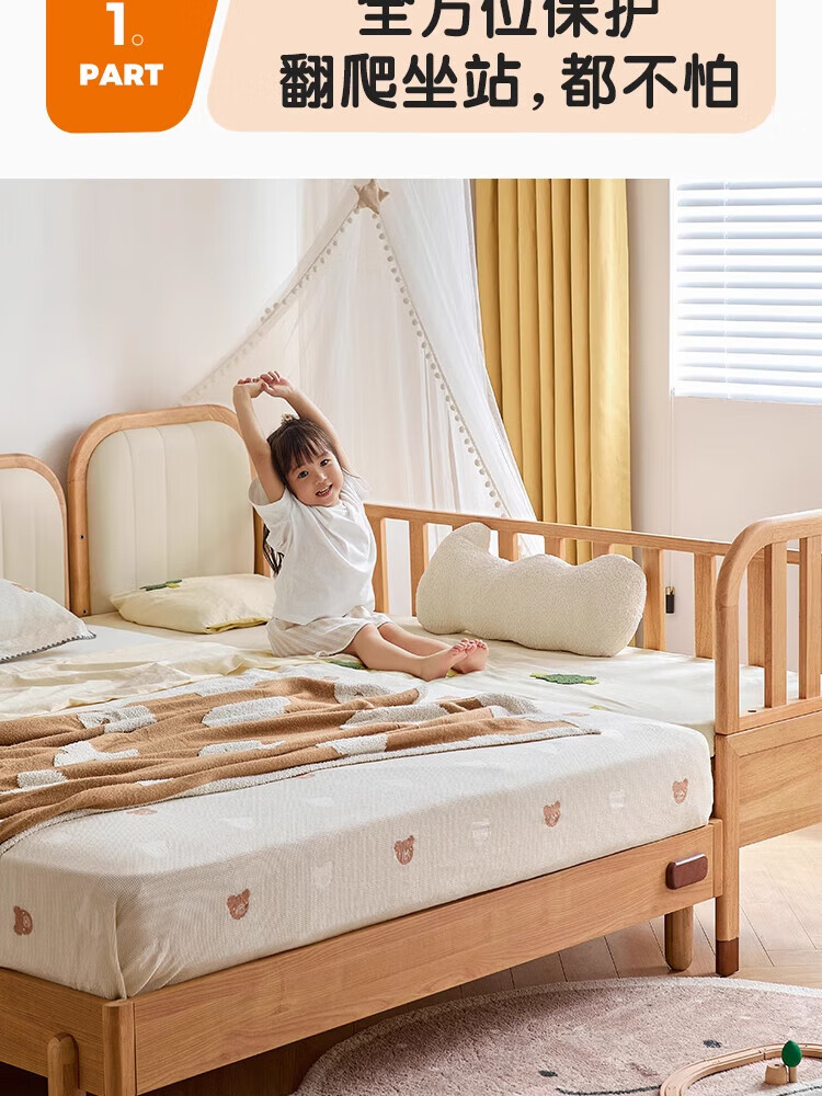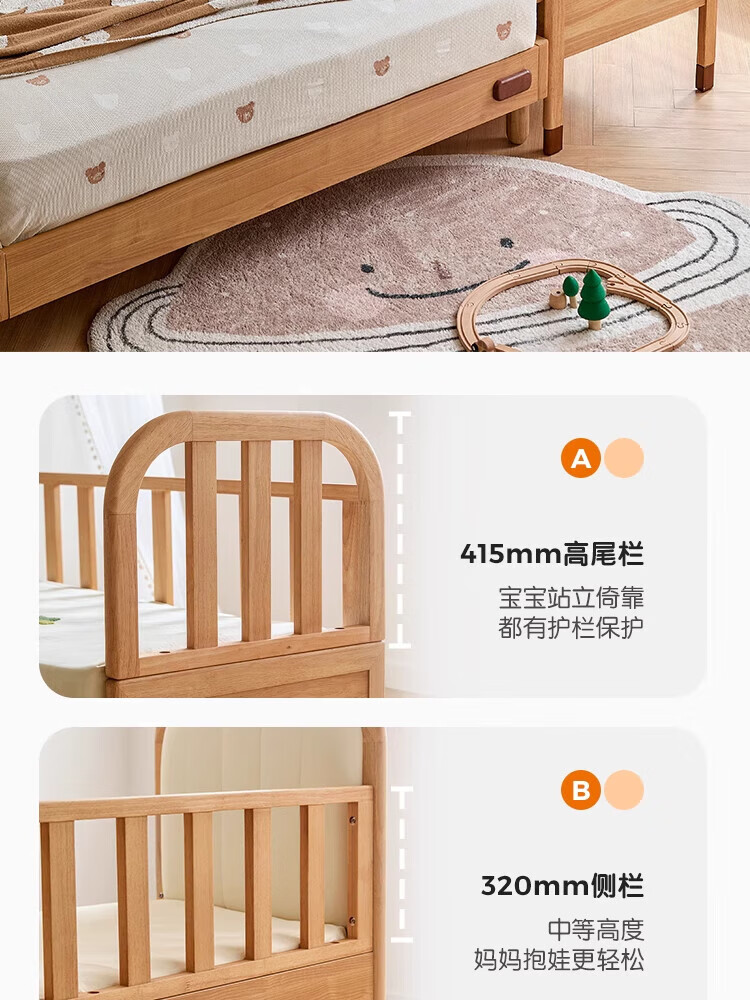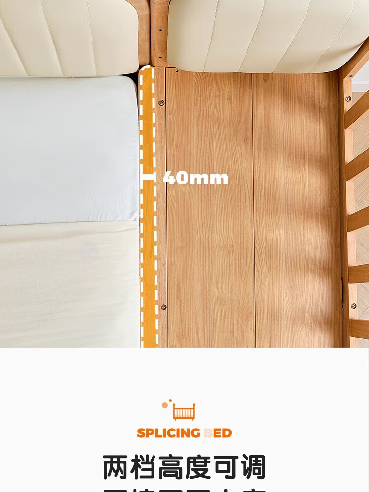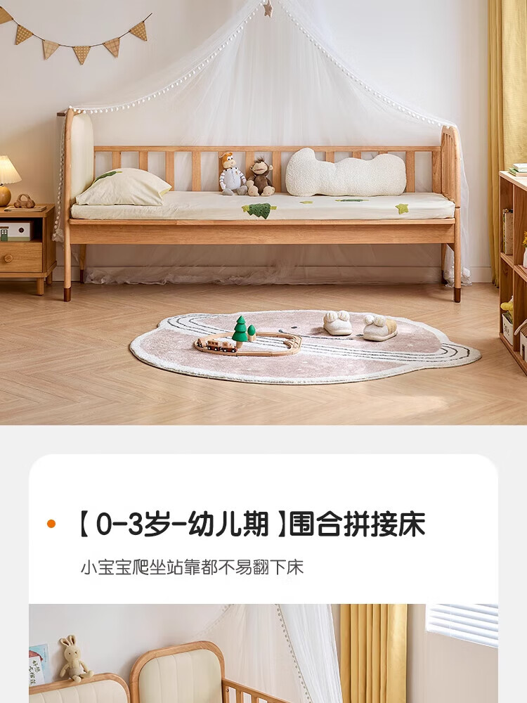 Lin's Home Splicing Bed Baby Crib Crib Side Widen and Height Guardrail Solid Wood Frame Children's Bed KN5B 0.6*2 Meters