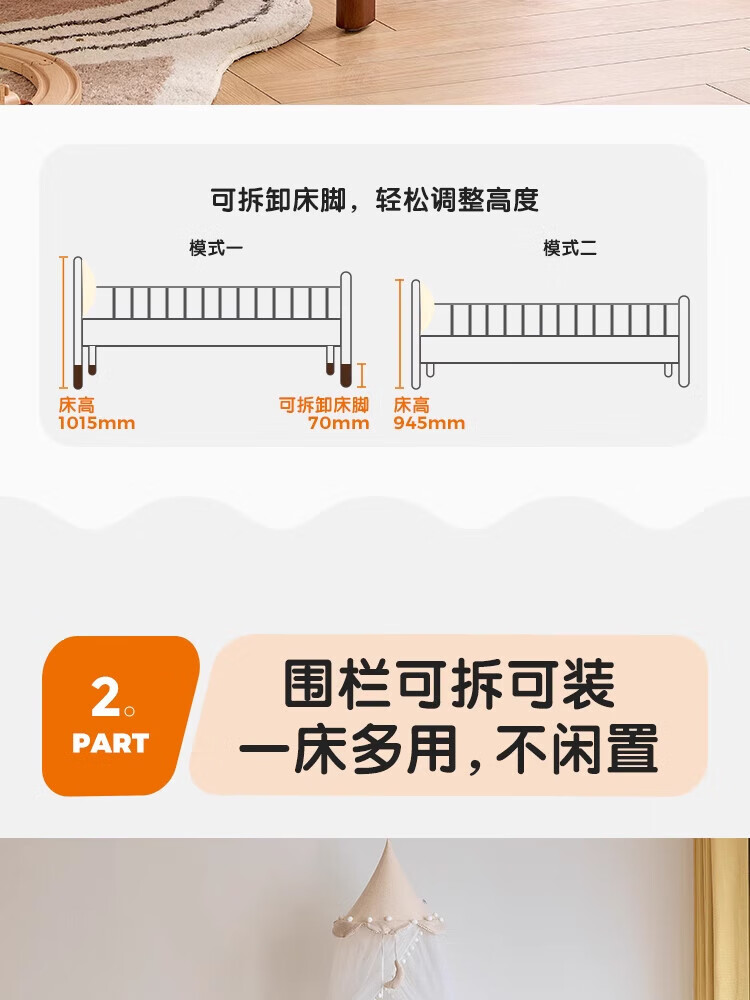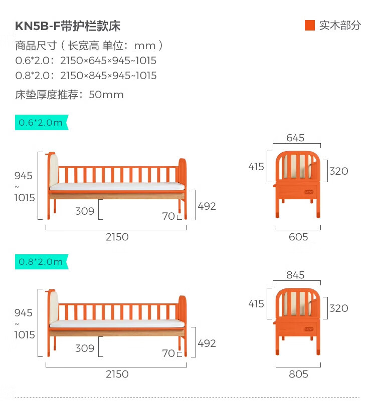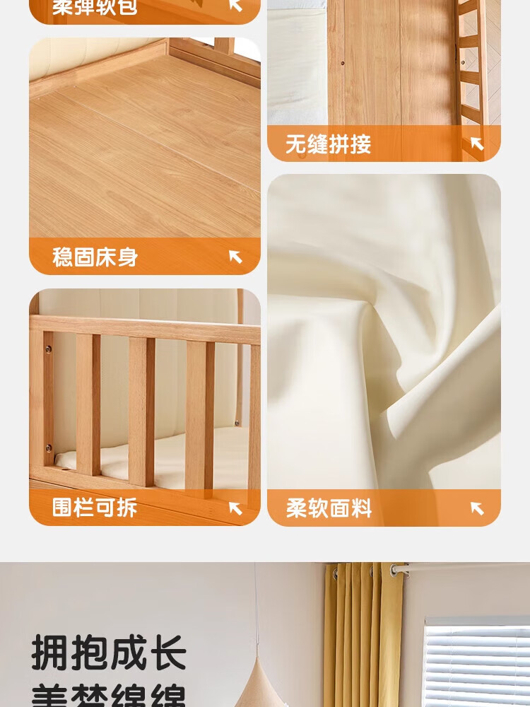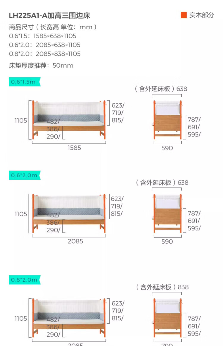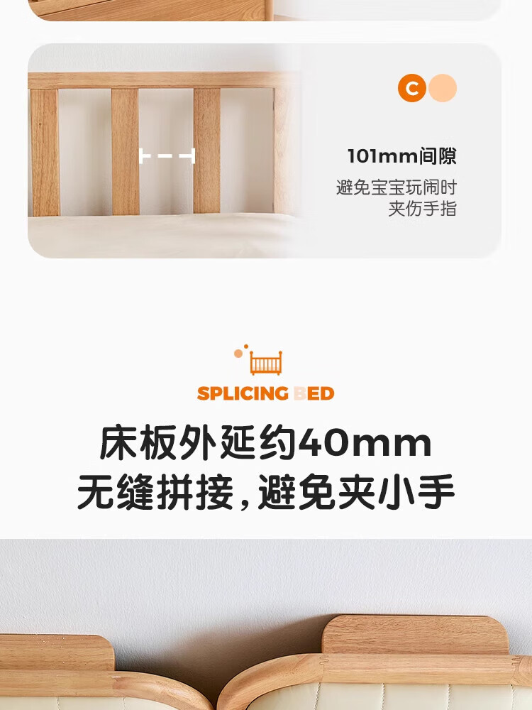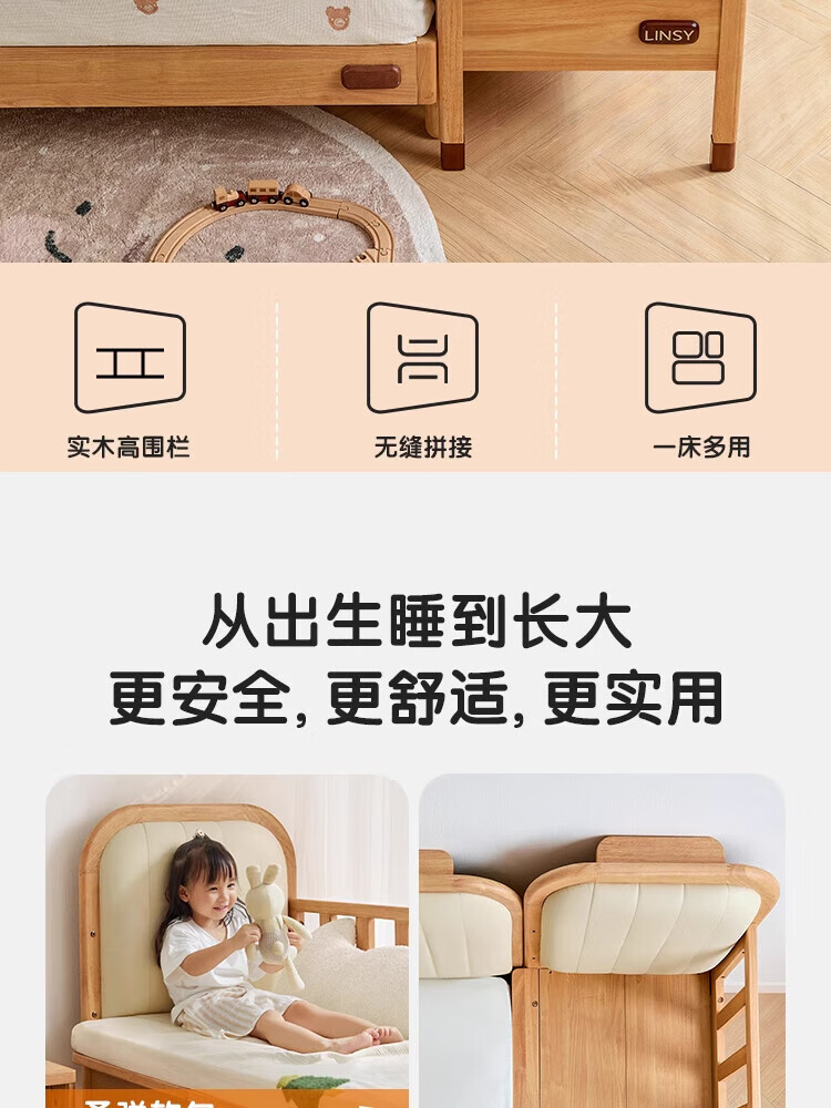 Lin's Home Splicing Bed Baby Crib Crib Side Widen and Height Guardrail Solid Wood Frame Children's Bed KN5B 0.6*2 Meters