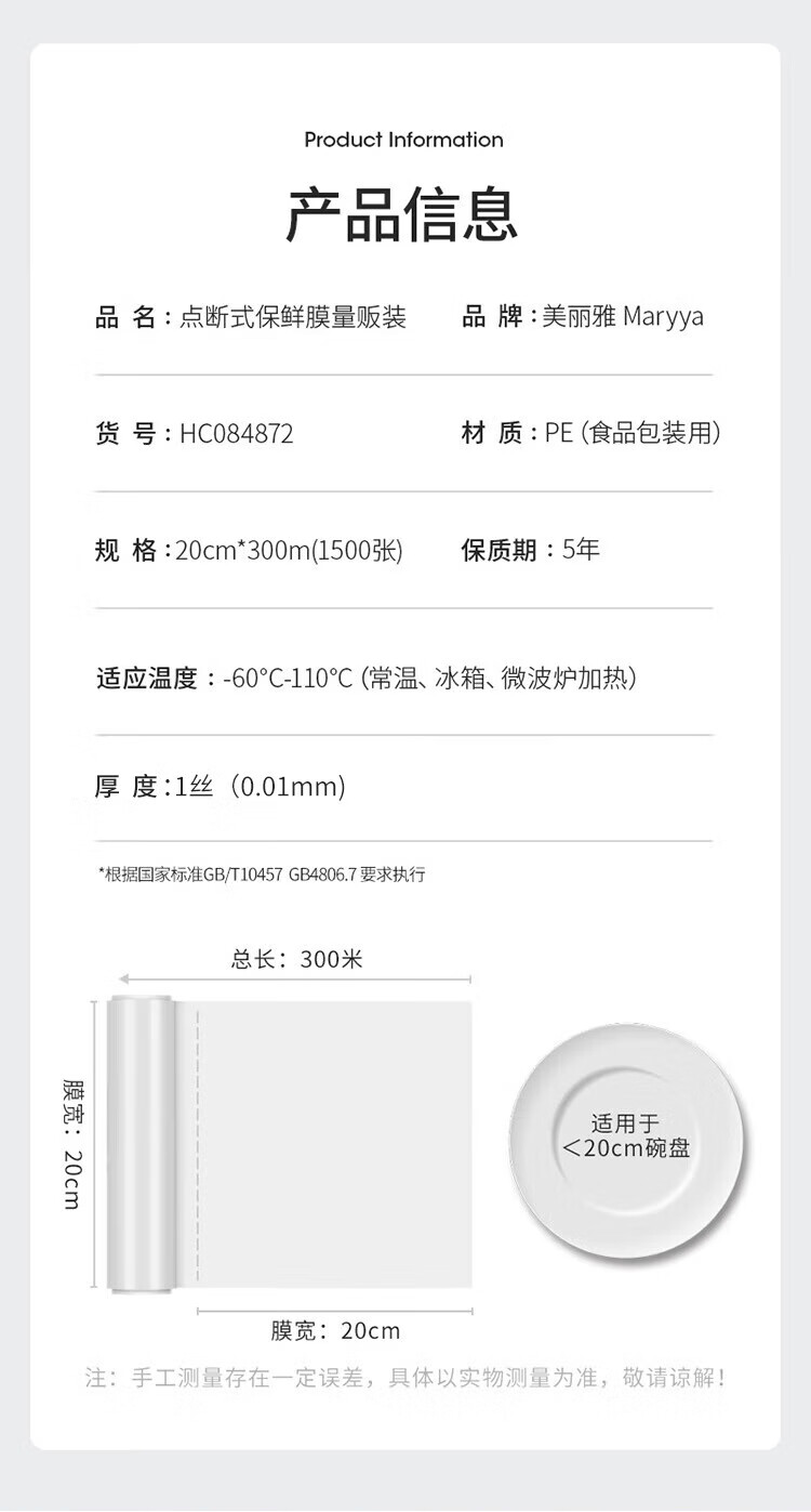 Meiya point-breaking cling film small size 20cm*300 meters food grade cling film high temperature resistant microwave oven available