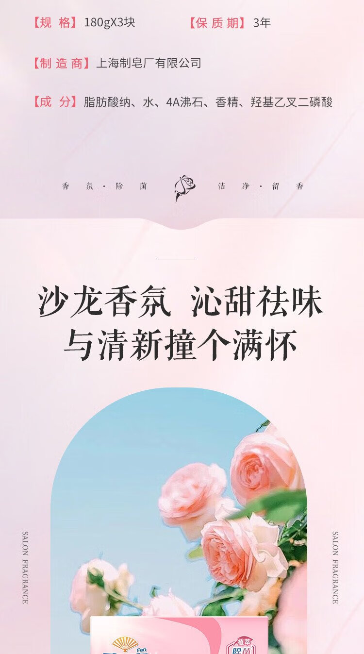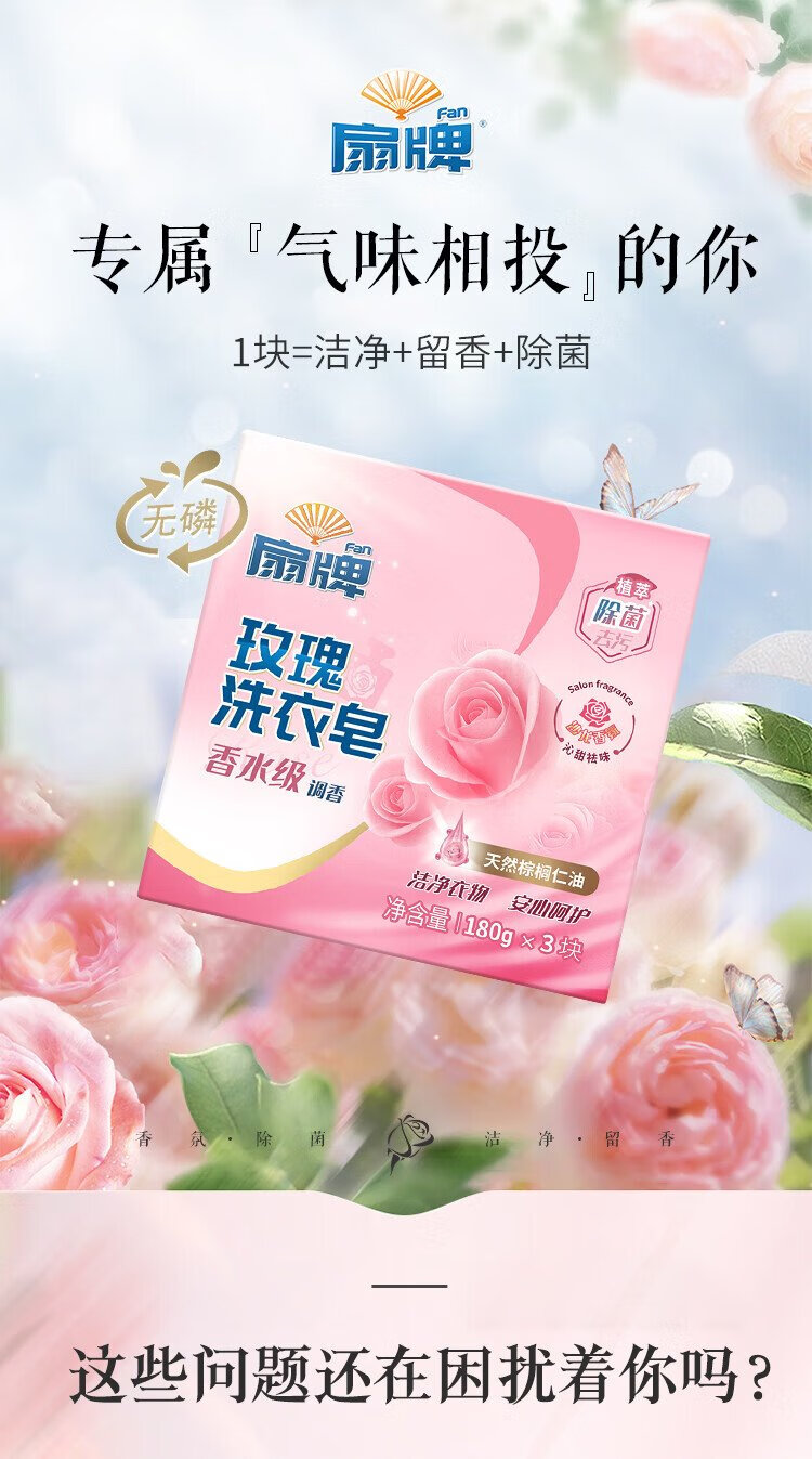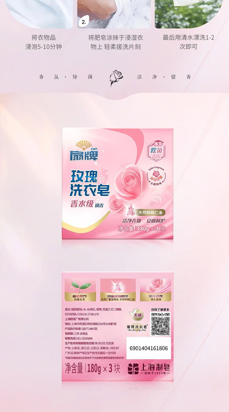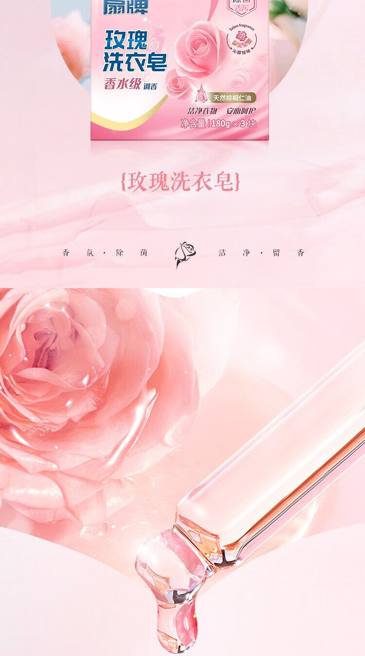 Fan Brand Rose Laundry Soap 180g*3 pieces Perfume Grade Fragrance-Removing Bacteria-Decontamination Fragrance-Leaving Soap Phosphorus-Free Jingdong Supermarket