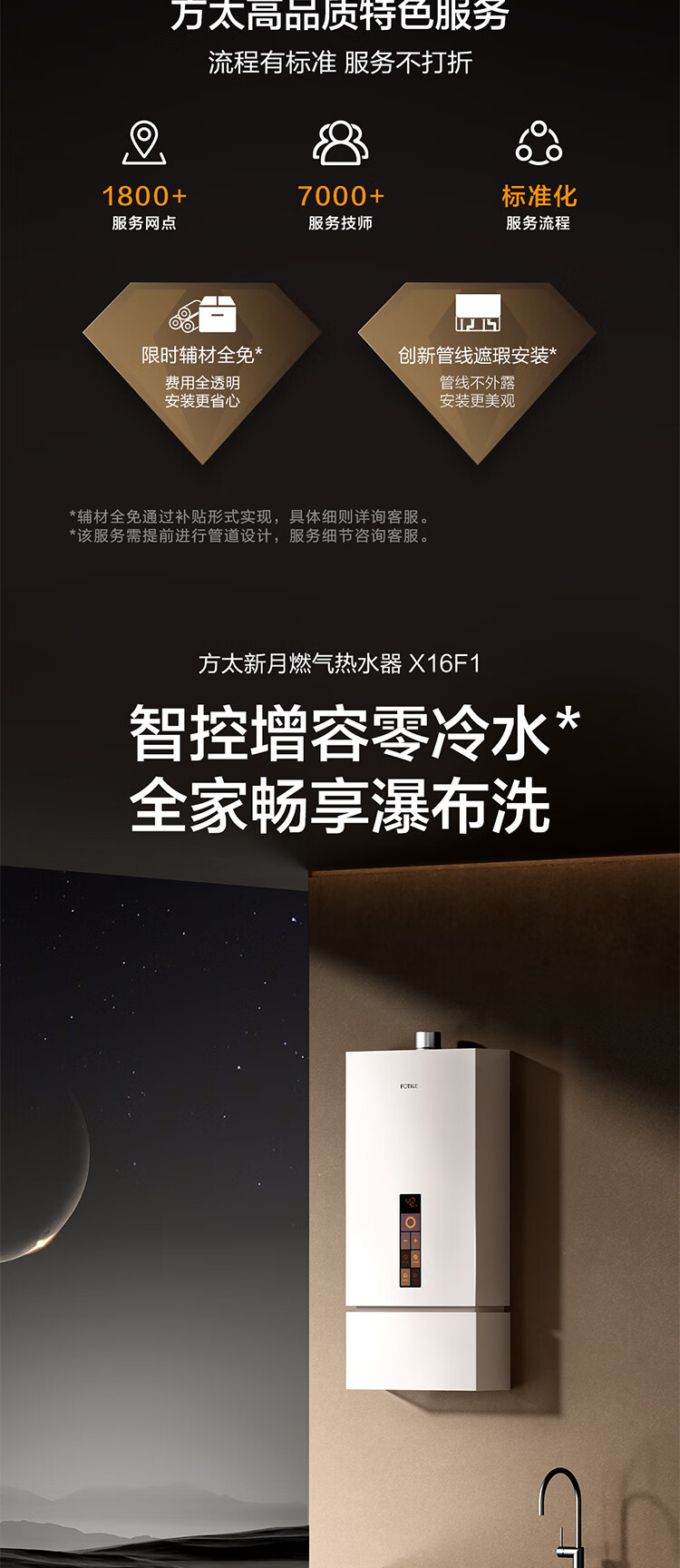 FOTILE National Subsidy Gas Water Heater 16 liters 0 yuan door-to-door installation supercharged zero cold water water servo soft sound sleep wash supercharged capacity increased by 17 liters X16F1-FR