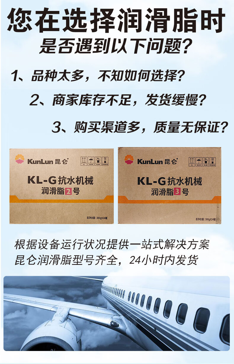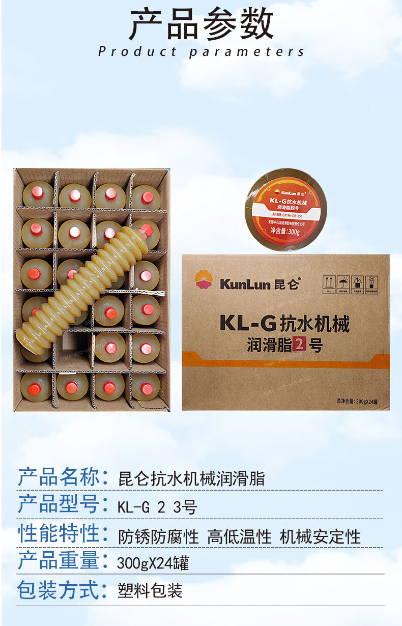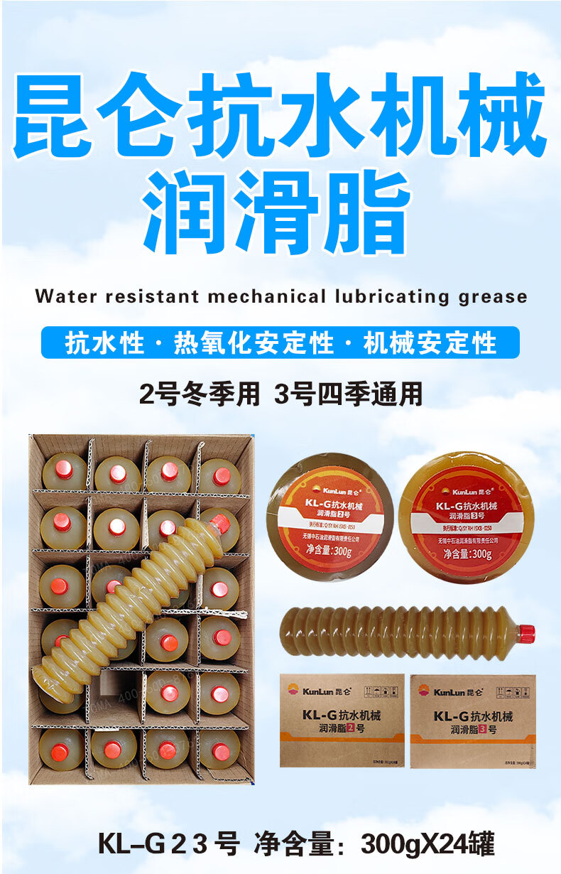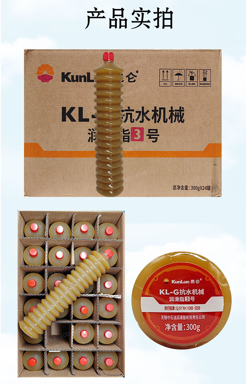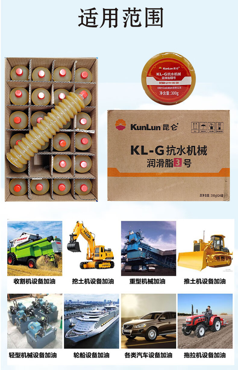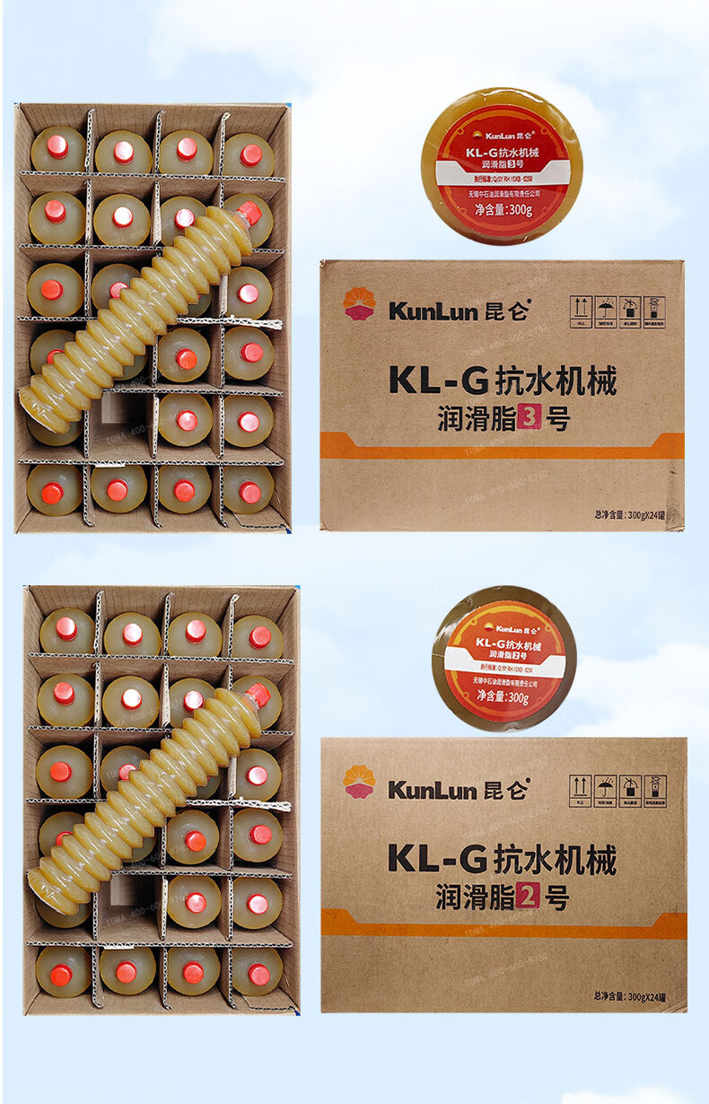Kunlun KL-G water-resistant mechanical grease No. 3 caterpillar butter bullet high temperature gun grease corrugated grease lithium base grease 300g*24 pieces/box