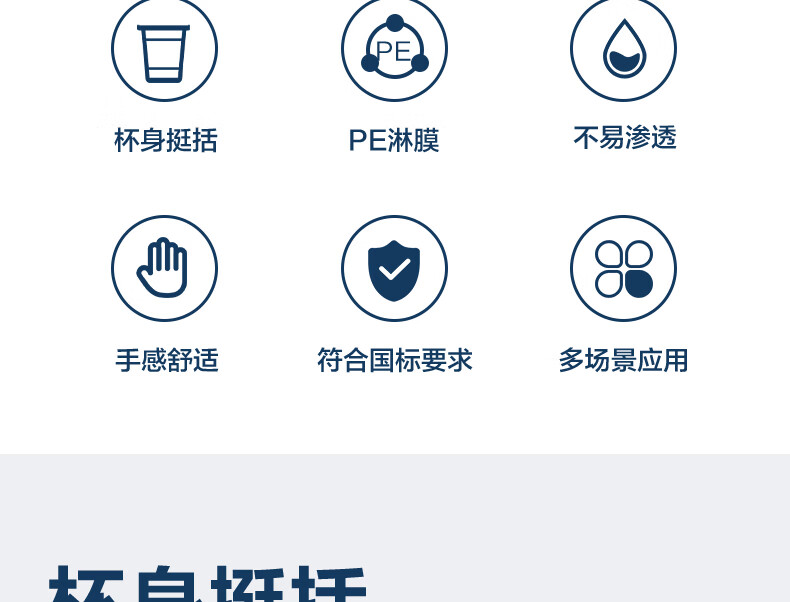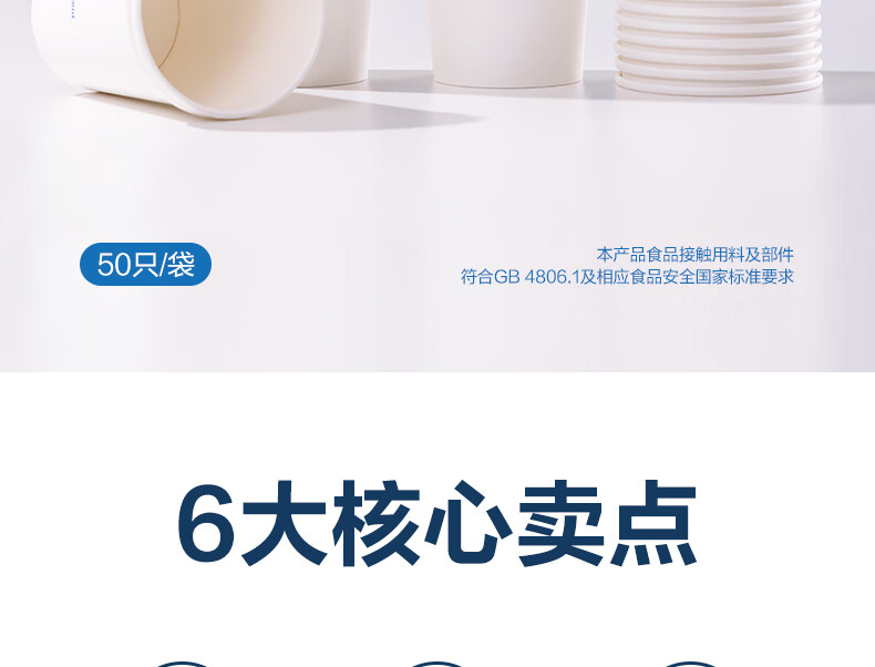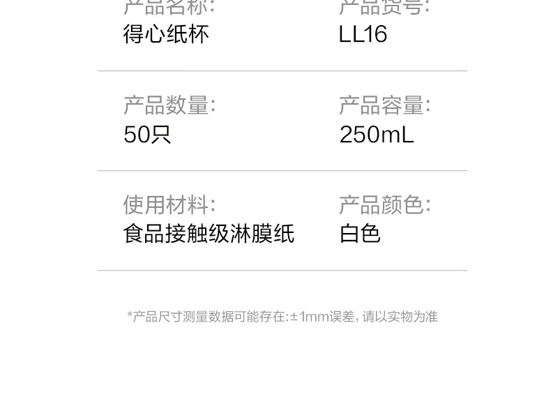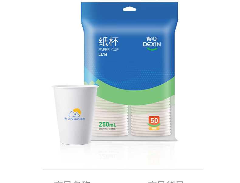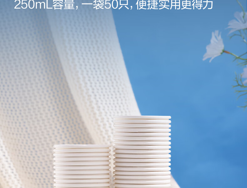 Deli (deli) 50 250ml disposable paper cups, business office household anti-scalding thickened water cups, white LL16
