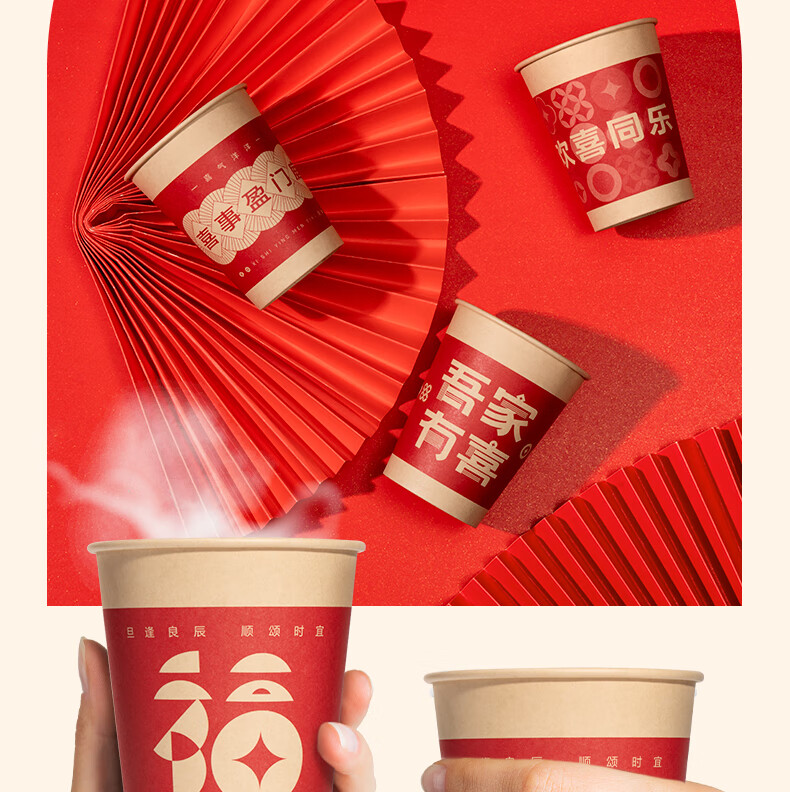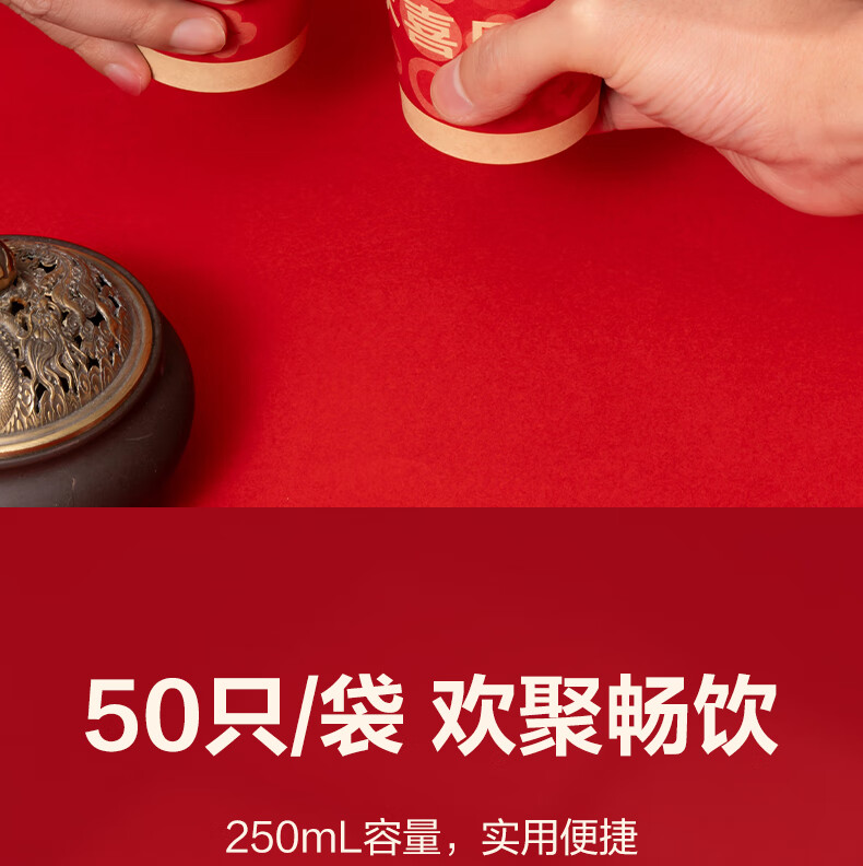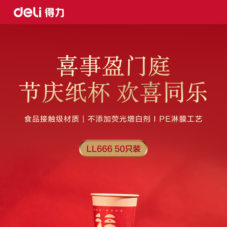 Deli festive thickened paper cup disposable cup festive banquet water cup 250ML*50 only holds happy events