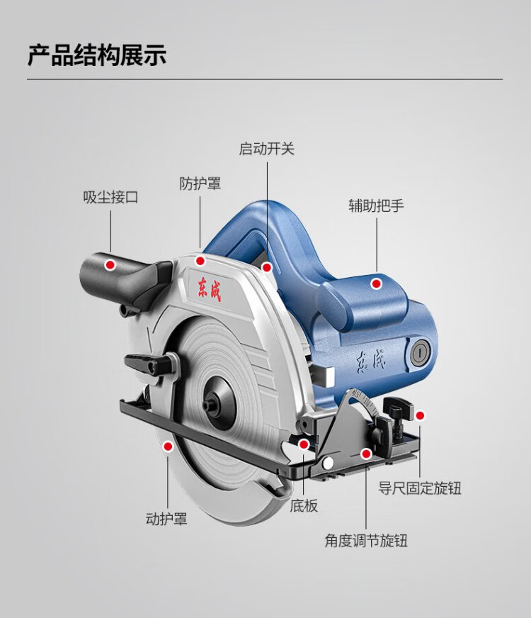 Dongcheng 1500W industrial grade portable electric saw woodworking table saw household aluminum plastic cutting machine disc saw M1Y-FF07-185