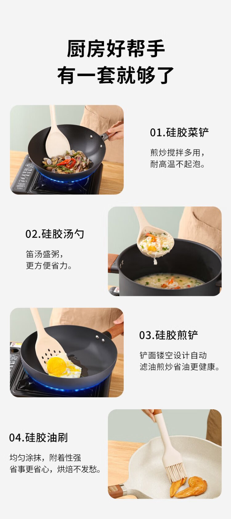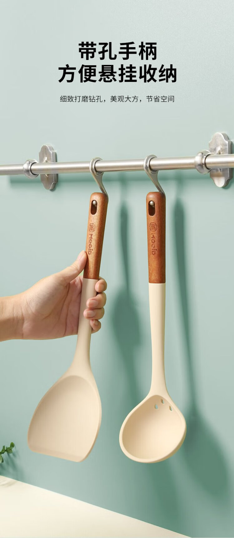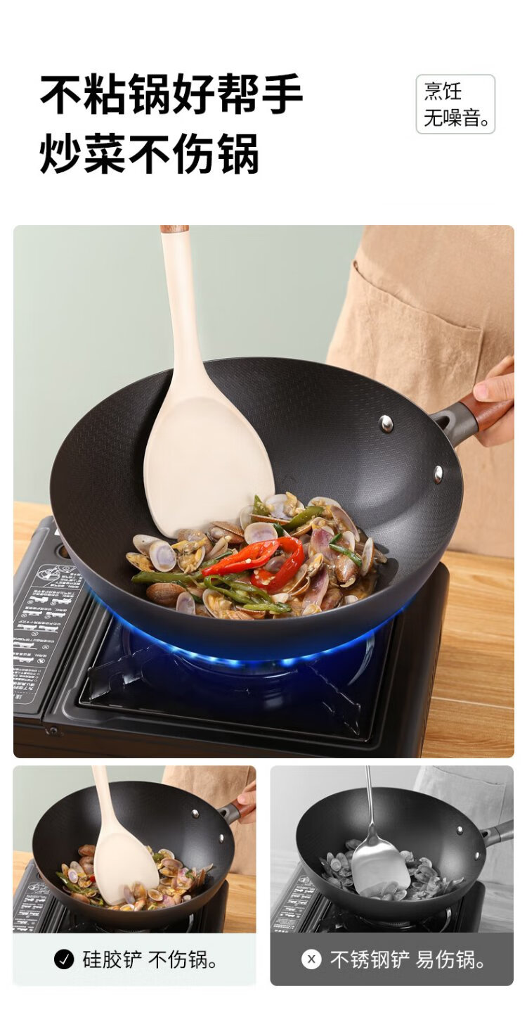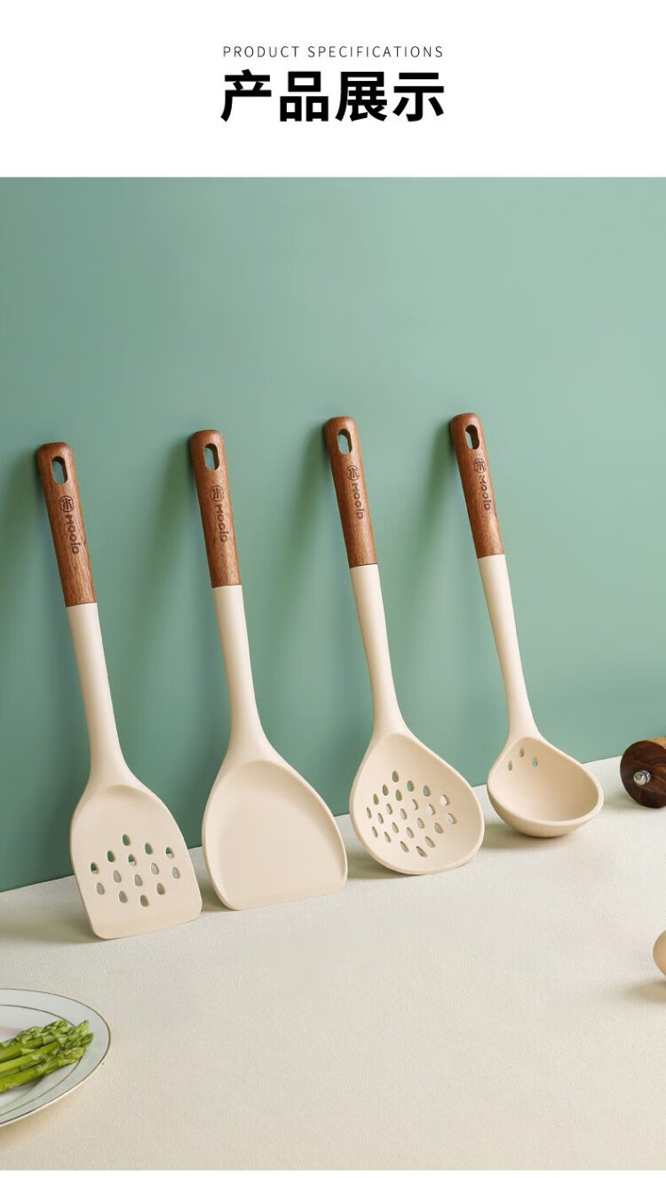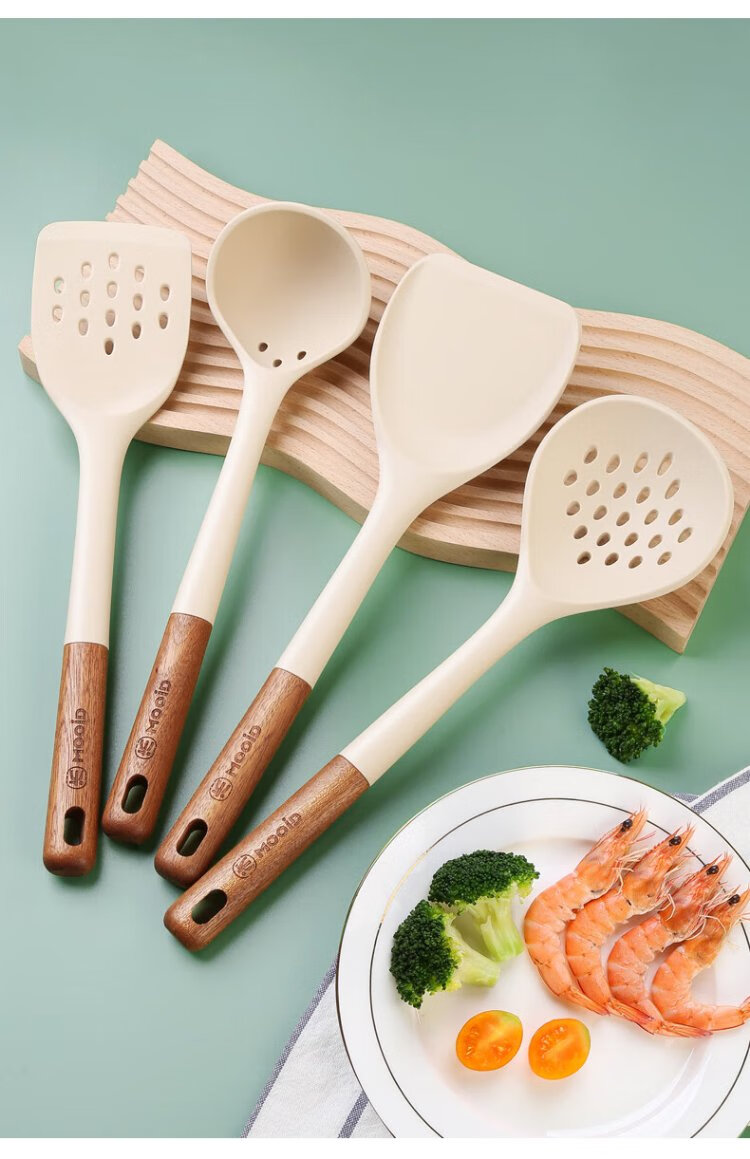 Wooden mooid silicone spatula, high temperature resistant spatula, non-stick frying pan, frying pan, cooking spatula