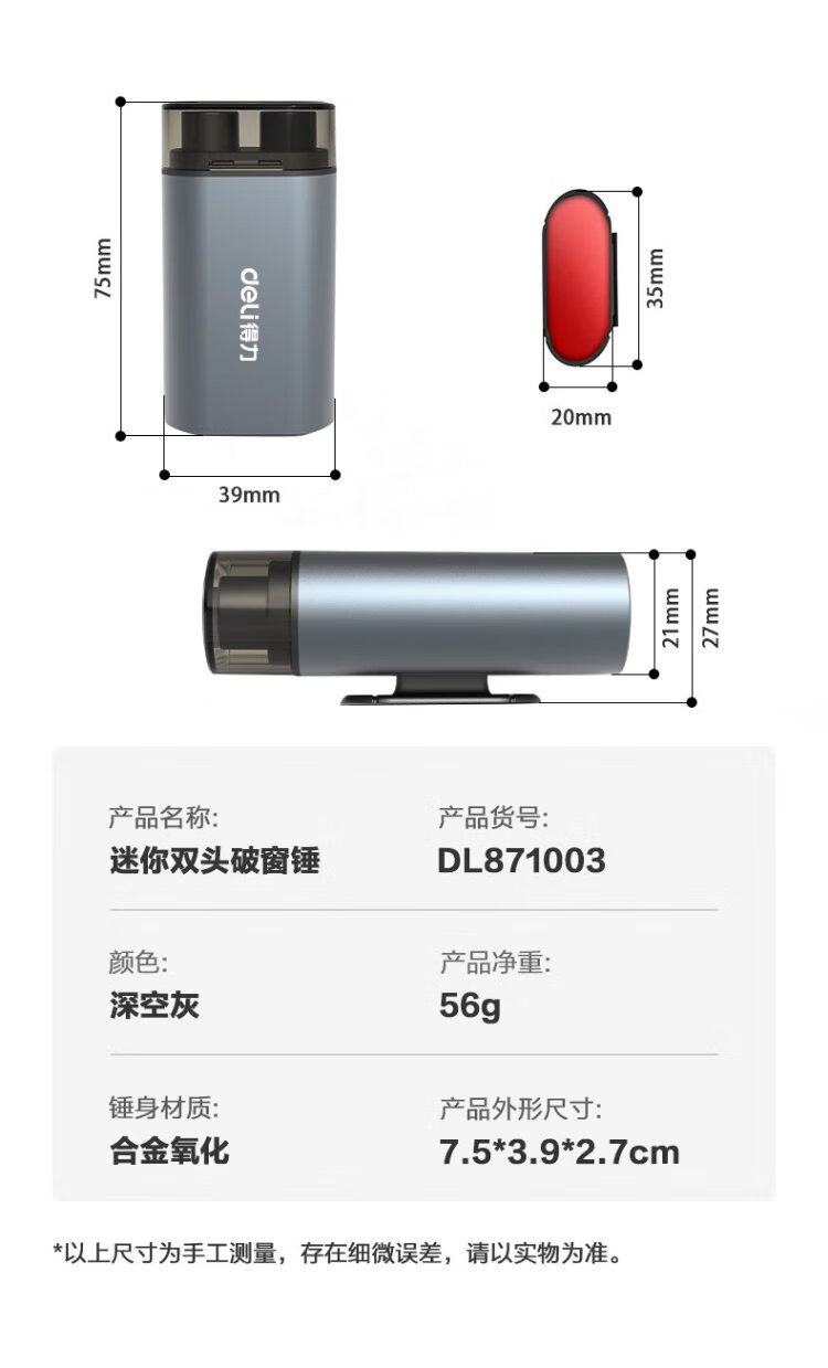Deli car safety hammer escape artifact double-headed window breaker comes with magnetic base + glass, suitable for Xiaomi su7