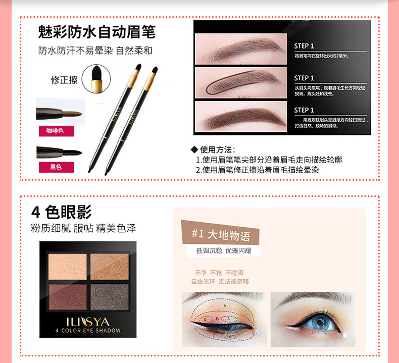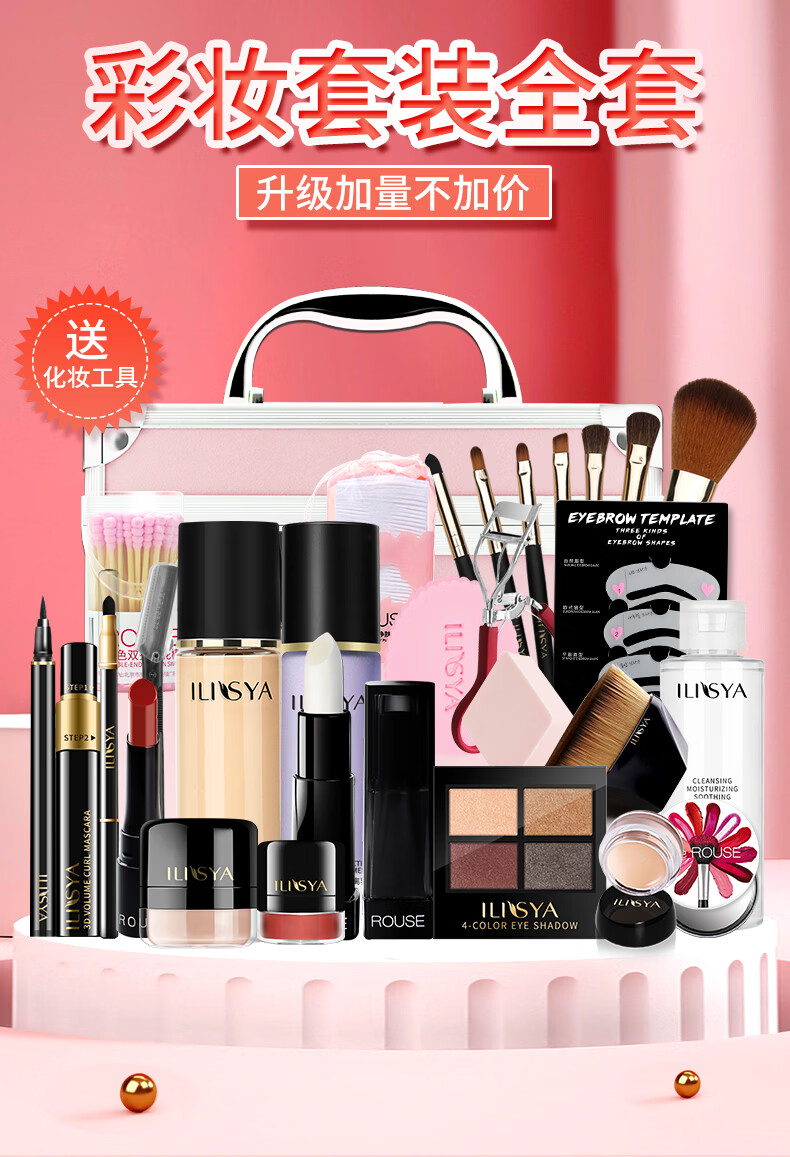 ILISYA Birthday Gift 28 Pieces Soft Color Makeup Set Cosmetics Complete Beginner Beauty Makeup Pink Makeup Box