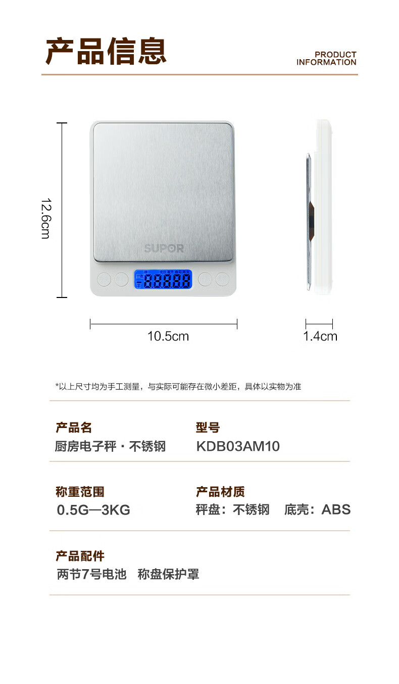 SUPOR electronic scale kitchen scale household electronic scale gram scale baking scale high precision KDB03AM10