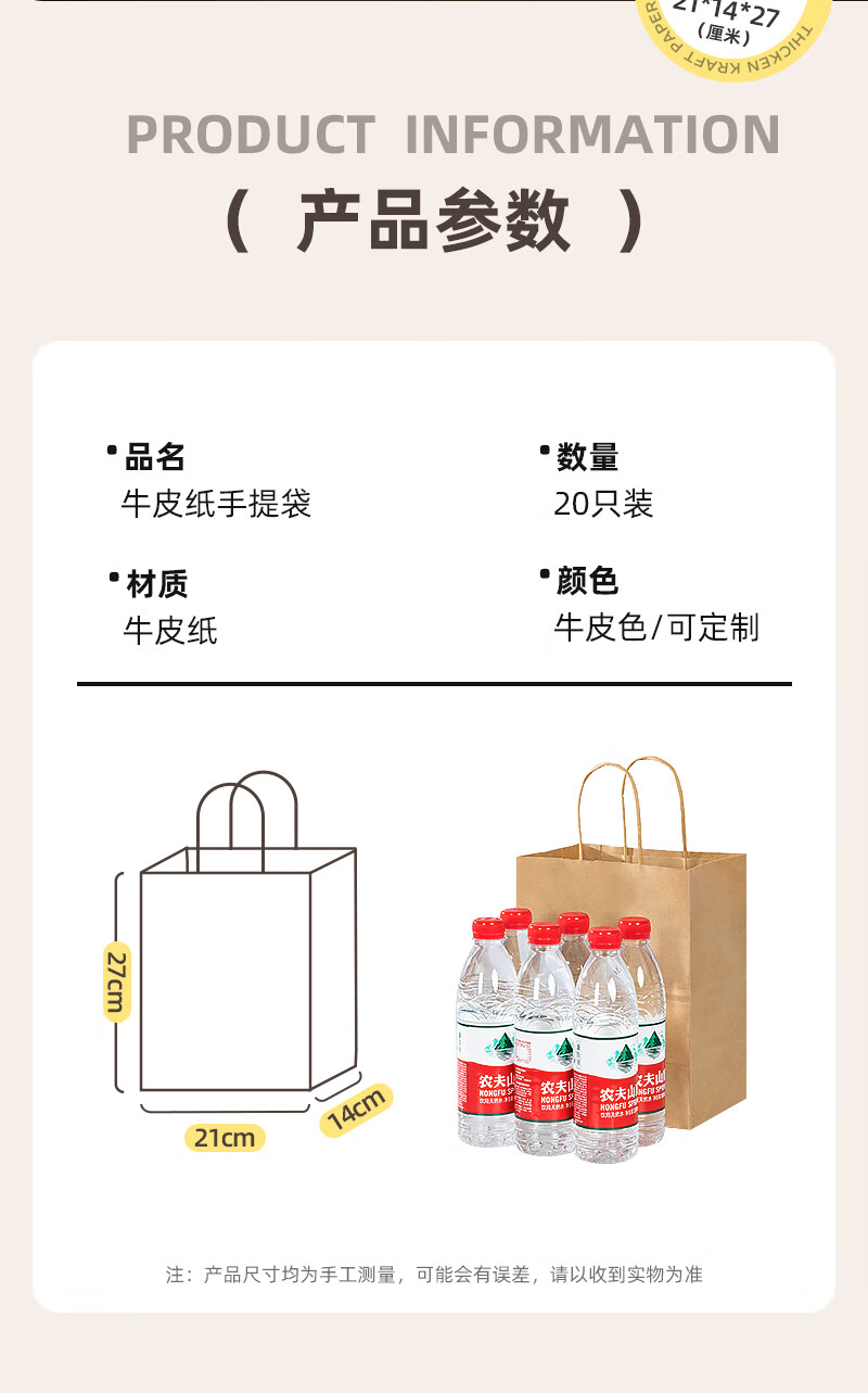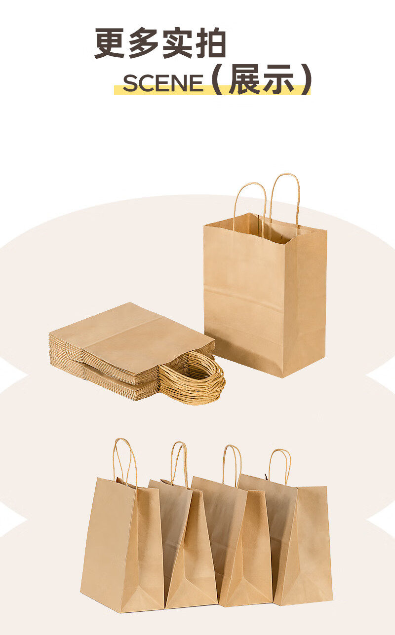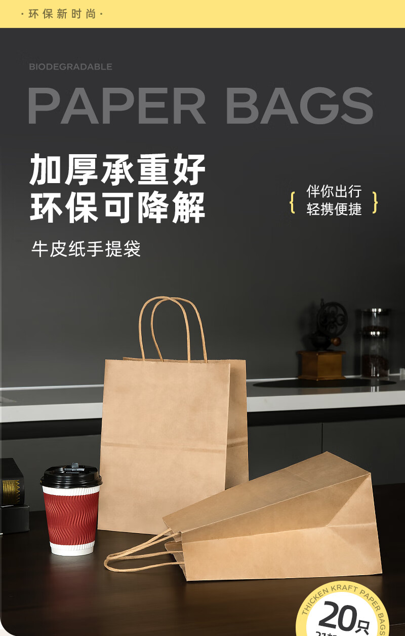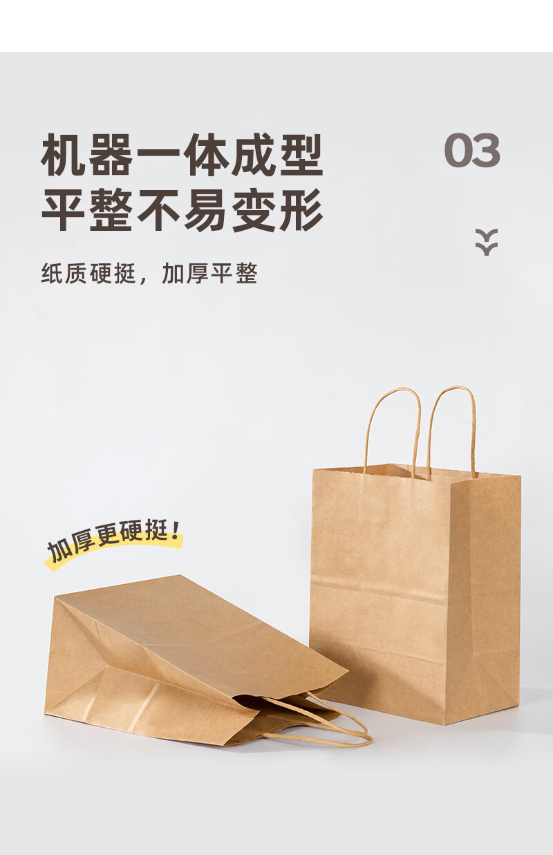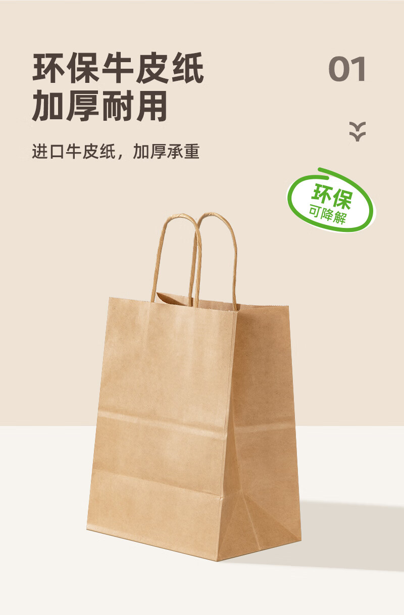 Temeiju disposable kraft paper bag handbag takeaway packaging bag food milk tea packaging bag gift bag medium size 20 pieces