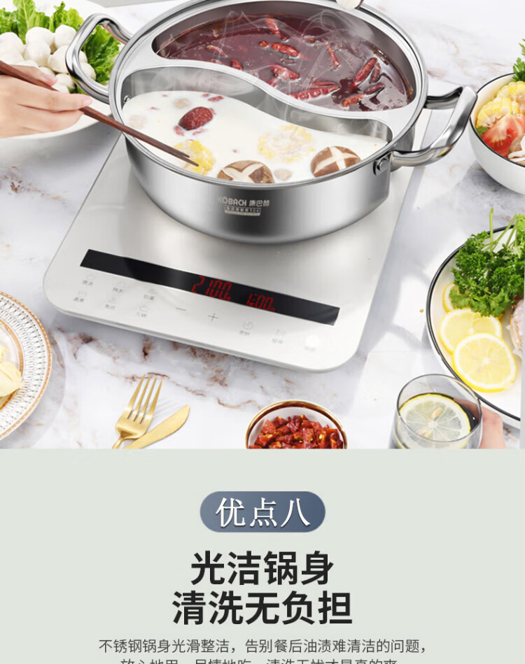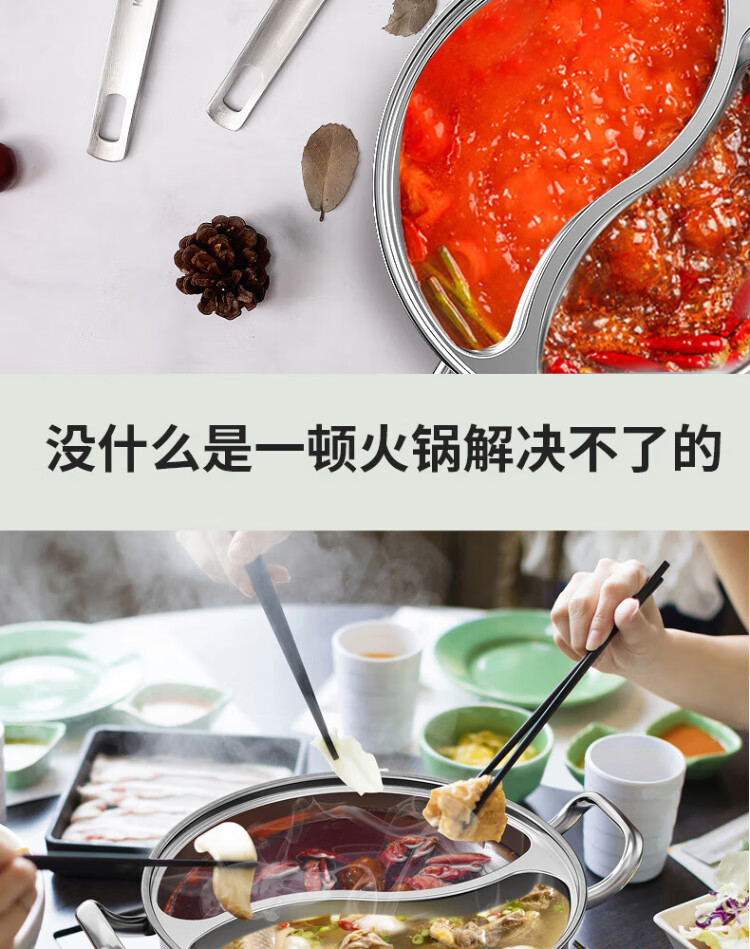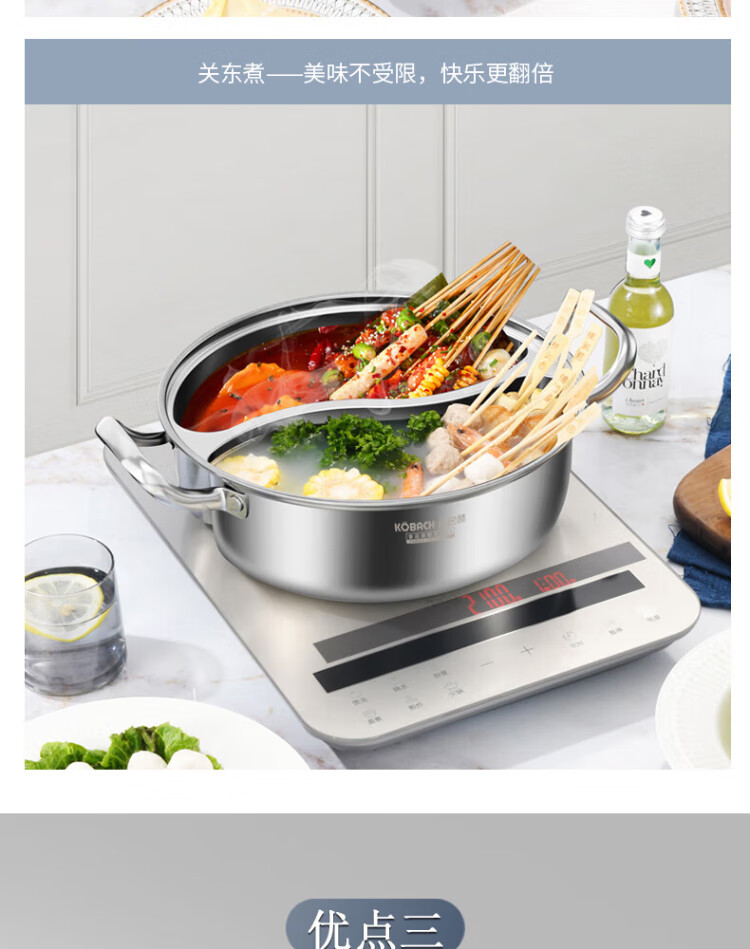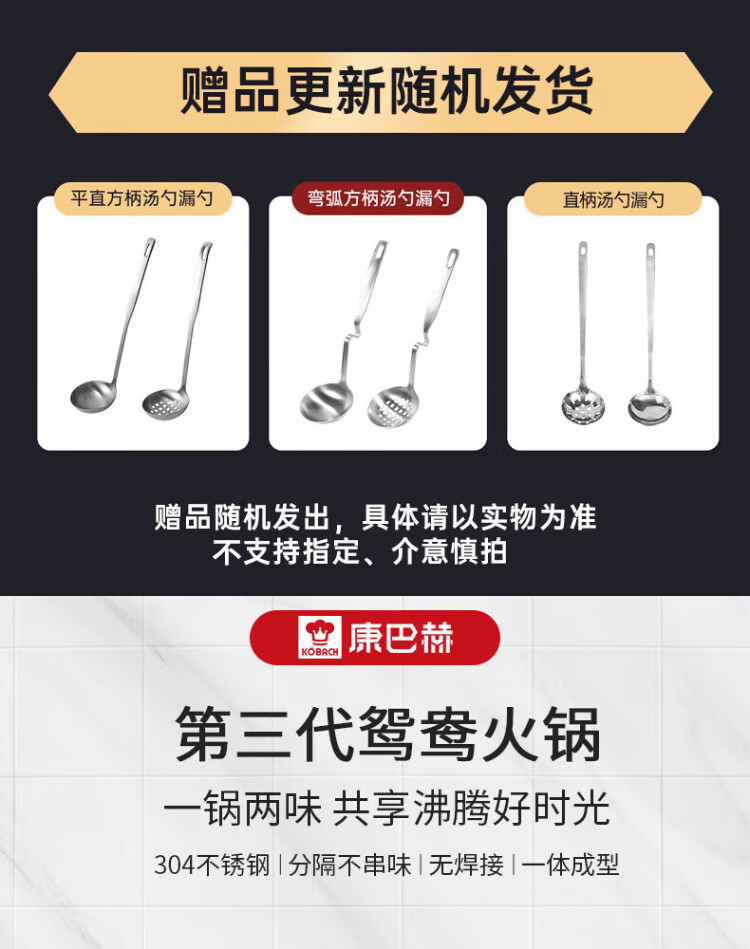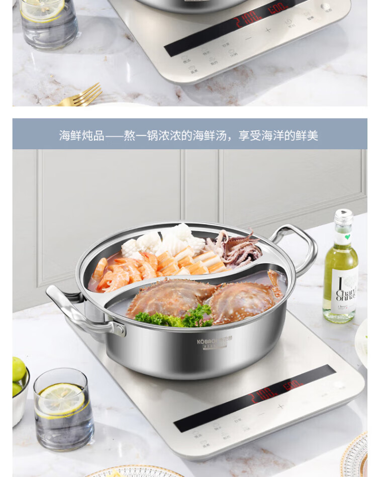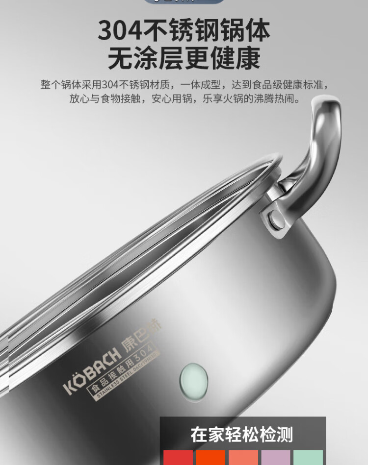 Kobach (KOBACH) 304 stainless steel hot pot, mandarin duck pot, dual-purpose pot, thickened multi-bottom hot pot pot, multi-functional soup pot, shabu-shabu pot