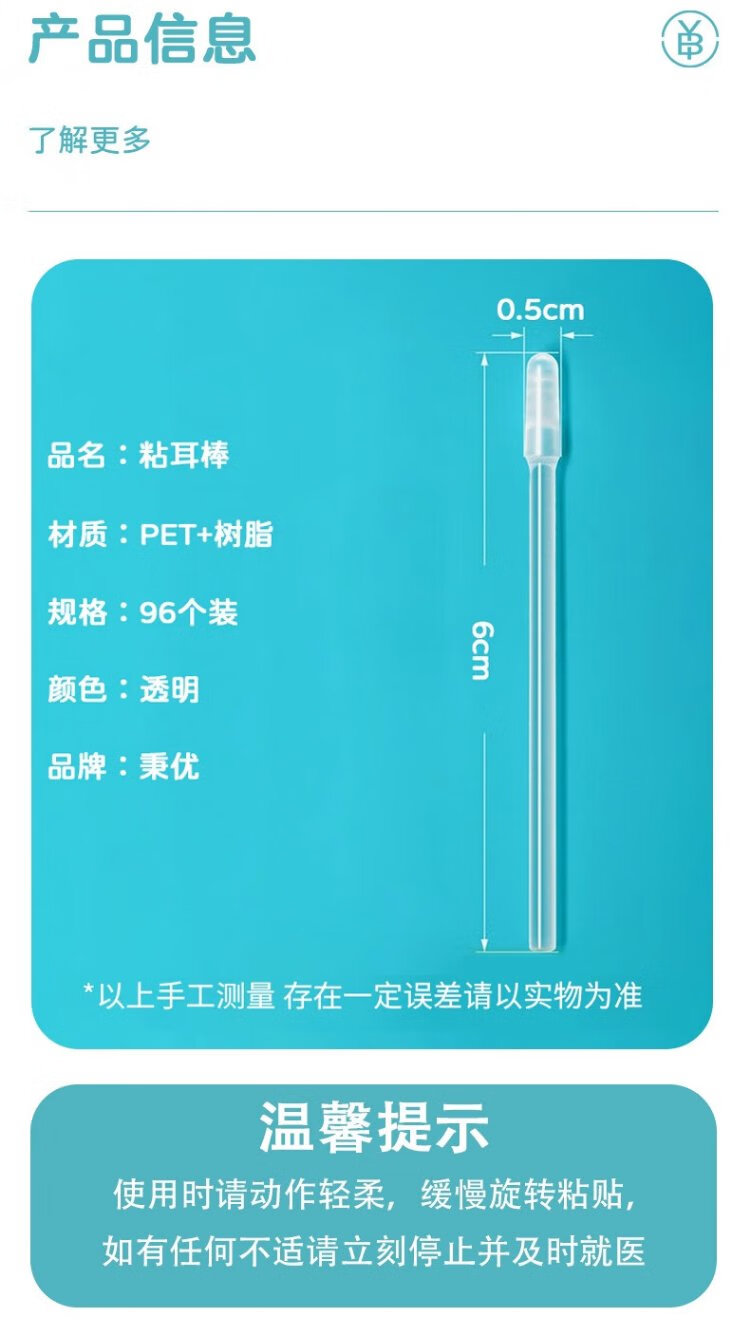 Bingyou sticky ear sticks 96 pieces, ear-picking tool, ear-picking spoon, children's sticky ear sticks do not hurt the ears, one-time ear-picking
