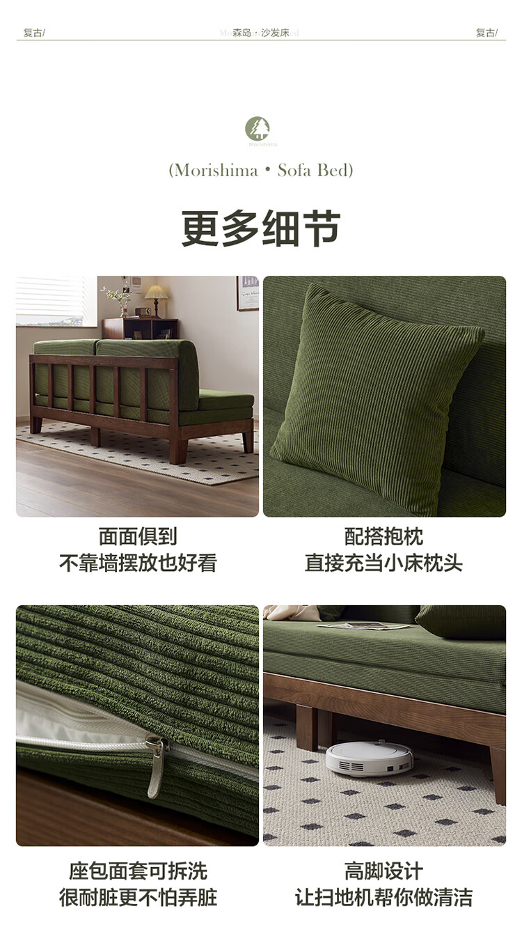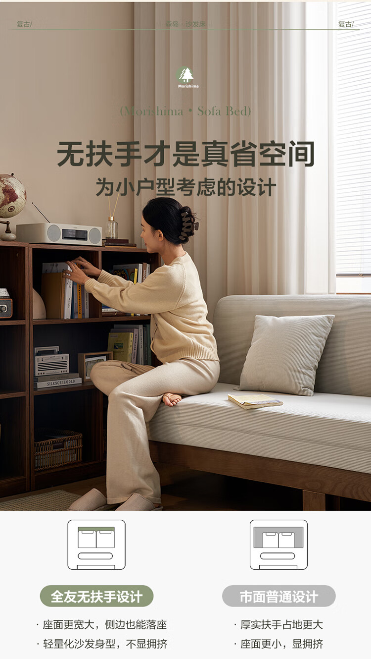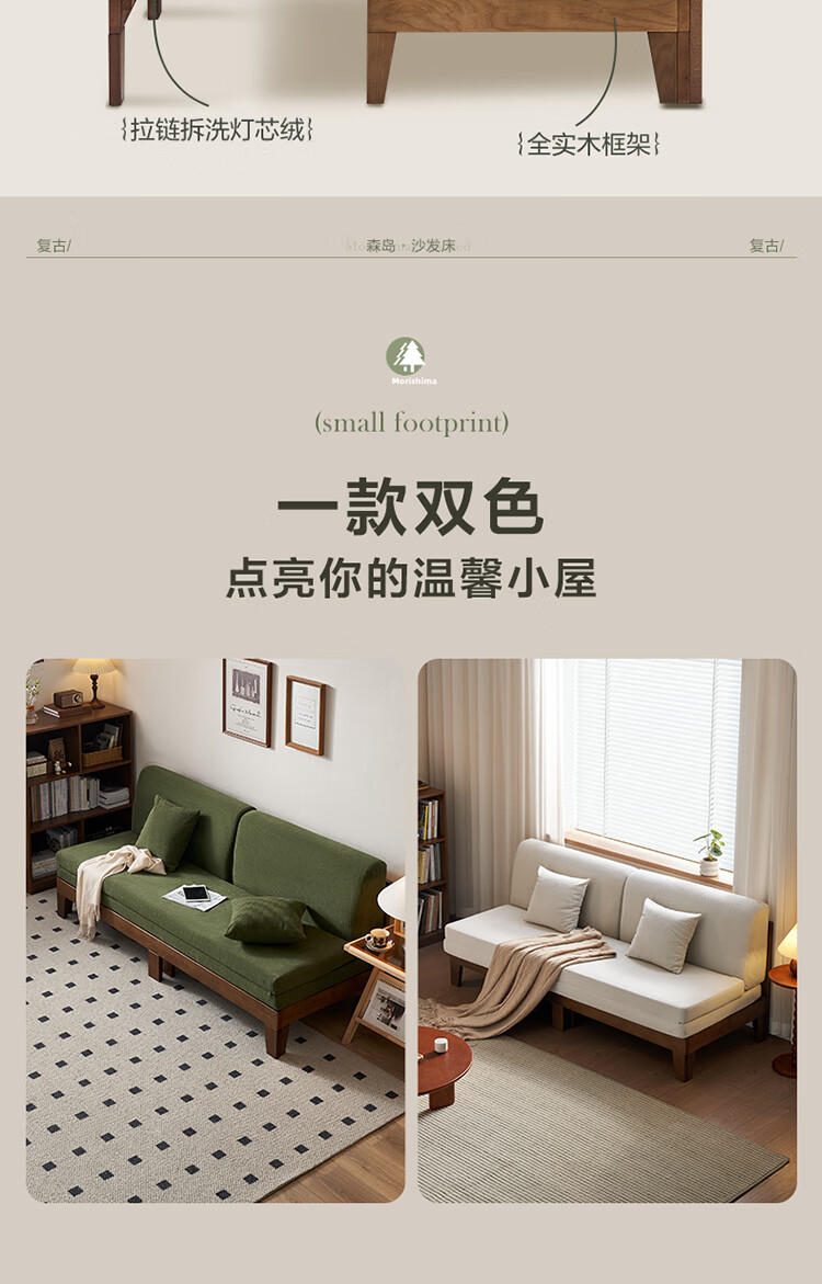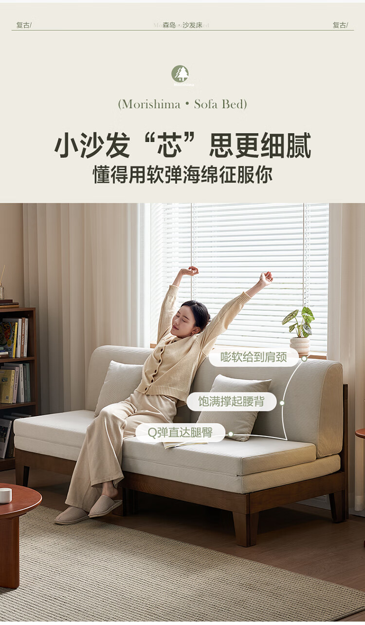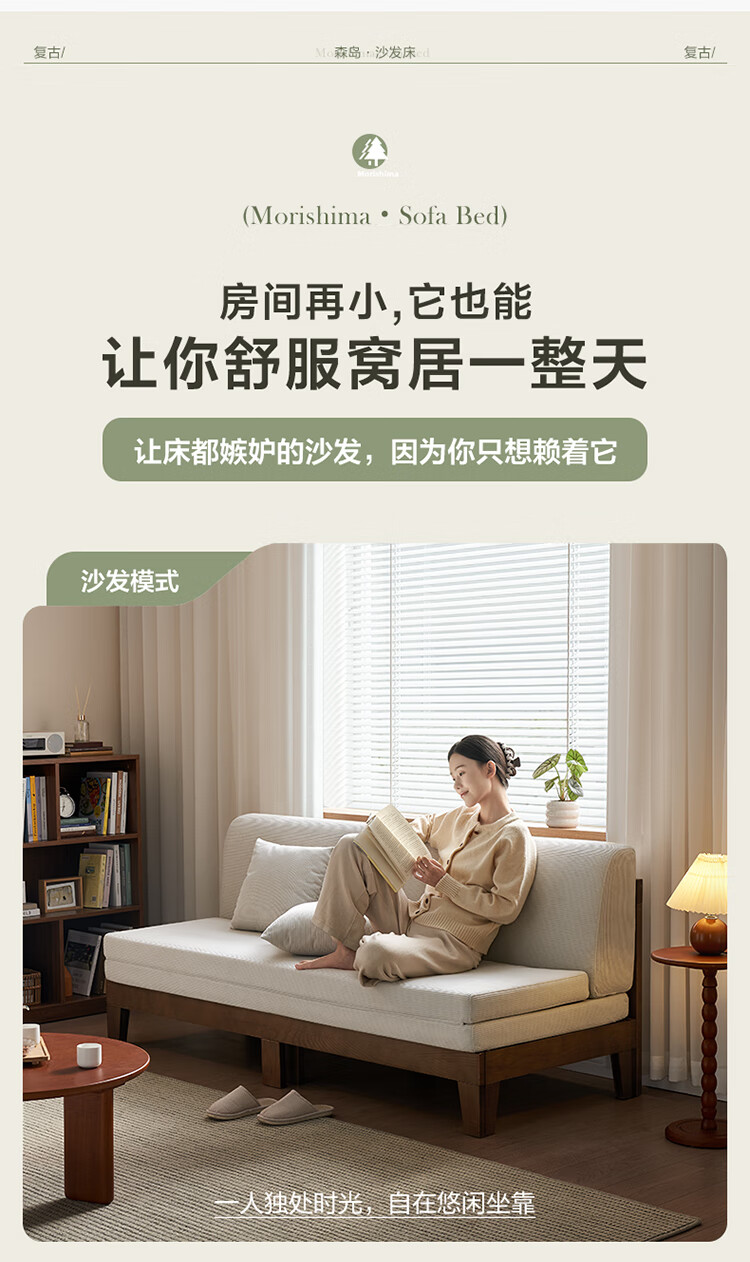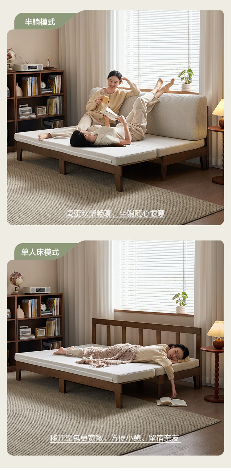 Quanyou Home Cream Style Solid Wood Frame Double Sofa Small Apartment Bedroom Living Room Two-in-One Folding Sofa Bed