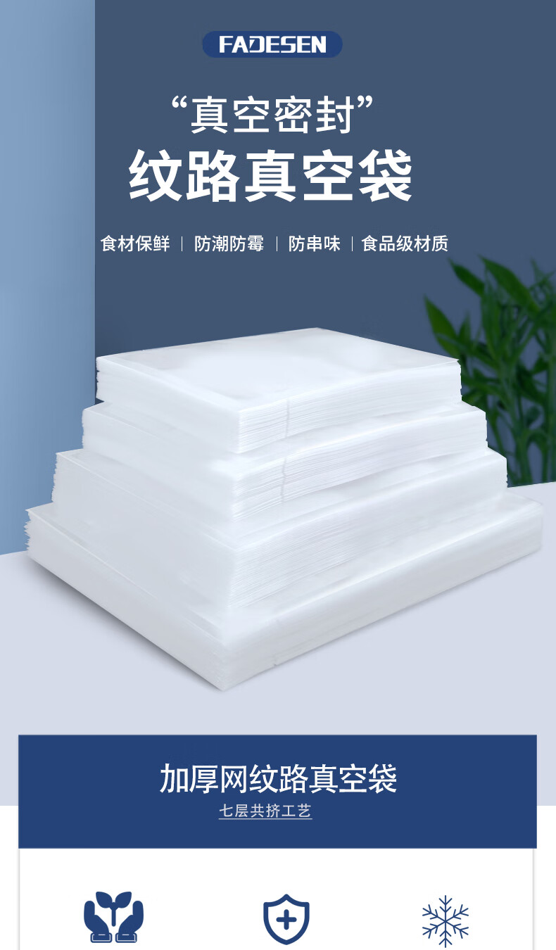 FADESEN vacuum sealing machine fresh-keeping packaging household and commercial fully automatic dry and wet dual-use pressure-free vacuum fresh-keeping seal 25*30CM 100 pieces