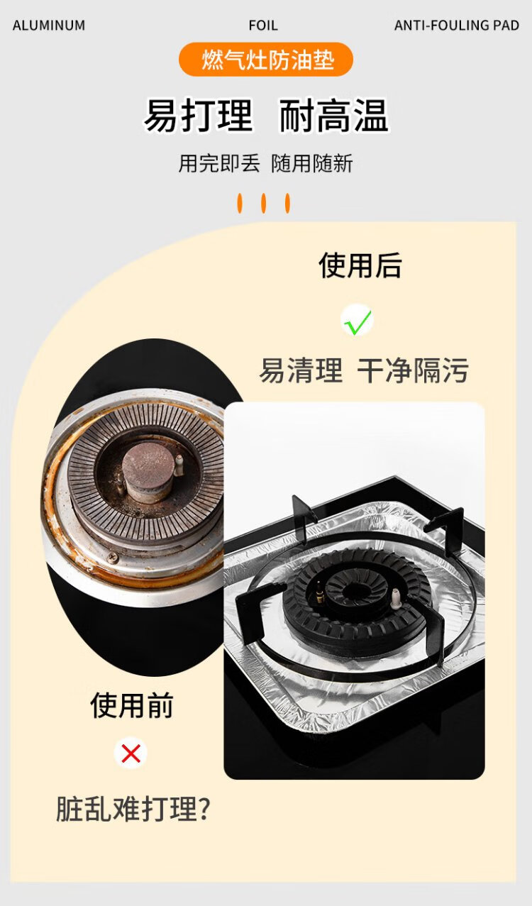 Faxilong gas stove oil-proof mat high temperature resistant tin foil aluminum foil sticker easy to clean square 30 stove gaskets