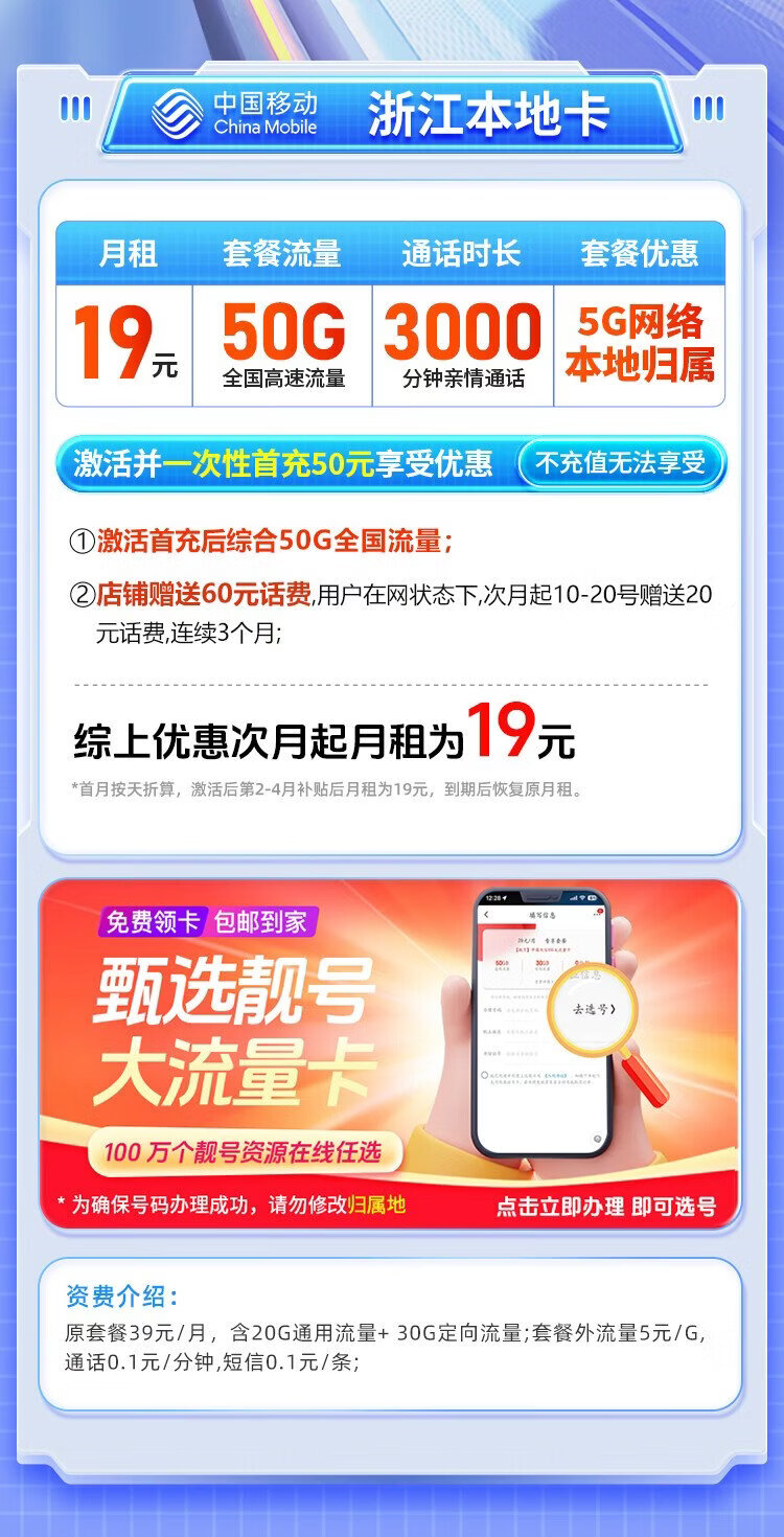 China Mobile data card 19 yuan, choose a good number, national universal mobile phone card, phone card 5G long-term low monthly rent, pure Internet access, unlimited permanent