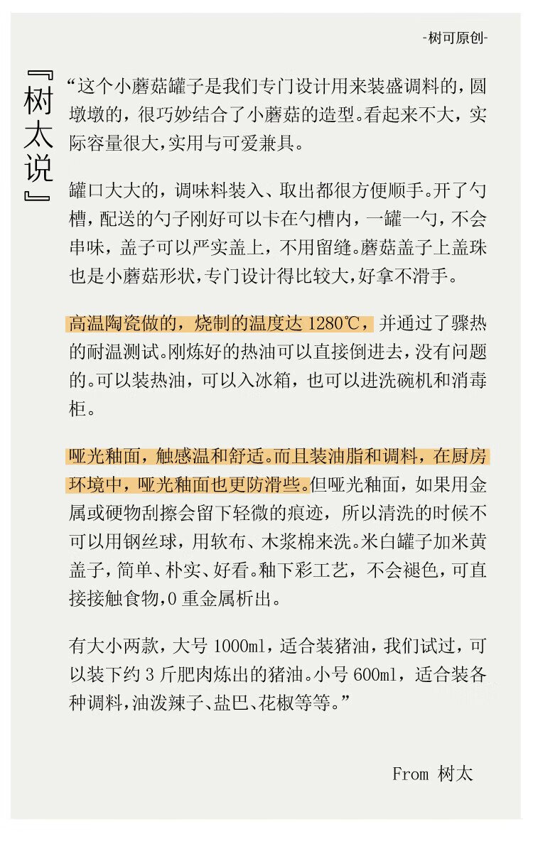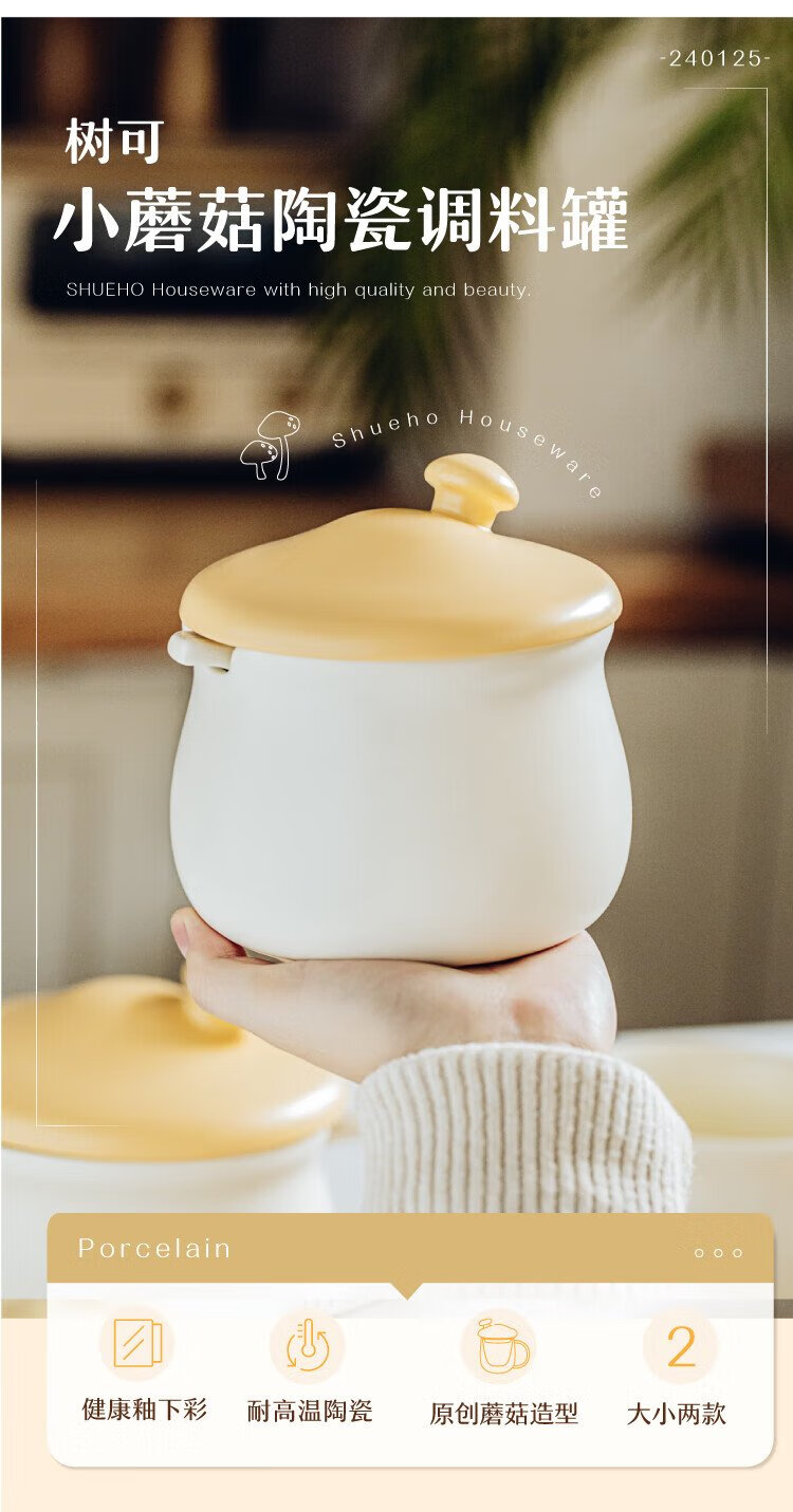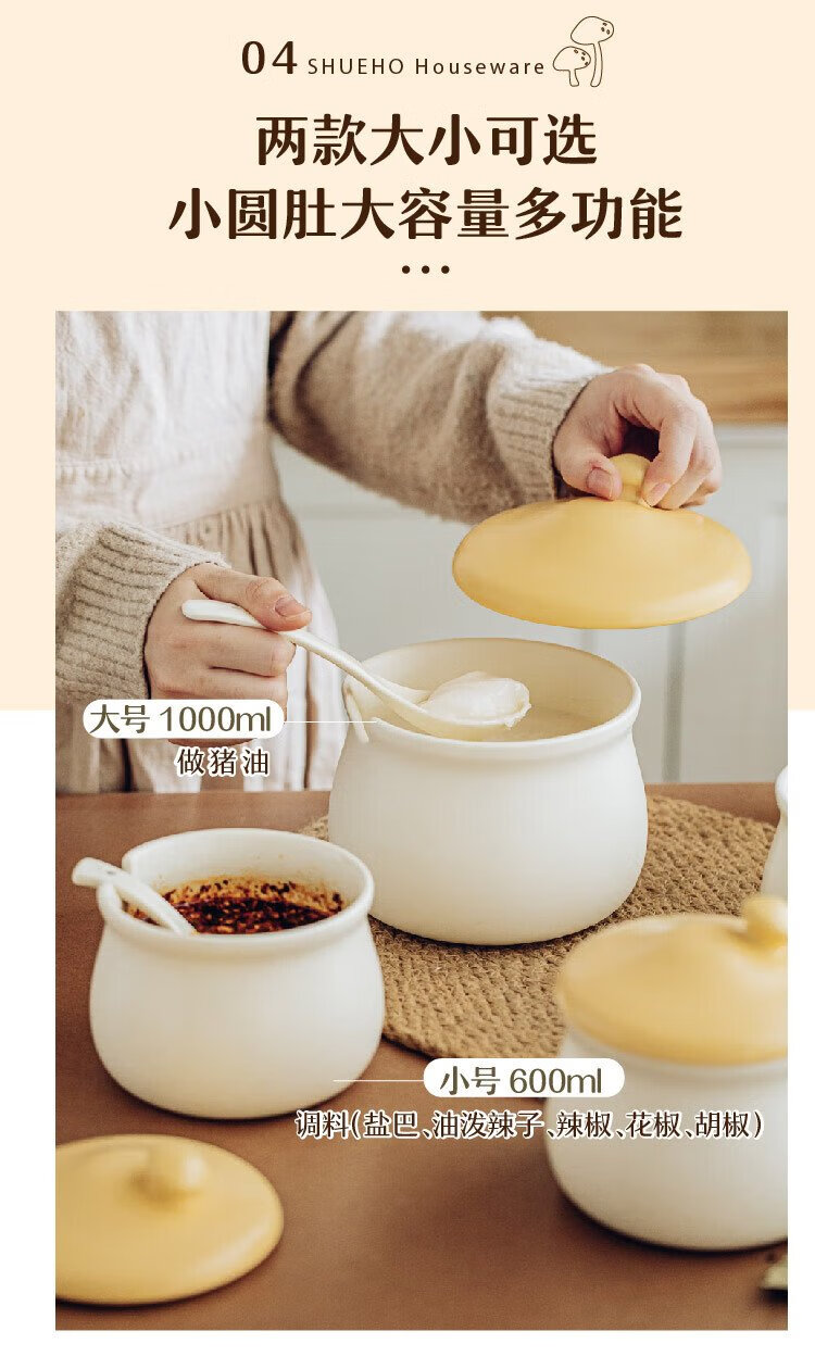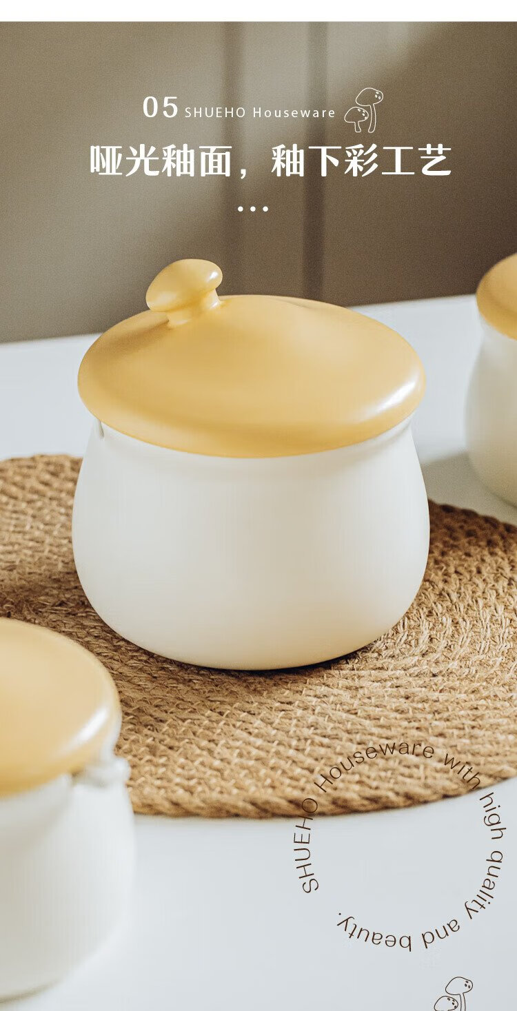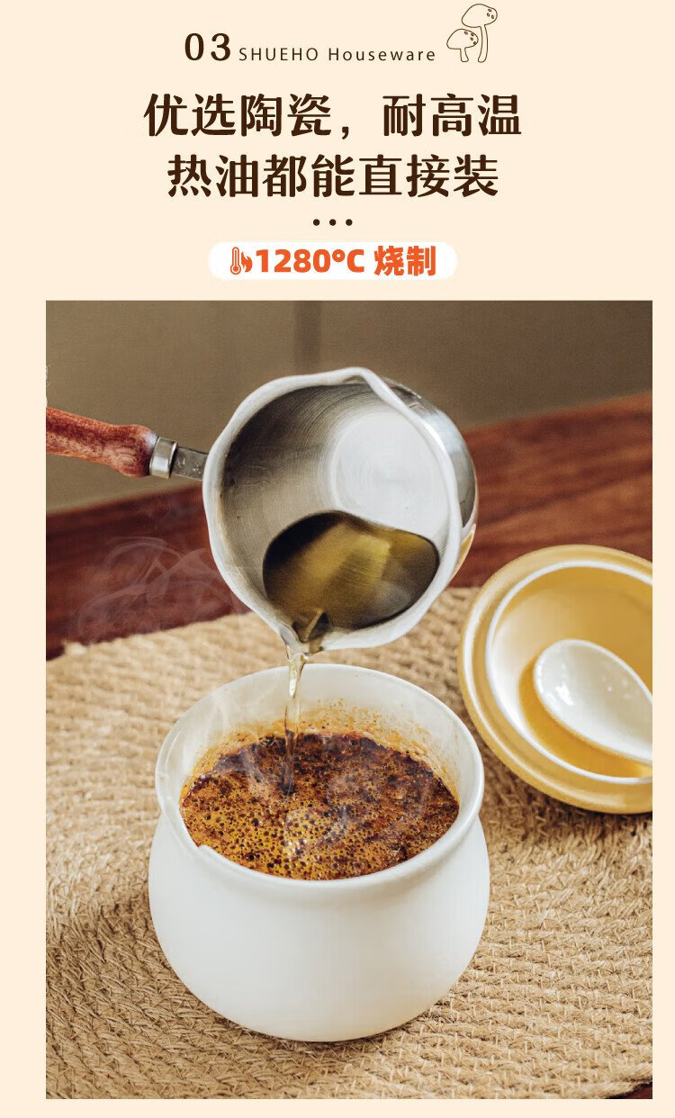 Shuke small mushroom lard jar high temperature resistant ceramic oil spicy chili oil jar seasoning special food grade