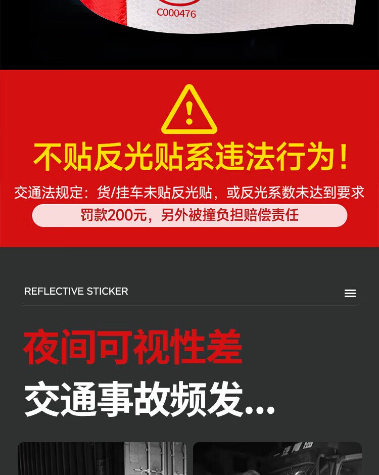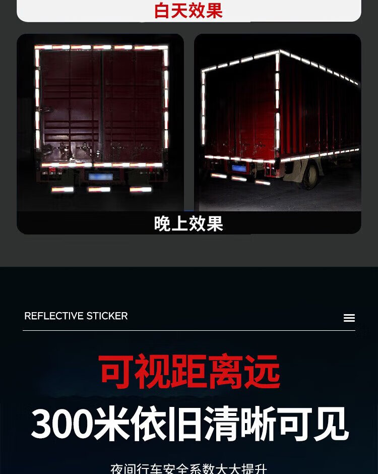 Jizhong Liangli car reflective stickers, truck reflective strips, vehicles, strong reflective warning stickers at night, truck trailers, annual inspections, fluorescent stickers, body reflective strips, 30 meters, 100 sheets