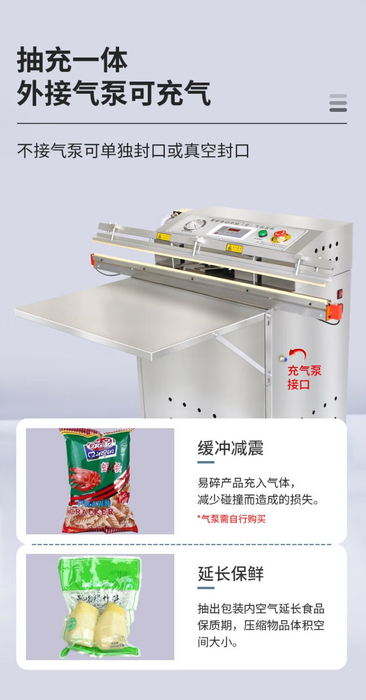 迪图外抽式真空机包装机封口机商用抽毛绒玩具电子元器件全自动抽气机600B型不锈钢大泵+双气嘴可定制