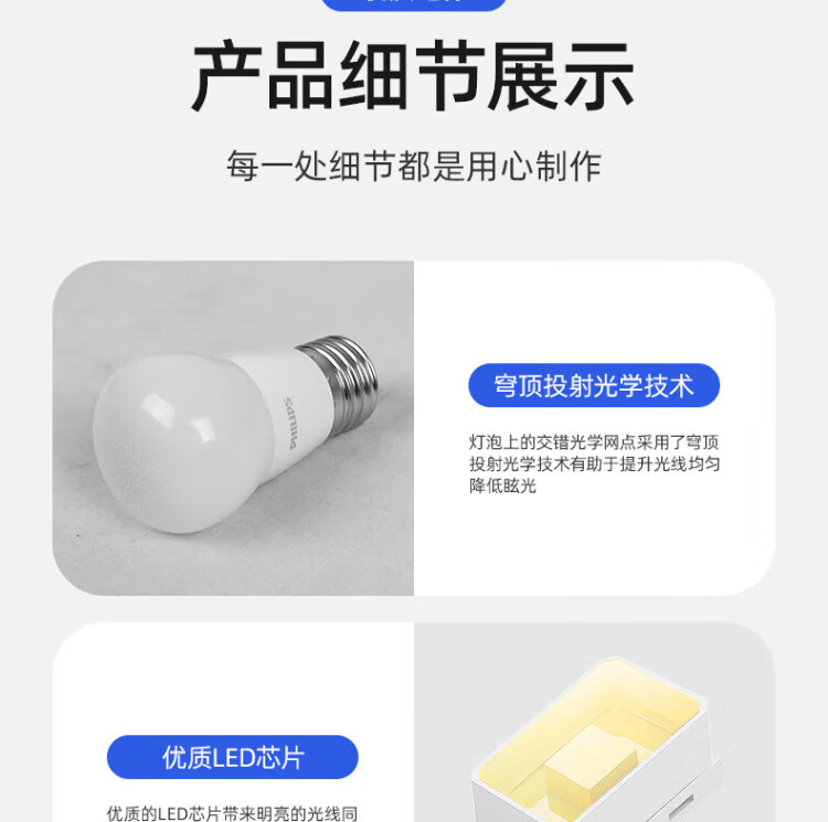 Philips (PHILIPS) constant-brightness LED bulb, high-brightness energy-saving bulb lighting source E14 small screw mouth 6.5W yellow light 3000K true color version