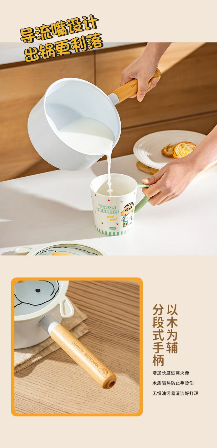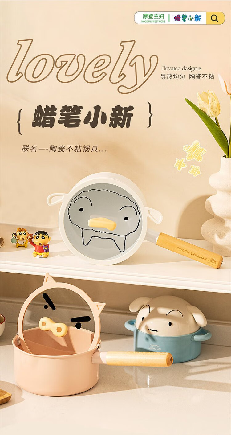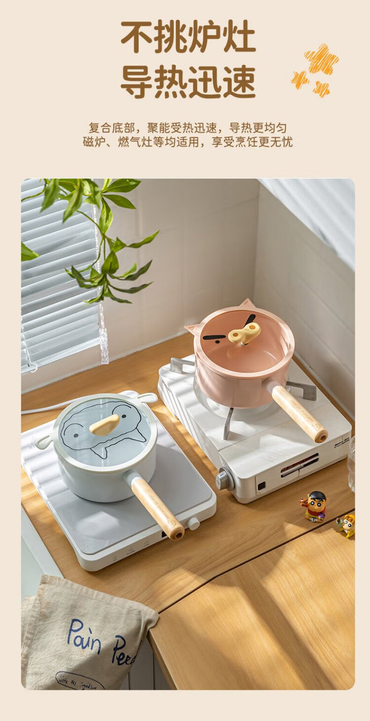 Modern housewife Crayon Shin-chan co-branded milk pot non-stick pot baby special baby food pot cooking instant noodles pot soup pot frying pan Xiaobai