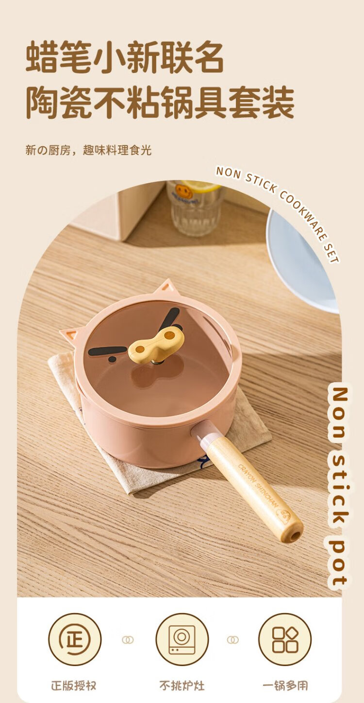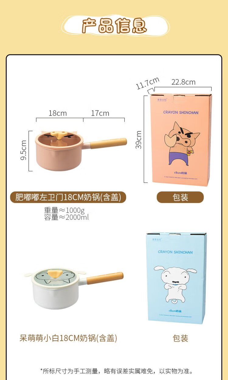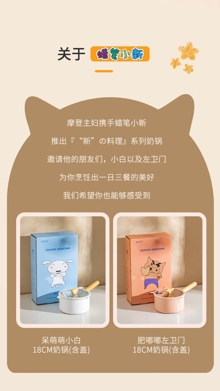 Modern housewife Crayon Shin-chan co-branded milk pot non-stick pot baby special baby food pot cooking instant noodles pot soup pot frying pan Xiaobai
