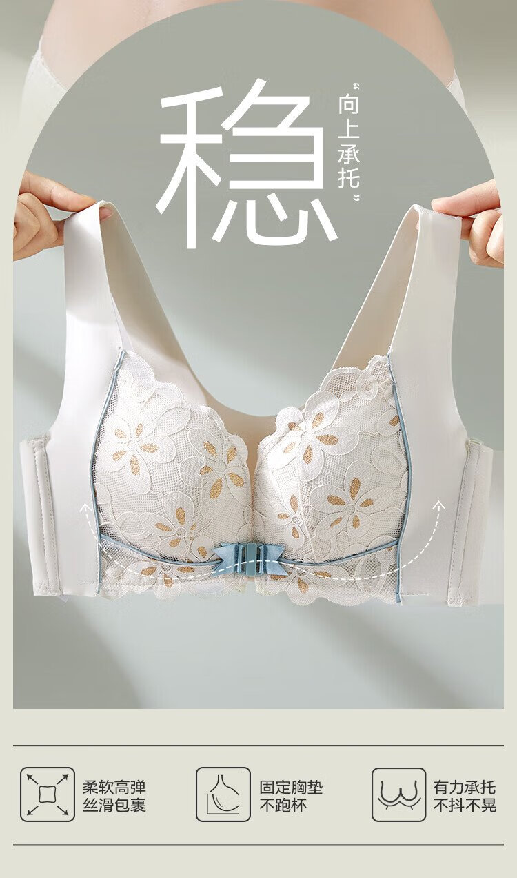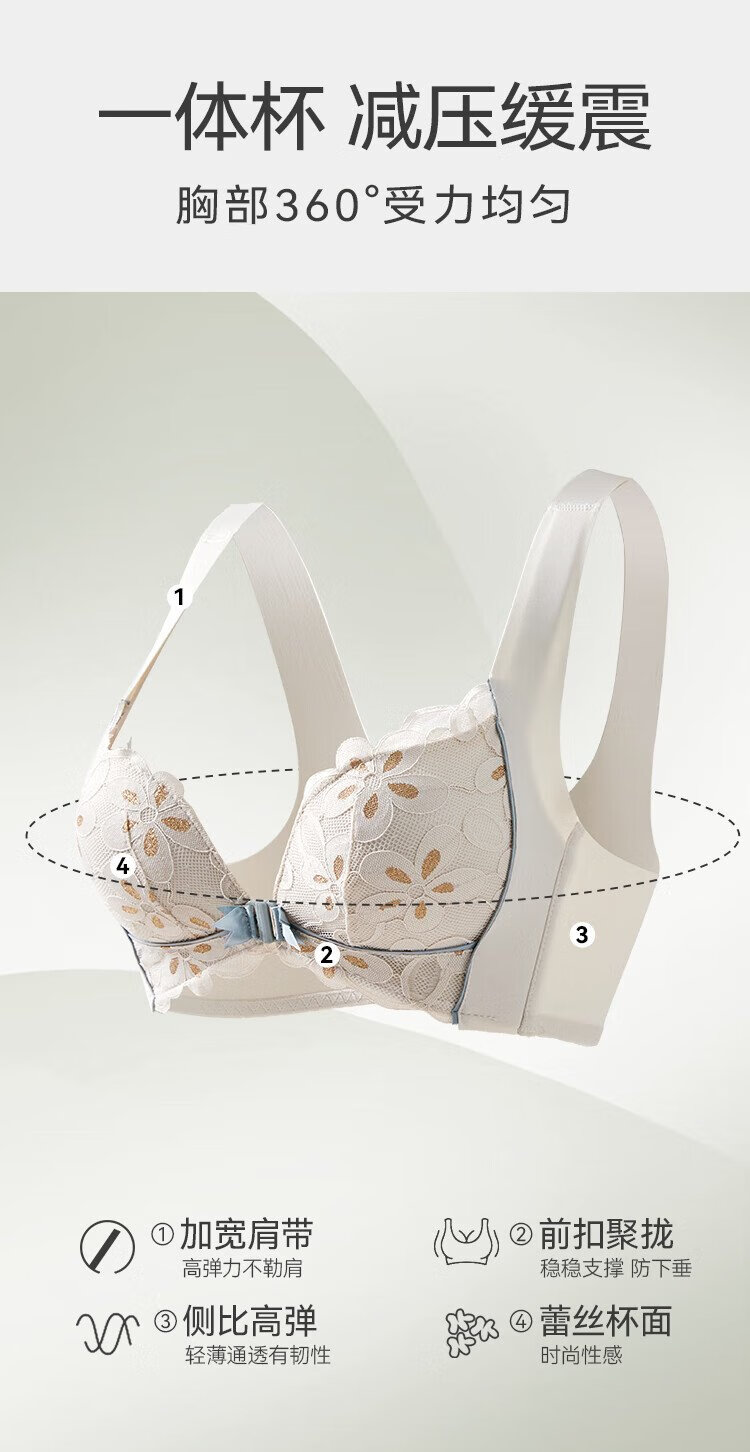 Catman underwear women's front button small breast push-up to show enlargement and secondary breast anti-sagging lace wire-free bra 1 piece