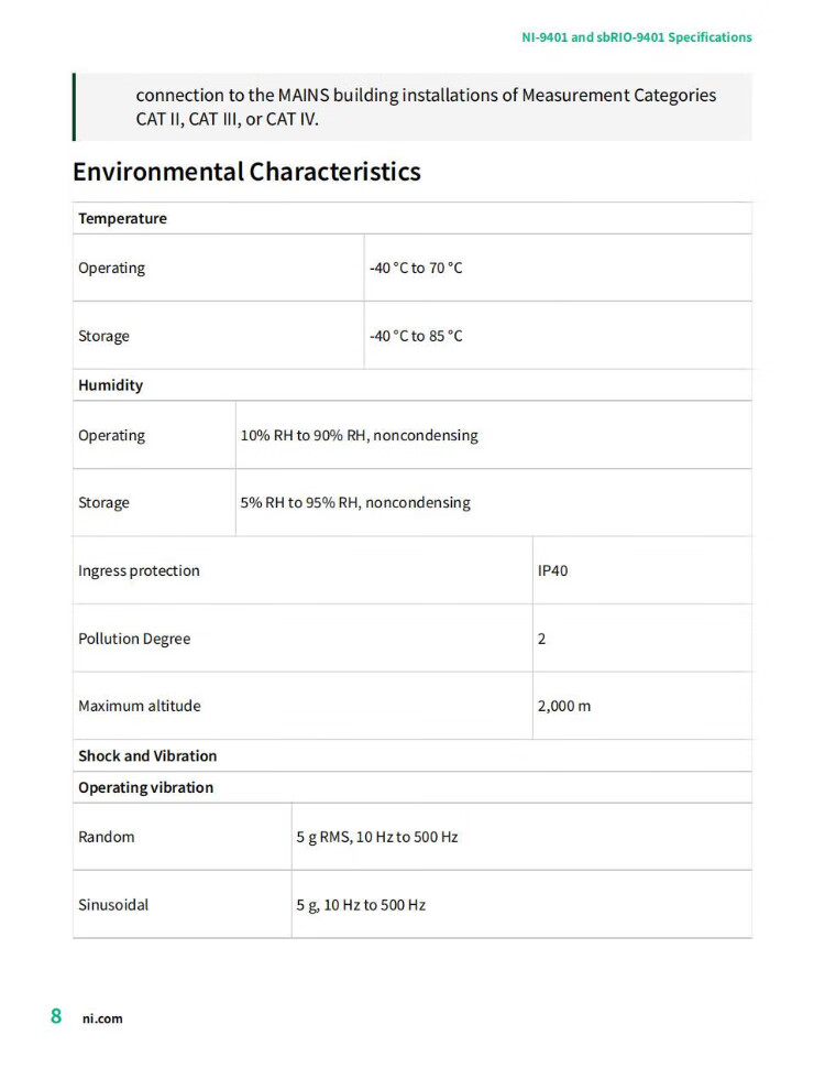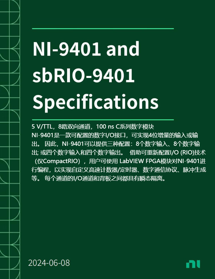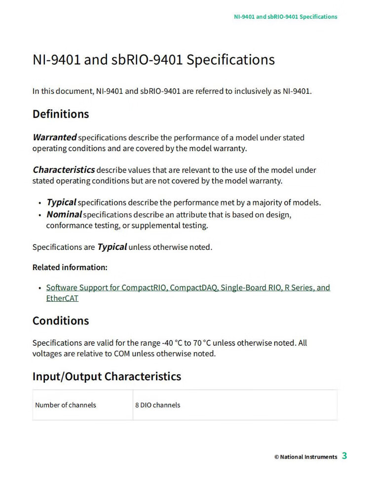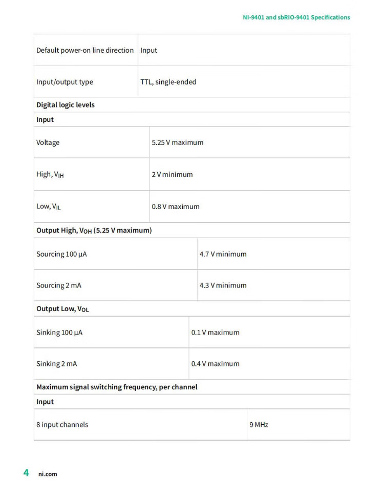 NI 9401 8-Channel 100 NS TTL Digital Input/Output Module Conformally Coated (782401-01) Units