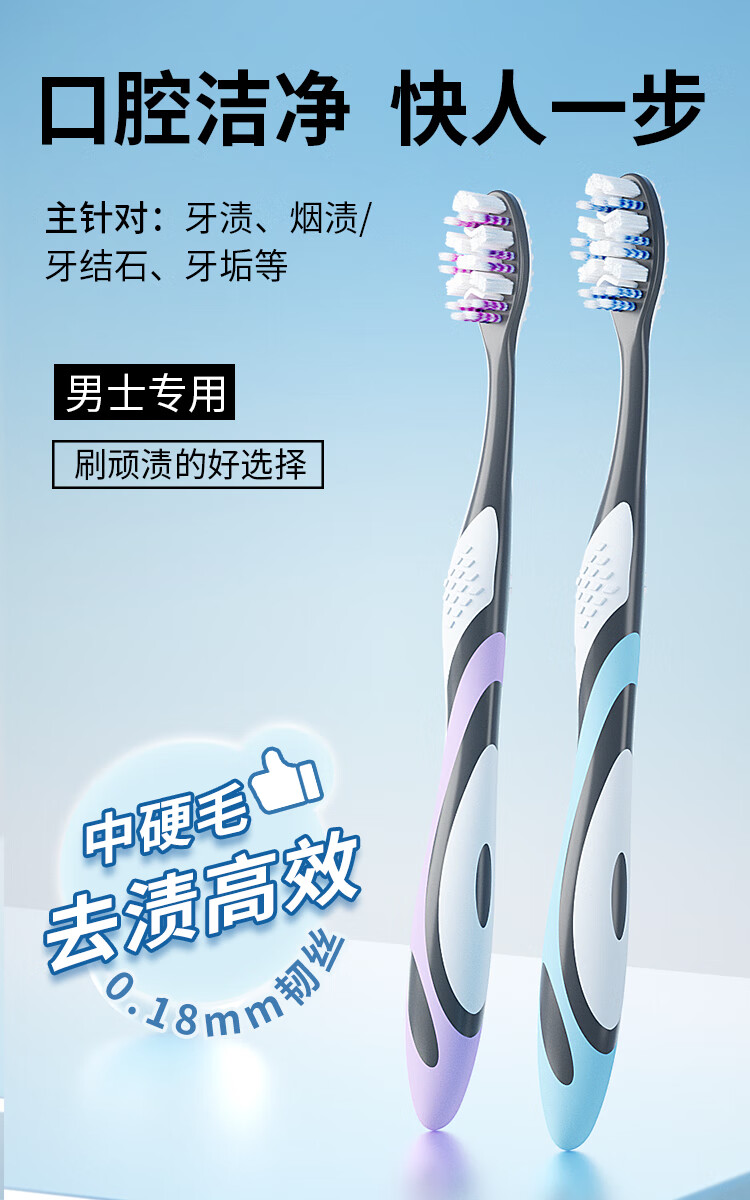 Kejie Men's special adult toothbrush special-shaped hair transplantation back tongue brush powerful stain removal more refreshing 4 random colors