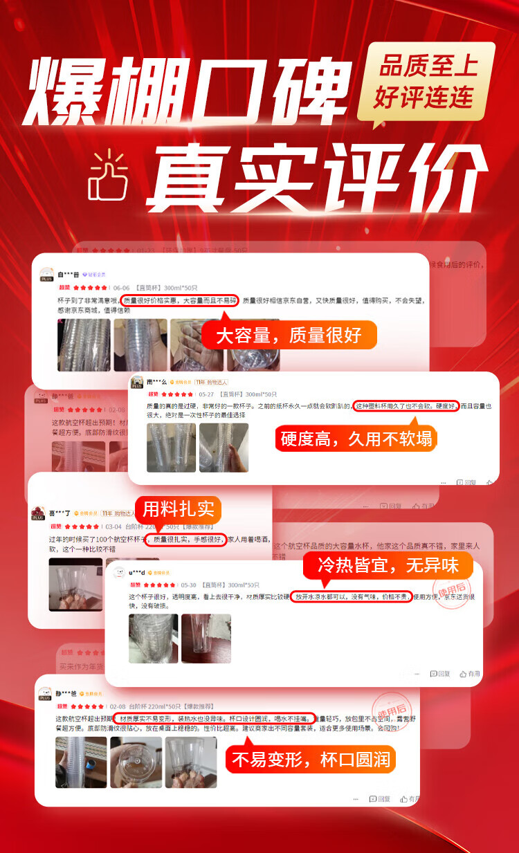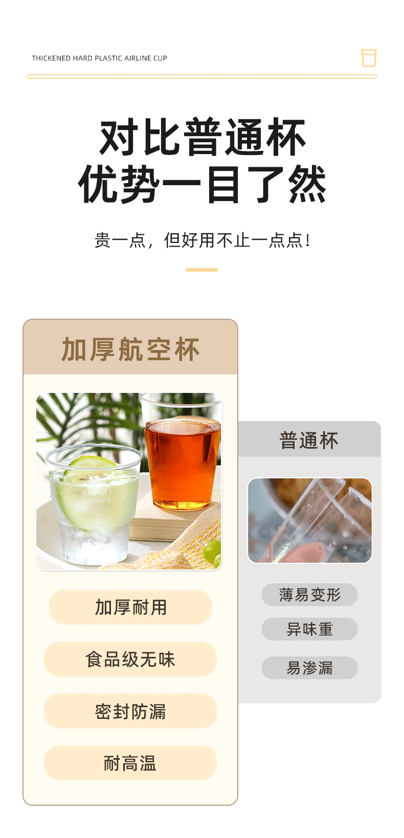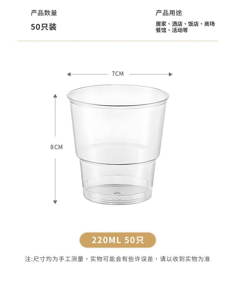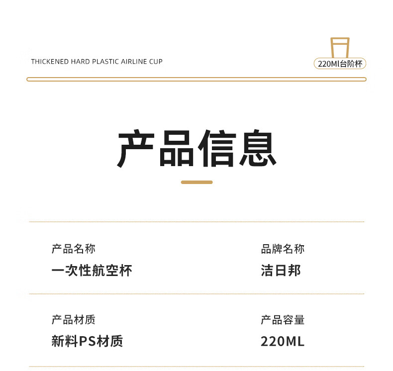 Jieribang disposable cups aviation cups 220ml*50 food grade thickened and hardened plastic cups for office and commercial picnics