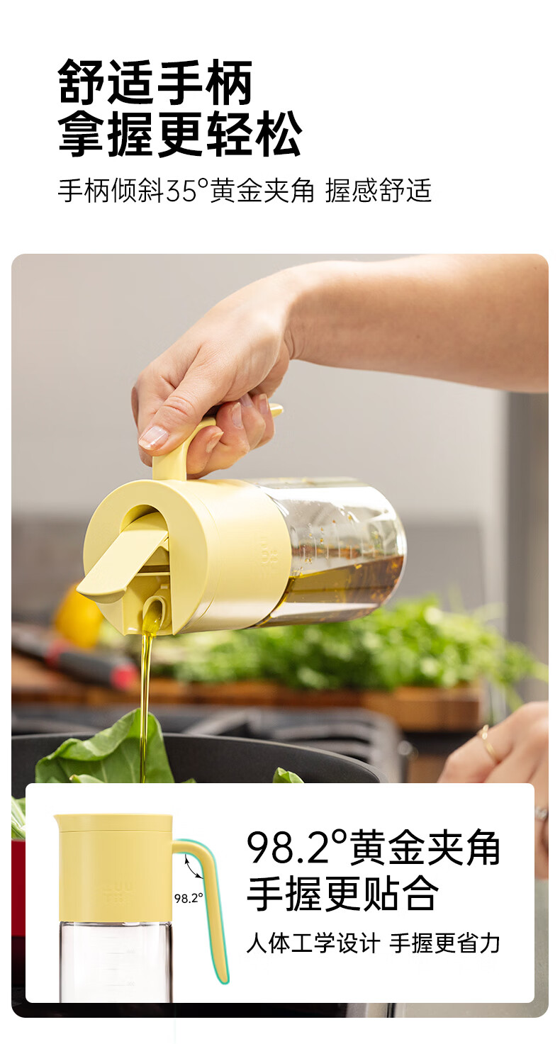 Zuutii seamless gravity oil pot oil and vinegar sauce bottle kitchen household automatic opening and closing glass jar seasoning leak-proof cheese yellow
