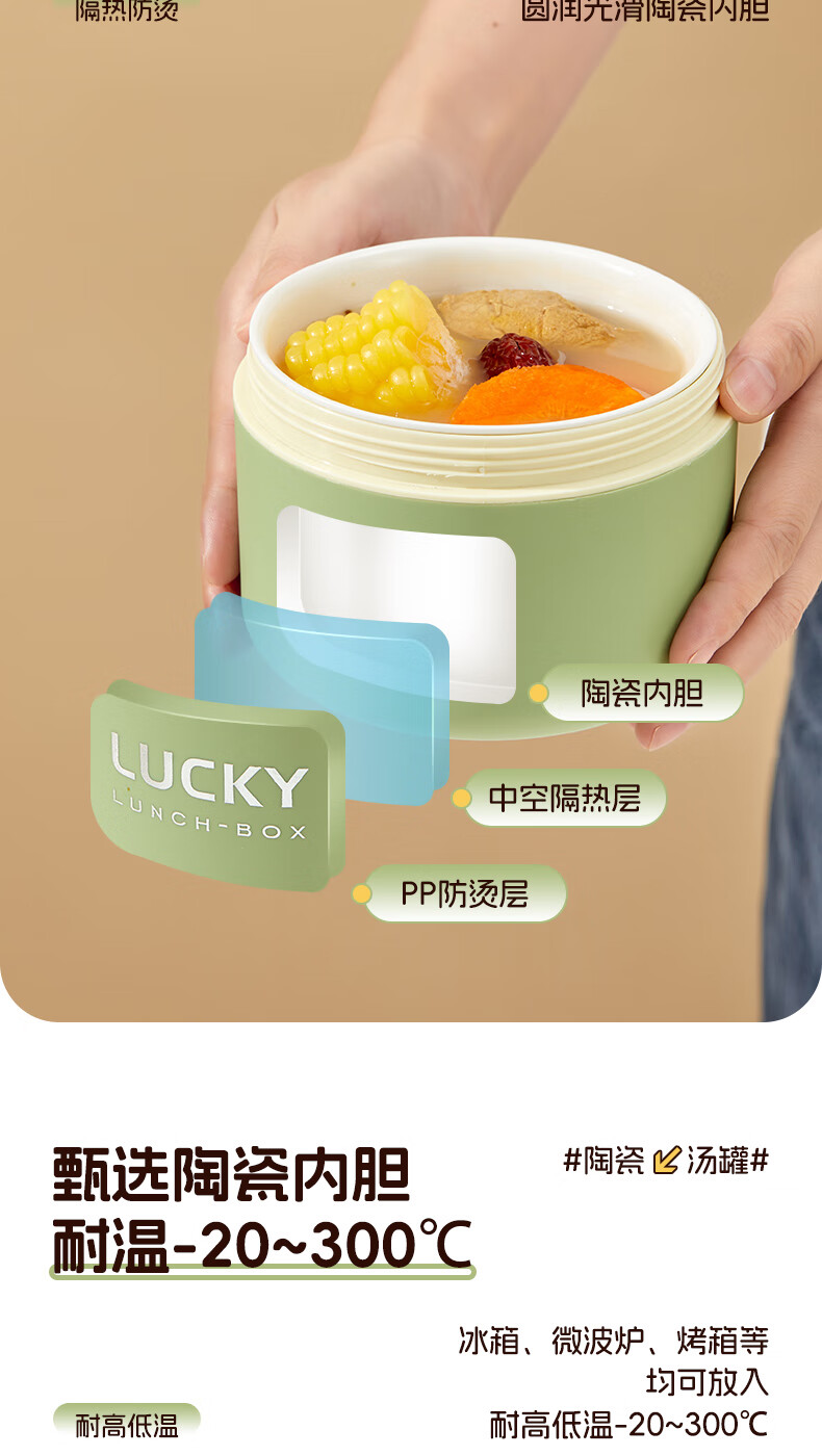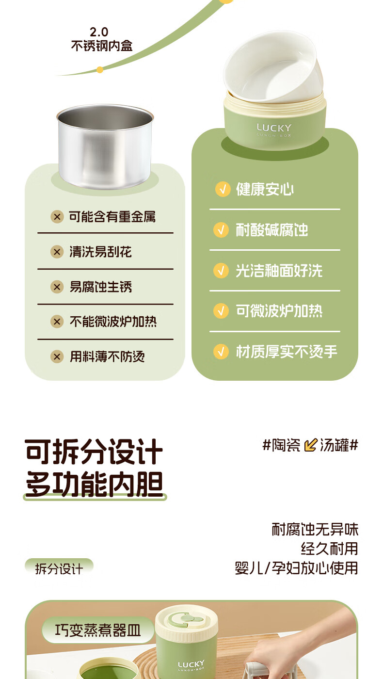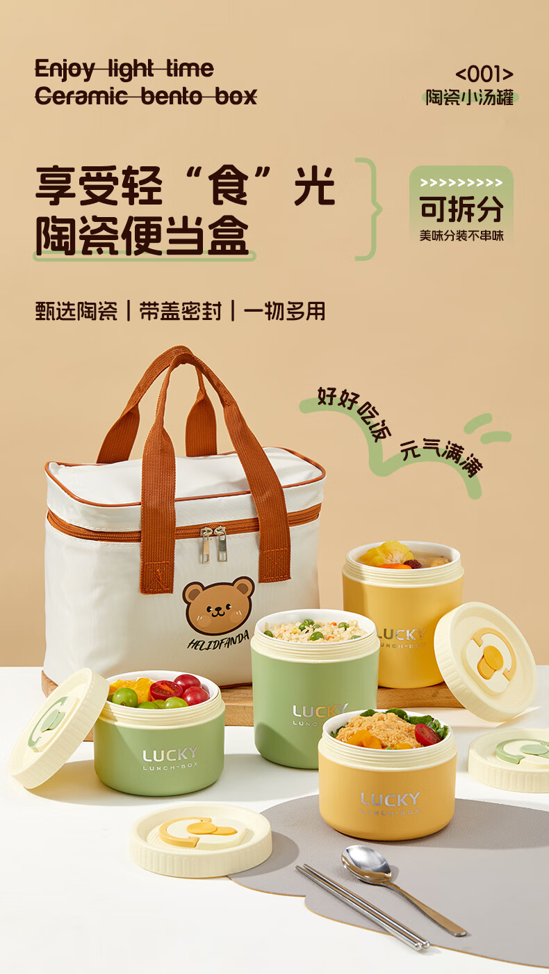 WORTHBUY insulated lunch box for office workers, microwave heating, ceramic liner compartment lunch box, student lunch box set