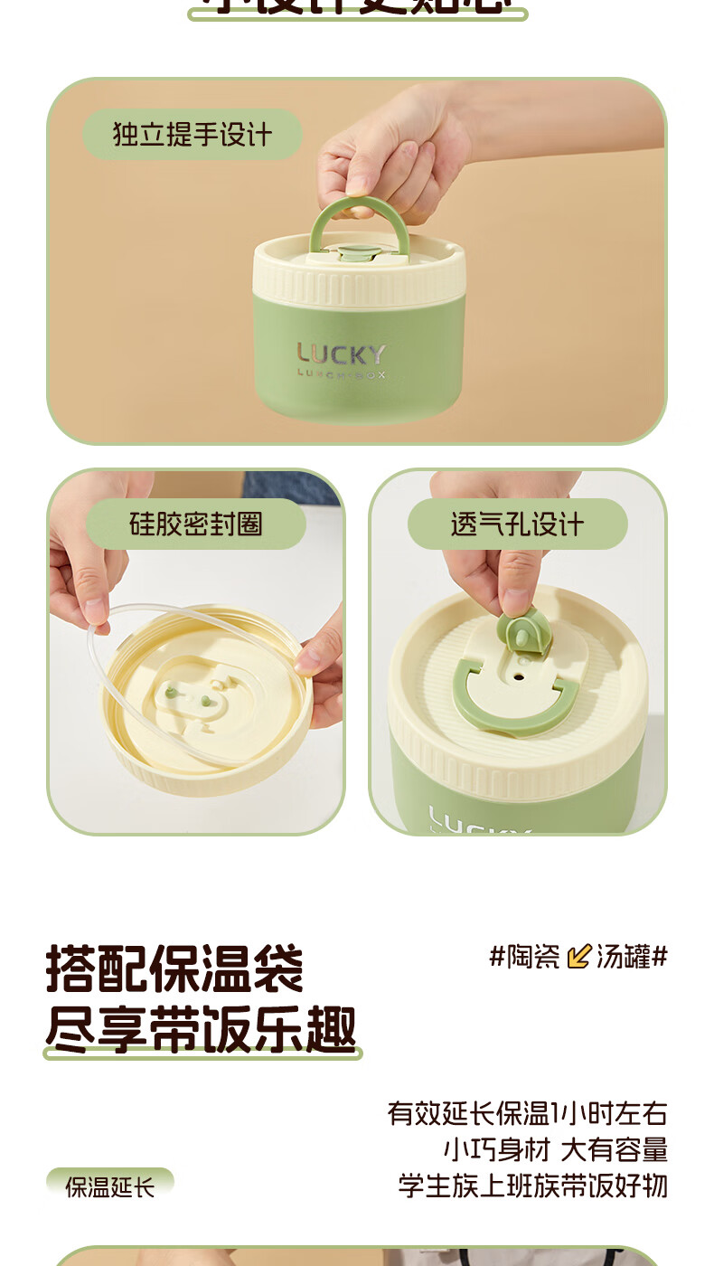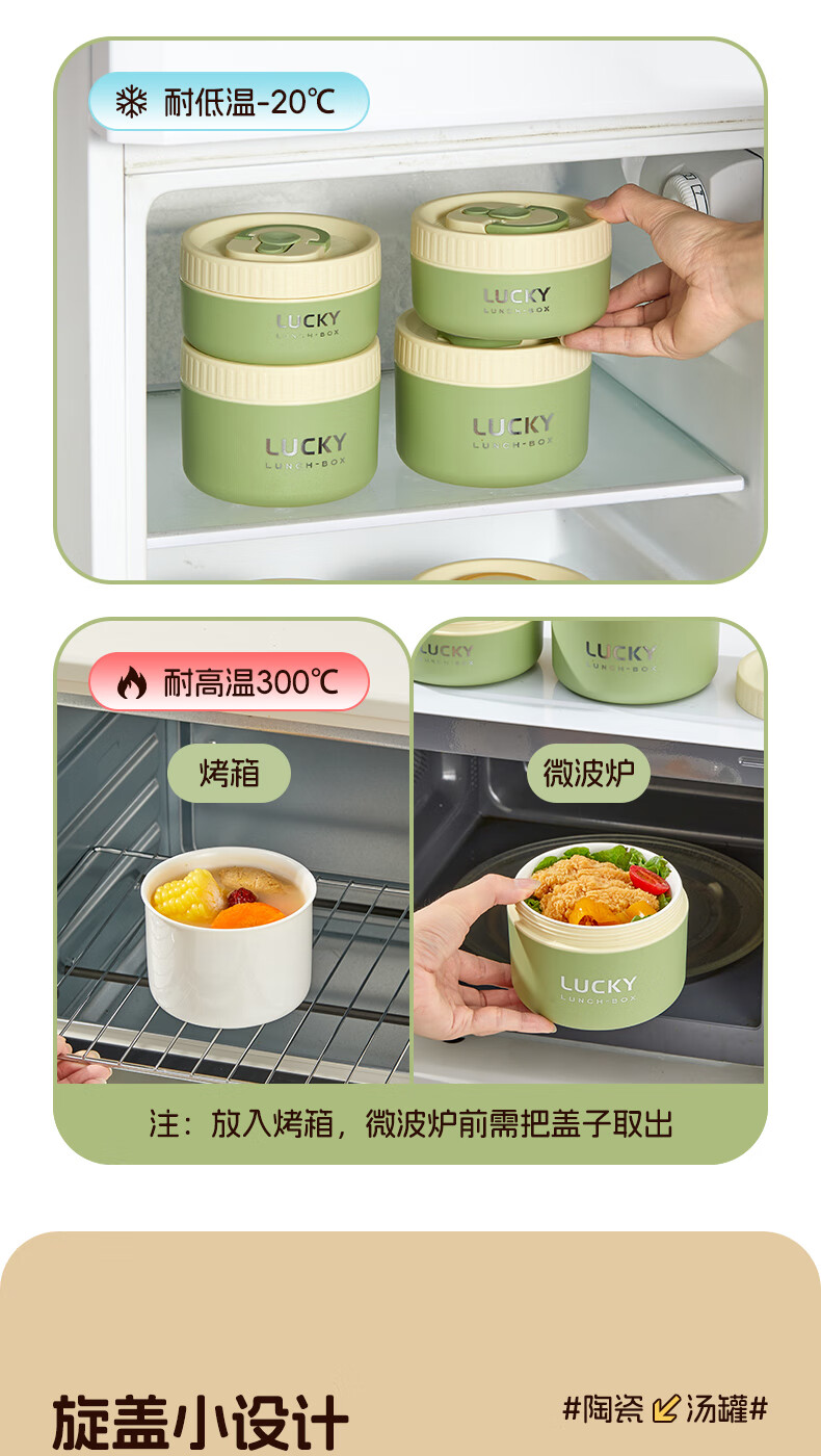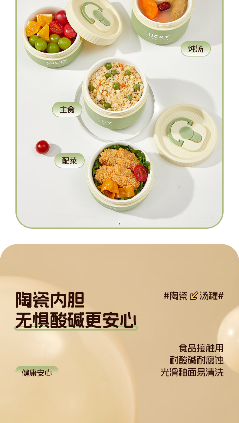 WORTHBUY insulated lunch box for office workers, microwave heating, ceramic liner compartment lunch box, student lunch box set